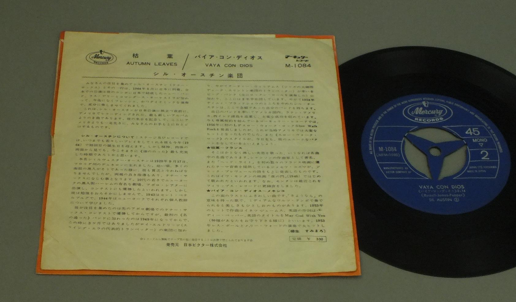 SIL AUSTINシル・オースチン/AUTUMN LEAVES枯葉 M1084 製造国:日本盤 / Media:7inch外観:VG+盤の状態:EX- 価格(税込):¥330(売約済) 送料 7inch:定形外郵便 360円~LP:定形外郵便 660円~送料は、注文の最終画面で確認頂けます。 > > SIL AUSTIN/AUTUMN LEAVES 外観 (VG+)特記事項:ヨレやシミ。折れ跡有り。外観VG+の共通説明:ダメージやや有り。シミ、ヨゴレ、スレなど多少~やや多め。 盤の状態 (EX-)特記事項:薄いスリキズ・細かい表面スレ軽くある感じ。全体的には殆どが軽微なものの様子です。盤EX-の共通説明:盤面のスリキズが多少有り。音に出そうなものは殆ど無いように見える~さほど気にならないぐらいの軽いプチ数カ所程度。 Tweet それぞれの画像をクリックすると、大きい写真が見られます こちらの商品もお勧めです 1,650円 THE HERB GELLER SEXTETTEザ・ハーブ・ゲラー・セクステット / SAME TITLE 1,320円 SUNSET ALL STARSサンセット・オール・スターズ / JAMMIN` AT SUNSET VOL.2ジャミン・アット・サンセット 第2集 770円 COZY COLE - RED NORVO etcコジー・コール - レッド・ノーヴォ他 / ALL STAR SESSIONSオール・スター・セッション 1,210円 MODERN JAZZ QUARTET + NEW YORK CHAMBER SYMPHONYMJQ + ニューヨーク・チェンバー・シンフォニー / THREE WINDOWSスリー・ウインドウズ 1,320円 CHARLIE MINGUSチャーリー・ミンガス / PITHECANTHROPUS ERECTUS直立猿人 1,210円 JAMES MOODYジェームス・ムーディ / EMARCY JAMES MOODY - THE COMPLETE MOODY STORYコンプリート・ジェームス・ムーディ・オン・エマーシー 770円 RALPH SIMONラルフ・サイモン / TIME BEINGタイム・ビーイング 990円 MILT JACKSON/RAY BROWN JAMミルト・ジャクソン&レイ・ブラウン / MONTREUX`77ミルト・ジャクソン&レイ・ブラウン・ジャム・アット・モントゥルー`77