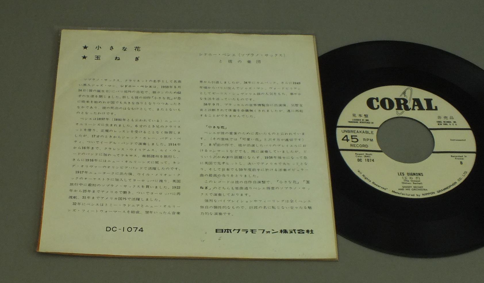 SIDNEY BECHETシドニー・ベシエ/PETITE FLEUR小さな花 DC1074 製造国:日本盤 / Media:7inch外観:VG+盤の状態:EX 価格(税込):¥550(売約済) 送料 7inch:定形外郵便 360円~LP:定形外郵便 660円~送料は、注文の最終画面で確認頂けます。 > > SIDNEY BECHET/PETITE FLEUR 外観 (VG+)特記事項:ヨレやシミ。わずかに破れ有り。外観VG+の共通説明:ダメージやや有り。シミ、ヨゴレ、スレなど多少~やや多め。 盤の状態 (EX)特記事項:薄いスリキズ・スレ軽くある感じ。軽微なものの様子です。盤EXの共通説明:盤面のスリキズが薄いものが少し~軽度 音に出そうなものは無いように見える(軽微なソフトティック音は除く)。 その他:見本盤 Tweet それぞれの画像をクリックすると、大きい写真が見られます こちらの商品もお勧めです 440円 SADAO WATANABE渡辺貞夫 / CALIFORNIA SHOWERカリフォルニア・シャワー 660円 EDDIE CONDONエディ・コンドン / CONDON A LA CARTEコンドン・ア・ラ・カルト 770円 MODERN JAZZ QUARTETMJQ / LAST CONCERTラスト・コンサート 990円 JAMES NEWTONジェームズ・ニュートン / DAYDREAMデイドリーム 880円 MASAMI NAKAGAWA中川昌三 / PRELUDE FOR AUTUMNプレリュード・フォー・オータム 1,210円 DEREK SMITHディレク・スミス / BLUESETTEブルースェット 770円 NORIO MAEDA前田憲男 / FEELINGSフィーリング 1,210円 BUCK CLAYTONバック・クレイトン / PASSORT TO PARADISEスポート・トゥ・パラダイス