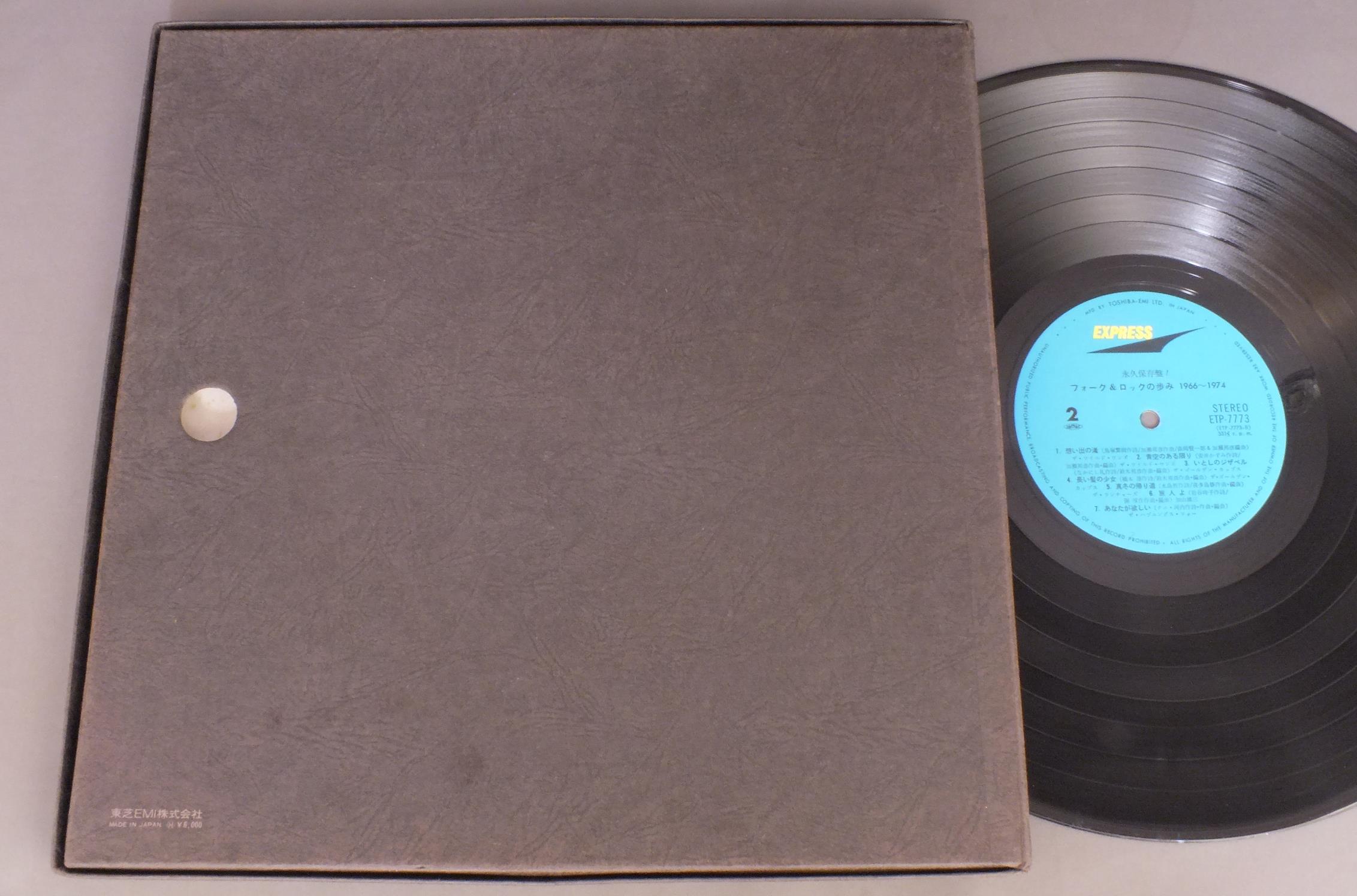 VARIOUS JAPANESE FOLK & ROCK ARTISTS/HISTORY OF JAPANESE FOLK & ROCK 1966-74永久保存盤! フォーク&ロックの歩み 1966-1974 ETP7773-6 製造国:日本盤 / Media:LP外観:EX-盤の状態:EX- 価格(税込):¥2,200(売約済) 送料 7inch:定形外郵便 360円~LP:定形外郵便 660円~送料は、注文の最終画面で確認頂けます。 > > VARIOUS JAPANESE FOLK & ROCK ARTISTS/HISTORY OF JAPANESE FOLK & ROCK 1966-74 外観 (EX-)特記事項:箱内側にシミ外観EX-の共通説明:ダメージ軽度~多少。 中古品としては普通の状態。シミ、ヨゴレ、スレなど軽く~多少。 盤の状態 (EX-)特記事項:薄いスリキズ・細かい表面スレ軽くある感じです。プチ出そうな所は少し。軽微なものが中心の様子です。盤EX-の共通説明:盤面のスリキズが多少有り。音に出そうなものは殆ど無いように見える~さほど気にならないぐらいの軽いプチ数カ所程度。 その他:4枚組 Tweet それぞれの画像をクリックすると、大きい写真が見られます こちらの商品もお勧めです 1,210円 KUMIKO YOKOI - CHUO CHOIR etc横井久美子・中央合唱団他 / HIROBAうたごえフォーク ひろば 1,210円 SHIGERU IZUMIYA泉谷しげる / EARLY IZUMIYA WORKS初期の泉谷しげる メモリアル 770円 TAKASHI NISHIOKA西岡たかし / 1969-19781969-1978 西岡たかし 五つの赤い風船 2 1,320円 KIYOSHI HASEGAWA長谷川きよし / TOUMEINA HITOTOKIWO透明なひとときを 660円 KOUSETSU MINAMI南こうせつ / KAERIMICHIかえり道 880円 FURUIDO古井戸 / SKETCH OF ORANGE COLORオレンジ色のすけっち 990円 RANBO MINAMIみなみ らんぼう / KATARITUKUSENAI MAY語り尽くせない五月 440円 KEMEケメ / KEME VOL.5愛そして卒業 ケメ-VOL.5