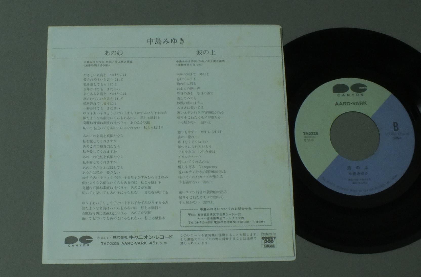 MIYUKI NAKAJIMA中島みゆき/ANOKOあの娘 7A0325 製造国:日本盤 / Media:7inch外観:EX盤の状態:EX+ 価格(税込):¥330 送料 7inch:定形外郵便 360円~LP:定形外郵便 660円~送料は、注文の最終画面で確認頂けます。 > > MIYUKI NAKAJIMA/ANOKO 外観 (EX)特記事項:ヨレやシミ軽く有り。外観EXの共通説明:ダメージが限定的。中古品としては保存状態がよい方。シミ、ヨゴレ、スレ 少し~軽度。 盤の状態 (EX+)特記事項:極薄いスリキズ・スレ少し。一見してきれいな状態です。盤EX+の共通説明:盤面の極薄いスリキズ、スレ少し程度 音に出そうなものは無いように見える(極軽微なソフトティック音は除く)。 Tweet それぞれの画像をクリックすると、大きい写真が見られます こちらの商品もお勧めです 770円 JAP`S GAP`Sジャップス・ギャップス / JAP`S GAP`Sジャップス・ギャップス 770円 MASAMICHI SUGI杉真理 / MISTONE 1,210円 MASA TAKAGI高木麻早 / 1st ALBUM思い出が多すぎて 440円 TESSEI MIYOSHI三好鉄生 / TESSEI三好鉄生 1,210円 SHOUGO HAMADA浜田省吾 / KIMIGA JINSEI NO TOKI君が人生の時 440円 KUWATA BAND桑田バンド / NIPPON NO ROCK BAND 990円 TULIPチューリップ / LIVE ACT TULIP -VOL2-ライヴ !! アクト・チューリップ -VOL2- 770円 KENJI SAWADA沢田研二 / OMOIKKIRI KIZANA JINSEI思いきり気障な人生