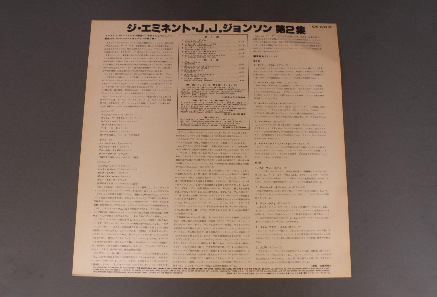 JAY JAY JOHNSONJ.J.ジョンソン/EMINENTJAY JAY JOHNSON VOL2 エミネント・J.J.ジョンソン第2集 GXK8033 製造国:日本盤 / Media:LP外観:EX-盤の状態:EX+ 価格(税込):¥1,320(売約済) 送料 7inch:定形外郵便 360円~LP:定形外郵便 660円~送料は、注文の最終画面で確認頂けます。 > > JAY JAY JOHNSON/EMINENTJAY JAY JOHNSON VOL2 外観 (EX-)特記事項:裏ジャケ側にシミ外観EX-の共通説明:ダメージ軽度~多少。 中古品としては普通の状態。シミ、ヨゴレ、スレなど軽く~多少。 盤の状態 (EX+)特記事項:極薄いスリキズ・スレ少し。一見してきれいな状態です。盤EX+の共通説明:盤面の極薄いスリキズ、スレ少し程度 音に出そうなものは無いように見える(極軽微なソフトティック音は除く)。 Tweet それぞれの画像をクリックすると、大きい写真が見られます こちらの商品もお勧めです 770円 CHICK COREA etcチック・コリア 他 / ECM SPECIALECMスペシャル 770円 SADAO WATANABE渡辺貞夫 / MY DEAR LIFEマイ・ディア・ライフ 770円 ANDREAS VOLLENWEIDERアンドレアス・フォーレンヴァイダー / WHITE WINDSホワイト・ウィンズ 1,320円 GATO BARBIERIガトー・バルビエリ / EL PAMPEROエル・パンペーロ 1,210円 SONNY STITT WITH QUINCY JONES ORCHETRAソニー・スティット・クインシージョーンズ オーケストラ / SAME TITLE 770円 RAY BAYANT TRIOレイ・ブライアント・トリオ / CON ALMAコン・アルマ 1,650円 TOM BROWNEトム・ブラウン / BROWNE SUGARブラウン・シュガー 770円 GEORGE LEWISジョージ・ルイス / ON PARADEオン・パレード