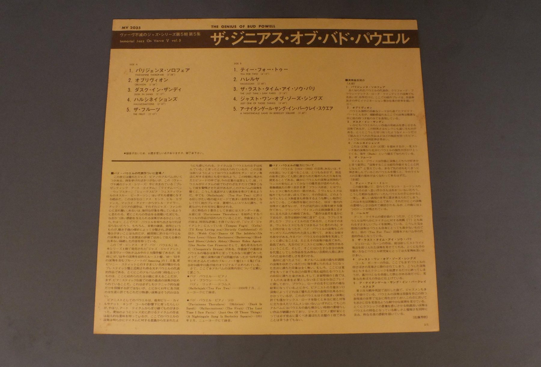 BUD POWELLバド・パウエル/GENIUS OF BUD POWELLジニアス・オブ・バド・パウエル MV2035 製造国:日本盤 / Media:LP外観:EX-盤の状態:EX+帯:EX- 価格(税込):¥1,100(売約済) 送料 7inch:定形外郵便 360円~LP:定形外郵便 660円~送料は、注文の最終画面で確認頂けます。 > > BUD POWELL/GENIUS OF BUD POWELL 外観 (EX-)特記事項:特記なし。外観EX-の共通説明:ダメージ軽度~多少。 中古品としては普通の状態。シミ、ヨゴレ、スレなど軽く~多少。 盤の状態 (EX+)特記事項:極薄いスリキズ・スレ少し。一見してきれいな状態です。盤EX+の共通説明:盤面の極薄いスリキズ、スレ少し程度 音に出そうなものは無いように見える(極軽微なソフトティック音は除く)。 帯の状態 (EX-):特記なし。 Tweet それぞれの画像をクリックすると、大きい写真が見られます こちらの商品もお勧めです 770円 BUDDY GRECOバディ・グレコ / BIG BAND&BALLADSビッグ・バンド・アンド・バラード 880円 HARRIS SIMON GROUPハリス・サイモン・グループ / NEW YORK CONNECTIONニューヨーク・コネクション 1,320円 GERY PEACOCKゲーリー・ピーコック / TALES OF ANOTHERTALES OF ANOTHER 1,210円 BINGO MIKI & INNER GALAXY ORCHESTRA三木敏悟&インナー・ギャラクシー・オーケストラ / EVE(EIGHT LETTERS)出航前夜-一通の手紙 1,210円 ERIC DOLPHYエリック・ドルフィー / LAST DATEラスト・レコーディング 880円 MODERN JAZZ QUARTETモダン・ジャズ・クワルテット / BASED ON BACH & THE BLUESバッハとブルースを基に 1,650円 McOY TYNERマッコイ・タイナー / SONG OF THE NEW WORLDソング・オブ・ザ・ニュー・ワールド 1,320円 JOE NEWMAN SEPTETジョー・ニューマン / MIDGETSミジェット