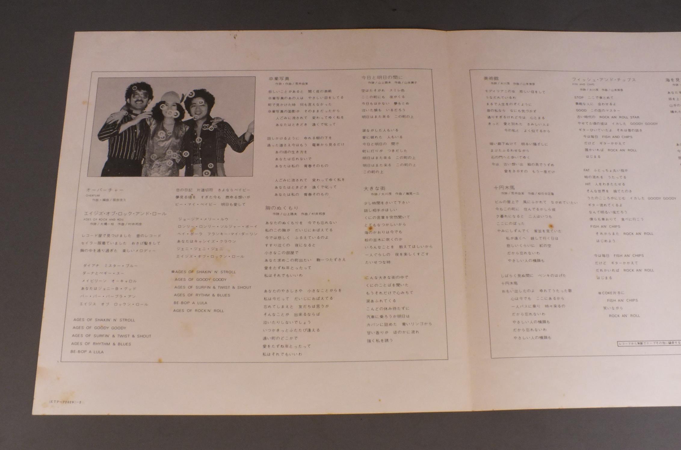 HI-FI SETハイ・ファイ・セット/SOTSUGYO SHASHIN卒業写真 ETP72029 製造国:日本盤 / Media:LP外観:VG+盤の状態:EX 価格(税込):¥550(売約済) 送料 7inch:定形外郵便 360円~LP:定形外郵便 660円~送料は、注文の最終画面で確認頂けます。 > > HI-FI SET/SOTSUGYO SHASHIN 外観 (VG+)特記事項:ジャケとカードにシミ外観VG+の共通説明:ダメージやや有り。シミ、ヨゴレ、スレなど多少~やや多め。 盤の状態 (EX)特記事項:薄いスリキズ・スレ軽くある感じ。軽微なものの様子です。盤EXの共通説明:盤面のスリキズが薄いものが少し~軽度 音に出そうなものは無いように見える(軽微なソフトティック音は除く)。 帯の状態 ():破れ有り Tweet それぞれの画像をクリックすると、大きい写真が見られます こちらの商品もお勧めです 1,320円 OKAWARI SISTERSおかわりシスターズ / L.A.S.Tラ・ス・ト カレンダー付 770円 CHAGE & ASUKAチャゲ&飛鳥 / 4th ALBUN 21 CENTURY21世紀 770円 CIRCUSサーカス / NEW HORIZON 770円 HAJIME TACHIBANA立花はじめ / MR. TECHIE & MISS KIPPLE 880円 YUMI MATSUTOYA松任谷由実 / RE INCARNATIONリ・インカーネイション 1,980円 GOODBYE / FIFTH DIMENSION 1,210円 ALFIEアルフィー / GREENHORN ( VICTOR YEARS 1974-76 ) + OUTER COVERGREENHORN ( VICTOR YEARS 1974-76 ) + オリジナル外袋 770円 KUMIKO YAMASHITA山下久美子 / DANCIN`IN THE KITCHEN