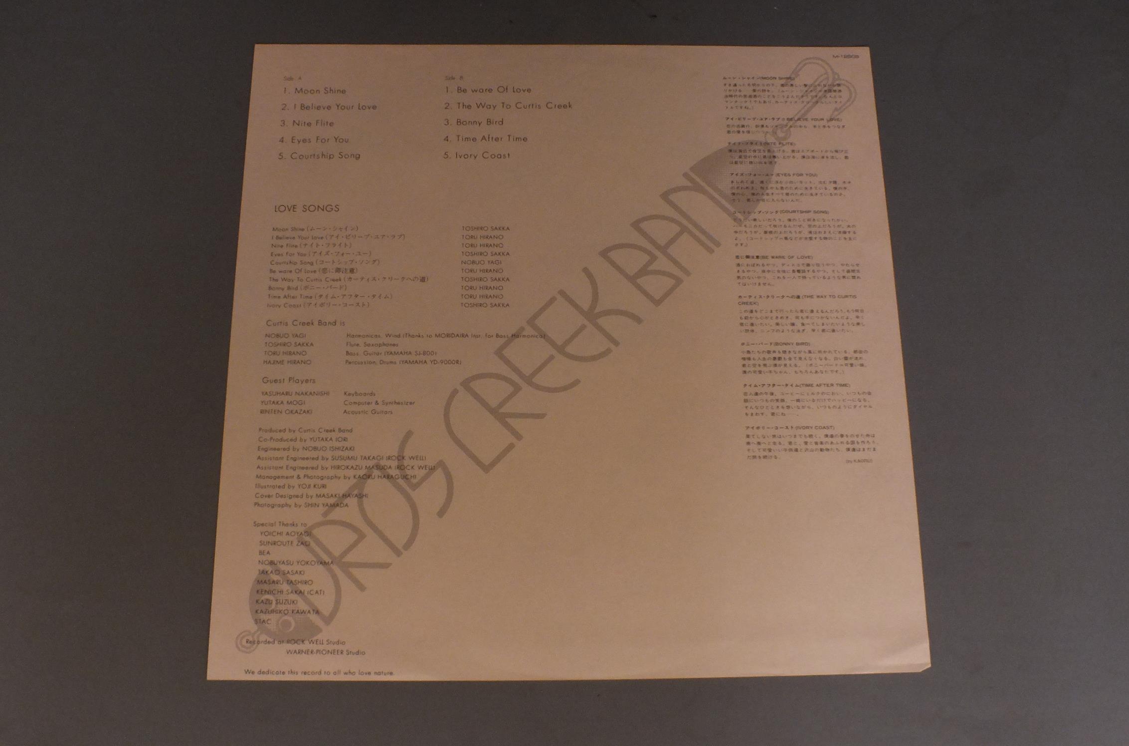 CURTIS CREEK BANDカーティス・クリーク・バンド/LOVE SONGSラブ・ソングス M12509 製造国:日本盤 / Media:LP外観:EX-盤の状態:EX+帯:VG+ 価格(税込):¥770(売約済) 送料 7inch:定形外郵便 360円~LP:定形外郵便 660円~送料は、注文の最終画面で確認頂けます。 > > CURTIS CREEK BAND/LOVE SONGS 外観 (EX-)特記事項:シミ有り外観EX-の共通説明:ダメージ軽度~多少。 中古品としては普通の状態。シミ、ヨゴレ、スレなど軽く~多少。 盤の状態 (EX+)特記事項:極薄いスリキズ・スレ少し。一見してきれいな状態です。盤EX+の共通説明:盤面の極薄いスリキズ、スレ少し程度 音に出そうなものは無いように見える(極軽微なソフトティック音は除く)。 帯の状態 (VG+):シミ有り Tweet それぞれの画像をクリックすると、大きい写真が見られます こちらの商品もお勧めです 770円 HUBERT LAWSヒューバート・ロウズ / RITE OF SPRING春の祭典 1,210円 DON GRUSINドン・グルーシン / DON GRUSINドン・グルーシン 770円 CRUSADERSクルセイダーズ / GHETTO BLASTERゲットー・ブラスター 1,210円 AL DI MEOLAアル・ディ・メオラ / SPLEMDIDO HOTELスプレンディド・ホテル 880円 SKYスカイ / CADMIUMカドミウム 1,210円 WEATHER REPORTウェザー・リポート / TALE SPINNIN`幻祭夜話 990円 MALTAマルタ / SPEERKLINGスパークリング 770円 TAKESHI ITOH伊東たけし / DEAR HEARTS