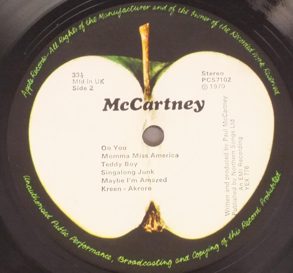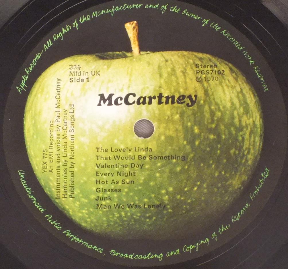 PAUL McCARTNEY/McCARTNEY PCS7102 製造国:英国盤 / Media:LPMatrix:A-2U B-2U外観:EX盤の状態:EX- 価格(税込):¥9,900(売約済) 送料 7inch:定形外郵便 360円~LP:定形外郵便 660円~送料は、注文の最終画面で確認頂けます。 > > PAUL McCARTNEY/McCARTNEY 外観 (EX)特記事項:見開きまで厚手のコーティング仕様の初期タイプ。表ジャケ左肩に濃い目のコーティングシワが一本。全体的にはコーティングシワは少なめ。スレやスリキズも薄い感じのものが中心です。外観EXの共通説明:ダメージが限定的。中古品としては保存状態がよい方。シミ、ヨゴレ、スレ 少し~軽度。 盤の状態 (EX-)特記事項:薄いスリキズ・スレ軽く〜多少ある感じ。ほとんどが軽微なものの様子です。曲間など、静かなところを中心に聴いて見ましたが、チリプチ軽度で音もしっかり鳴っていました。盤EX-の共通説明:盤面のスリキズが多少有り。音に出そうなものは殆ど無いように見える~さほど気にならないぐらいの軽いプチ数カ所程度。 Tweet それぞれの画像をクリックすると、大きい写真が見られます こちらの商品もお勧めです 5,500円 GEORGE HARRISON / LIVING IN THE MATERIAL WORLD 5,500円 GEORGE HARRISON / THIRTY THREE & 1/3 4,950円 JOHN & YOKO - PLASTIC ONO BANDF / SOME TIME IN NEW YORK CITY 5,500円 BEATLES / AT THE HOLLYWOOD BOWL 5,500円 JOHN LENNON / SHAVED FISH