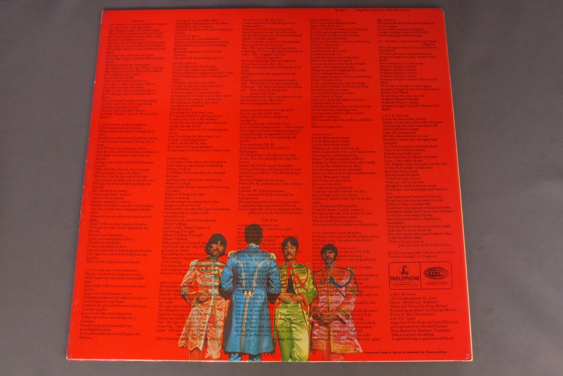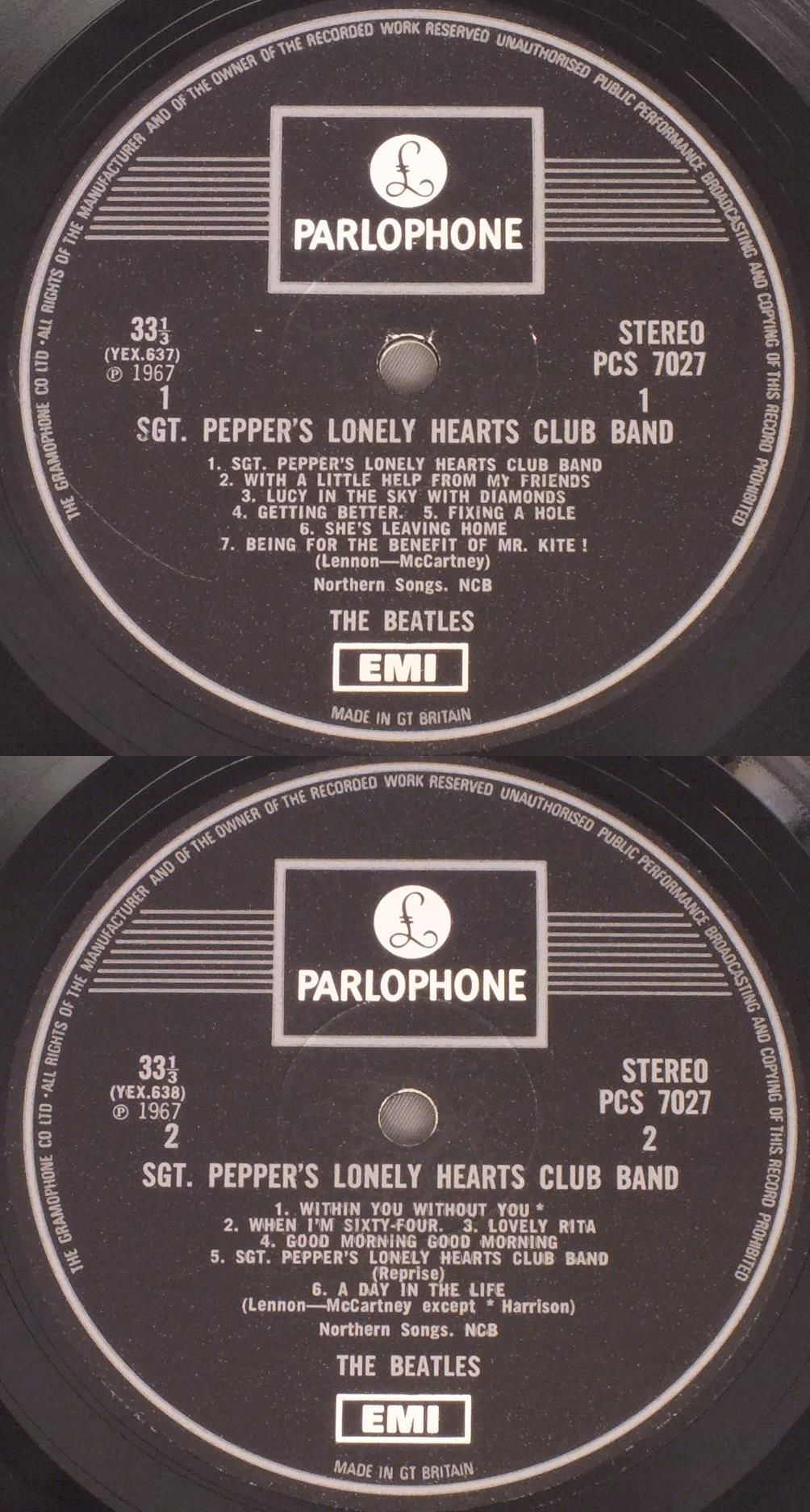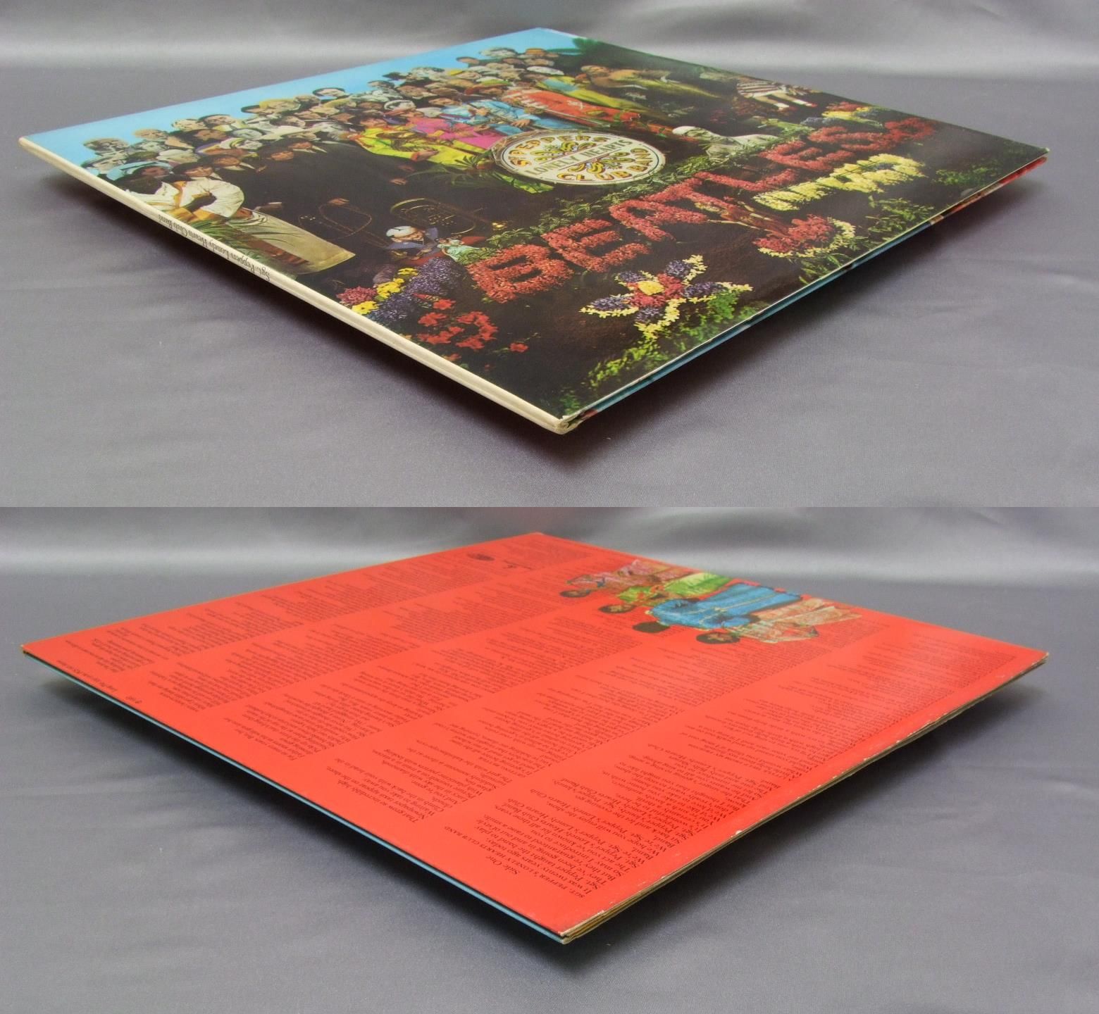 BEATLES/SGT. PEPPERS ONE MARK STEREO PCS7027 製造国:英国盤 / Media:LPMatrix: -1 | -1外観:EX盤の状態:EX 価格(税込):¥13,200(売約済) 送料 7inch:定形外郵便 360円~LP:定形外郵便 660円~送料は、注文の最終画面で確認頂けます。 > > BEATLES/SGT. PEPPERS ONE MARK STEREO 外観 (EX)特記事項:見開きまで厚手のコーティング仕様。全体的にコーティングのヨレシワは少なく、スレやスリキズ等も少ないです。表ジャケの右上隅のヘリに色剥がれが少し。カットアウトはヨレやよごれ、有るがちな切り込は有りません。左側に印刷ミスの青インクのハネ有り。外観EXの共通説明:ダメージが限定的。中古品としては保存状態がよい方。シミ、ヨゴレ、スレ 少し~軽度。 盤の状態 (EX)特記事項:薄いスリキズ・スレ少しある程度。B面に薄い小キズふうなものが有りますが、音には出てませんでした。他も音に出そうなものもなく一見してきれいな状態です。曲間など、静かなところを中心に聴いて見ましたが、チリノイズ少ないきれいな再生具合でした。盤EXの共通説明:盤面のスリキズが薄いものが少し~軽度 音に出そうなものは無いように見える(軽微なソフトティック音は除く)。 Tweet それぞれの画像をクリックすると、大きい写真が見られます こちらの商品もお勧めです 4,950円 JOHN & YOKO - PLASTIC ONO BANDF / SOME TIME IN NEW YORK CITY 5,500円 GEORGE HARRISON / LIVING IN THE MATERIAL WORLD 5,500円 JOHN LENNON / SHAVED FISH 5,500円 BEATLES / AT THE HOLLYWOOD BOWL 5,500円 GEORGE HARRISON / THIRTY THREE & 1/3