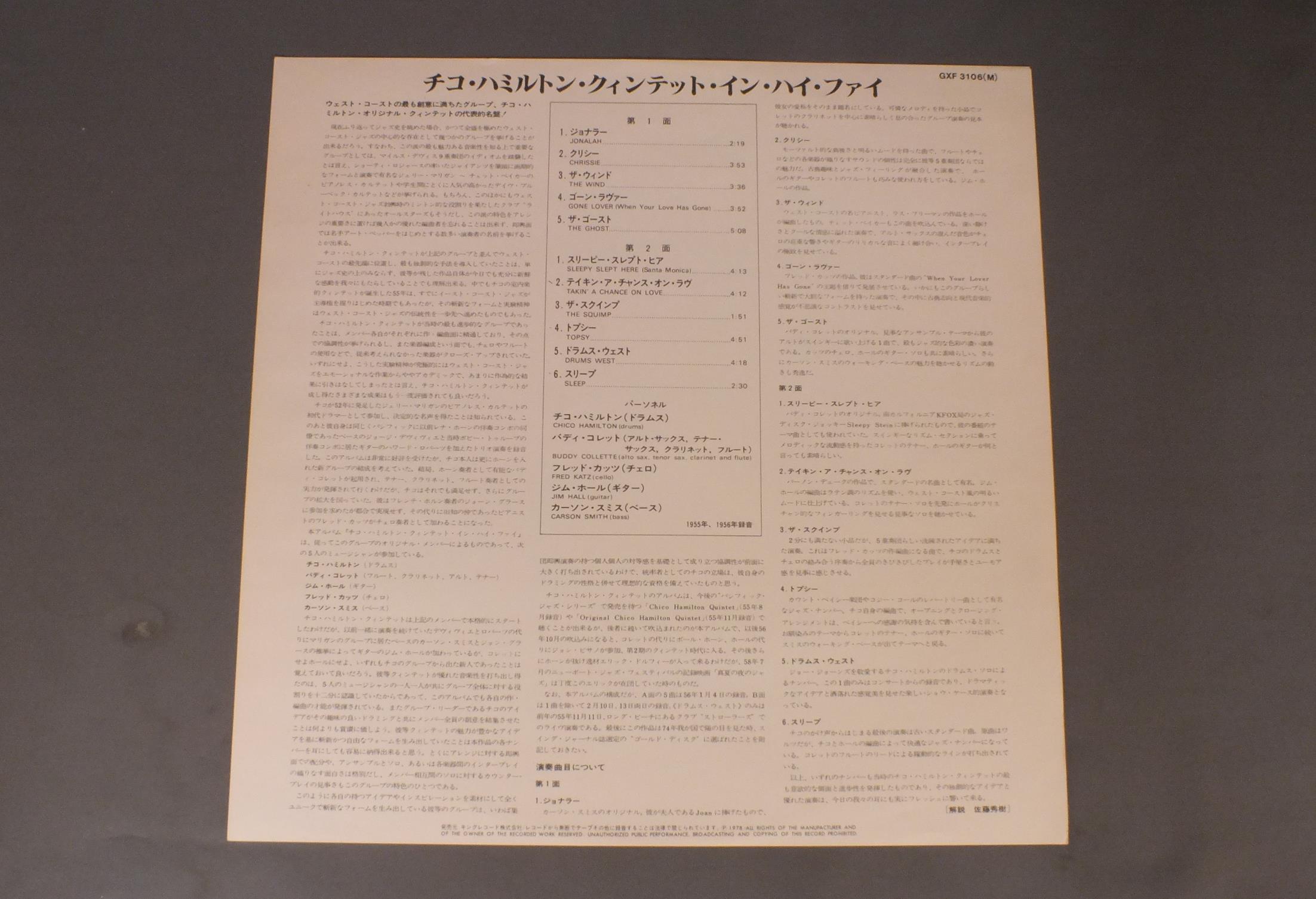 CHICO HAMILTON QUINTETチコ・ハミルトン・クインテット/CHICO HAMILTON QUINTET IN HI FIチコ・ハミルトン・クインテット・イン・ハイ・ファイ GXF3106 製造国:日本盤 / Media:LP外観:EX-盤の状態:EX 価格(税込):¥1,100(売約済) 送料 7inch:定形外郵便 360円~LP:定形外郵便 660円~送料は、注文の最終画面で確認頂けます。 > > CHICO HAMILTON QUINTET/CHICO HAMILTON QUINTET IN HI FI 外観 (EX-)特記事項:角スレ有り。付属品を含めてシミ有り。外観EX-の共通説明:ダメージ軽度~多少。 中古品としては普通の状態。シミ、ヨゴレ、スレなど軽く~多少。 盤の状態 (EX)特記事項:薄いスリキズ・スレ軽くある感じ。殆どが軽微なものの様子です。盤EXの共通説明:盤面のスリキズが薄いものが少し~軽度 音に出そうなものは無いように見える(軽微なソフトティック音は除く)。 Tweet それぞれの画像をクリックすると、大きい写真が見られます こちらの商品もお勧めです 1,320円 DOLLAR BRANDダラー・ブランド / AFRICAN PIANOアフリカン・ピアノ 1,210円 EARL HINESアール・ハインズ / SPONT ANEOUS EXPLORATIONSアール・ハインズ・ソロ・ピアノ 1,210円 LENNY WHITEレニー・ホワイト / STREAMLINEストリームライン 770円 NEW ORLEANS RASCALSニューオリンズ・ラスカルズ / 20th ANNIVERSARY CONCERT20th アニバーサリー・コンサート 1,320円 CHARLIE MINGUSチャーリー・ミンガス / PITHECANTHROPUS ERECTUS直立猿人 1,210円 HERBIE MANNハービー・マン / GLORY OF LOVEグローリー・オブ・ラヴ 1,210円 DUKE ELLINGTON WITH JIMMY JONESデューク・エリントン & ジミー・ジョーンズ / DUKE ELLINGTON`S MY PEOPLEマイ・ピープル 1,210円 RANDY WESTON SEXTETランディー・ウエストン 六重奏団 / LITTLE NILESリトル・ナイルス - ランディー・ウエストンの芸術