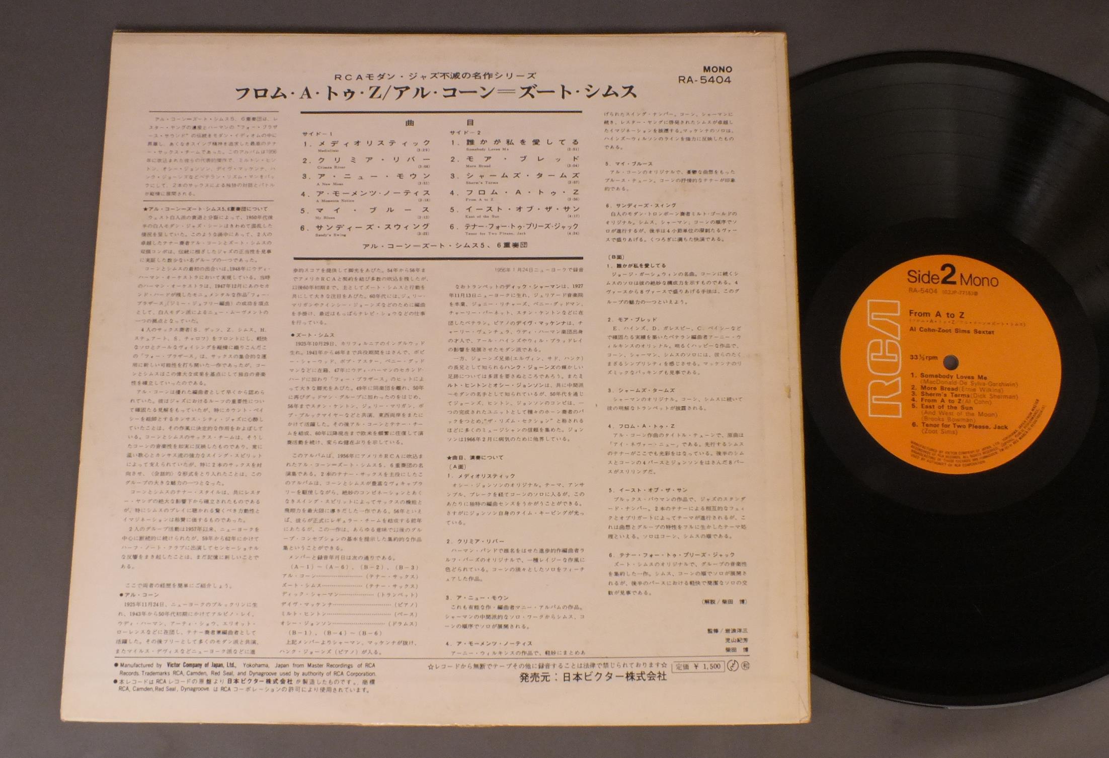 AL COHN - ZOOT SIMSアル・コーン=ズート・シムス/FROM A TO Zフロム・A・トゥ・Z RA5404 製造国:日本盤 / Media:LP外観:EX-盤の状態:EX+ 価格(税込):¥1,100(売約済) 送料 7inch:定形外郵便 360円~LP:定形外郵便 660円~送料は、注文の最終画面で確認頂けます。 > > AL COHN - ZOOT SIMS/FROM A TO Z 外観 (EX-)特記事項:角やヘリのスレ有り。付属品を含めてシミ有り。外観EX-の共通説明:ダメージ軽度~多少。 中古品としては普通の状態。シミ、ヨゴレ、スレなど軽く~多少。 盤の状態 (EX+)特記事項:薄いスリキズ・スレ少し。一見してきれいな状態です。盤EX+の共通説明:盤面の極薄いスリキズ、スレ少し程度 音に出そうなものは無いように見える(極軽微なソフトティック音は除く)。 Tweet それぞれの画像をクリックすると、大きい写真が見られます こちらの商品もお勧めです 660円 MUGGSY SPANIER & HIS RAGTIMERSマグシー・スパニアと彼のラグタイマーズ / CHICAGO JAZZシカゴ・ジャズ 660円 SADAO WATANABE渡辺貞夫 / CALIFORNIA SHOWERカリフォルニア・シャワー 1,210円 BUD FREEMAN`S SUMMA CUM LAUDE ORCH.バド・フリーマンズ・スマ・カム・ロード・オーケストラ / CHICAGO AUSTIN HIGH SCHOOL JAZZ IN HI-FIシカゴ・オースチン・ハイスクール・ジャズ 2,640円 EDDIE CONDON ALL STARSエディ・コンドン・オール・スターズ / EDDIE CONDON ALL STARS 1944 5LP BOX SETエディ・コンドン・オール・スターズ1944 5枚組 1,320円 JOE NEWMAN SEPTETジョー・ニューマン / MIDGETSミジェット 990円 TAL FARLOWタル・ファーロウ / SWINGINNG GUITARスウィンギング・ギター 1,320円 MONTY ALEXANDER TRIOモンティ・アレキサンダー / MONTREUX ALEXANDERアット・モントルー 1,210円 HERBIE MANNハービー・マン / GLORY OF LOVEグローリー・オブ・ラヴ