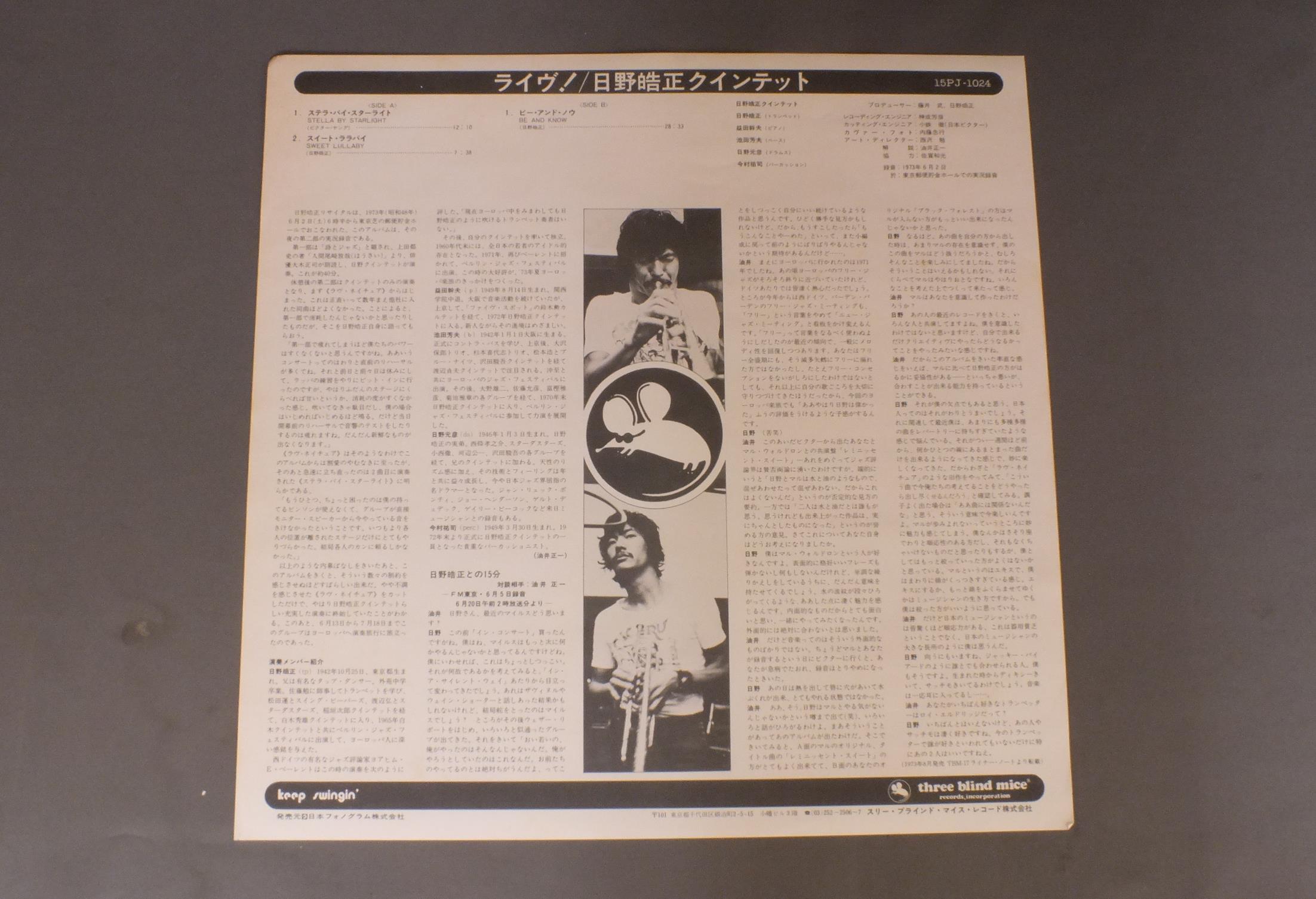 TERUMASA HINO日野皓正/LIVE!ライヴ! 15PJ1024 製造国:日本盤 / Media:LP外観:EX盤の状態:EX+ 価格(税込):¥3,045(売約済) 送料 7inch:定形外郵便 360円~LP:定形外郵便 660円~送料は、注文の最終画面で確認頂けます。 > > TERUMASA HINO/LIVE! 外観 (EX)特記事項:シミ有り。外観EXの共通説明:ダメージが限定的。中古品としては保存状態がよい方。シミ、ヨゴレ、スレ 少し~軽度。 盤の状態 (EX+)特記事項:薄いスリキズ・スレ少し。一見してきれいな状態です。盤EX+の共通説明:盤面の極薄いスリキズ、スレ少し程度 音に出そうなものは無いように見える(極軽微なソフトティック音は除く)。 Tweet それぞれの画像をクリックすると、大きい写真が見られます こちらの商品もお勧めです 990円 TAL FARLOWタル・ファーロウ / SWINGINNG GUITARスウィンギング・ギター 770円 SINGERS UNLIMITEDシンガーズ・アンリミテッド / CAPELLAア・カペラ 1,320円 RAMSEY LEWIS -BOB JAMES etcラムゼイ・ルイス - ボブ・ジェームス他 / ONE-NIGHT STAND A KEYBOARD EVENTワンナイト・スタンド-キーボード・イベント 660円 JACQUES LOUSSIERジャック・ルーシエ・トリオ / PLAY BACH VOL.4プレイ・バッハ 第4集 770円 TOSHIYUKI ICHIMURA市村俊幸 / MY LIFE MY PIANO 770円 GEORGE LEWISジョージ・ルイス / ON PARADEオン・パレード 770円 NORIO MAEDA前田憲男 / FEELINGSフィーリング 1,320円 TOSHIKO AKIYOSHI - LEW TABACKIN BIG BAND秋吉敏子=ルー・タバキン・ビッグ・バンド / INSIGHTSインサイツ