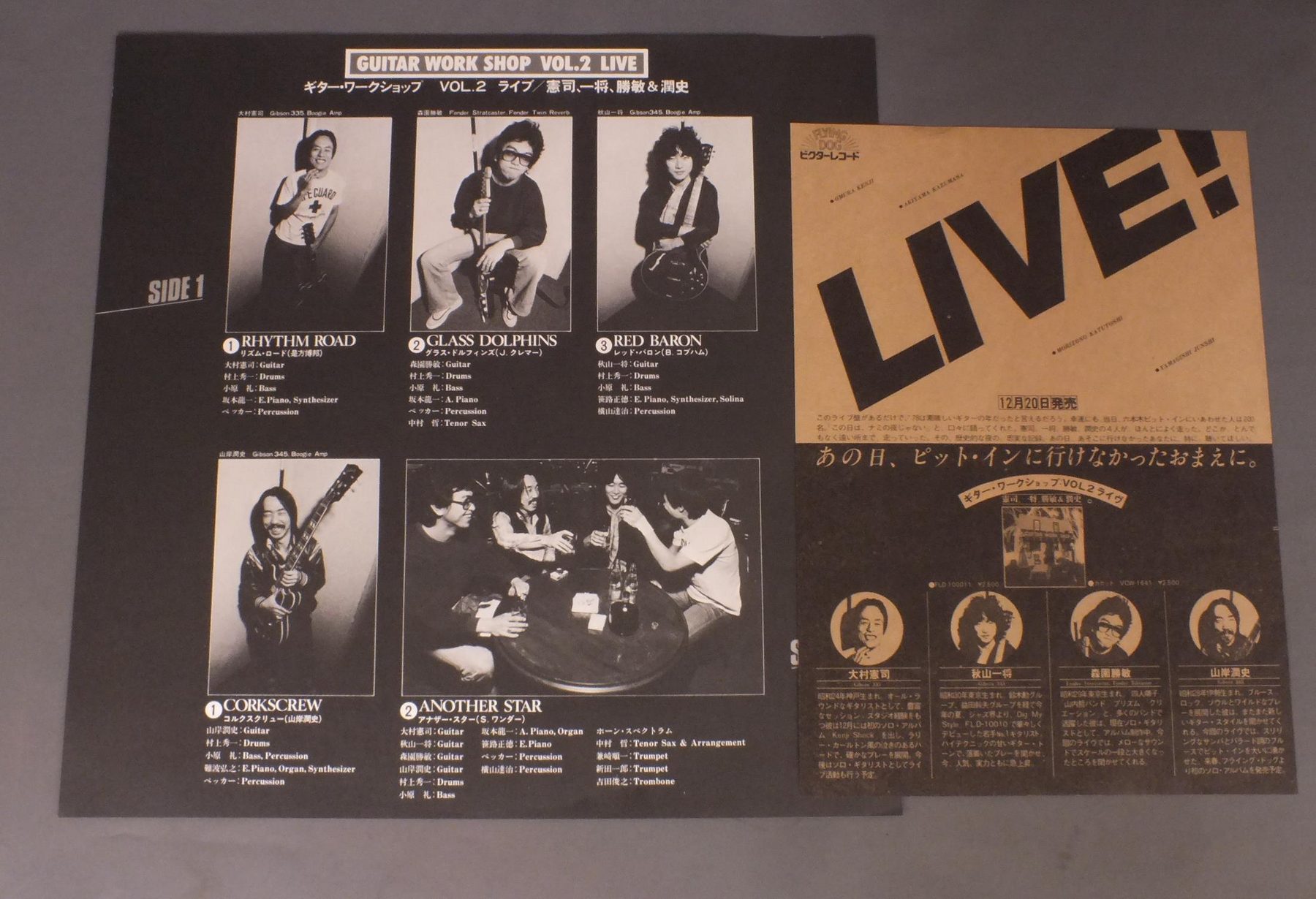GUITAR WORK SHOP大村憲司 - 秋山一将 - 森園勝敏 & 山岸潤史/ VOL2 LIVEギターワークショップVOL2ライブ FLD10011 製造国:日本盤 / Media:LP外観:EX盤の状態:EX 価格(税込):¥1,980(売約済) 送料 7inch:定形外郵便 360円~LP:定形外郵便 660円~送料は、注文の最終画面で確認頂けます。 > > GUITAR WORK SHOP/ VOL2 LIVE 外観 (EX)特記事項:角やヘリのスレ有り。外観EXの共通説明:ダメージが限定的。中古品としては保存状態がよい方。シミ、ヨゴレ、スレ 少し~軽度。 盤の状態 (EX)特記事項:薄いスリキズ・スレ軽くある感じ。軽微なものの様子です。盤EXの共通説明:盤面のスリキズが薄いものが少し~軽度 音に出そうなものは無いように見える(軽微なソフトティック音は除く)。 Tweet それぞれの画像をクリックすると、大きい写真が見られます こちらの商品もお勧めです 880円 MASAMI NAKAGAWA中川昌三 / PRELUDE FOR AUTUMNプレリュード・フォー・オータム 770円 ERROLL GARNER-ARCHIE SHEPP etc / SAVOY 100 ALUMS-SPECIAL MENUサヴォイ・スペシャル・メニュー 770円 GEORGE LEWISジョージ・ルイス / AT CLUB HANGOVER VOL1アット・クラブ・ハングオーヴァー VOL1 1,650円 MASARU IMADA今田勝 / CARNIVAL哀愁のカーニヴァル 1,320円 HERBIE MANNハービー・マン楽団 / ST.THOMAS 60s ISSUEセント・トーマス ペラジャケ 1,210円 BUCK CLAYTON SEPTETバック・クレイトン / BUCKIN` THE BLUESバッキン・ザ・ブルース 1,320円 YOSHITAKA AKIMITSU秋満義孝 / VIVRE POUR VIVREパリのめぐり逢い 1,210円 BENNY GOODMAN TRIOベニーグッドマントリオ / PLAYS FOR FLETCHER HENDERSON FUNDプレイズ・フォー・ザ・フィレッチャー・ヘンダーソン