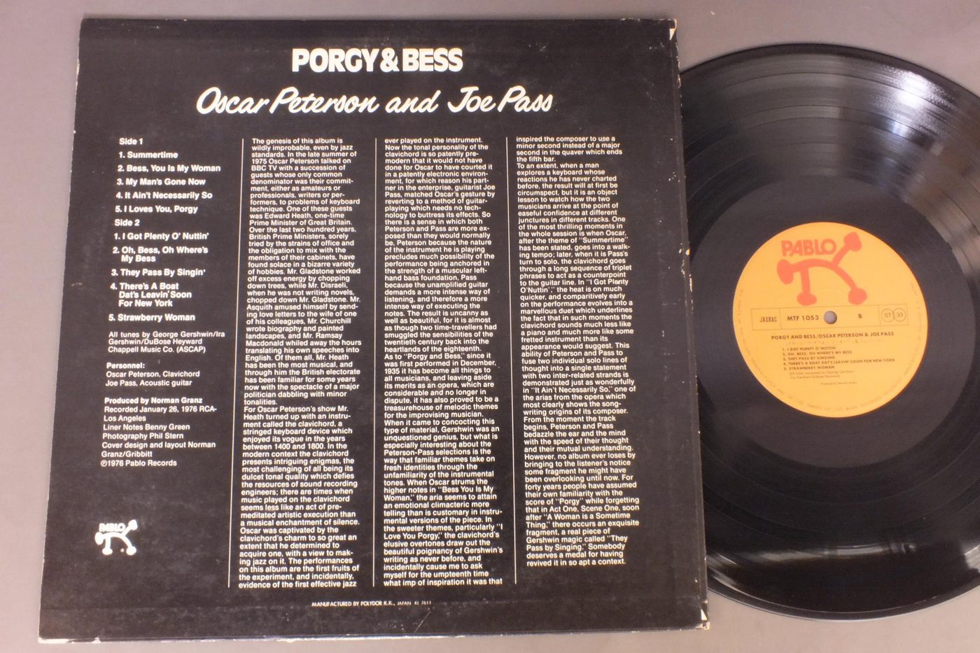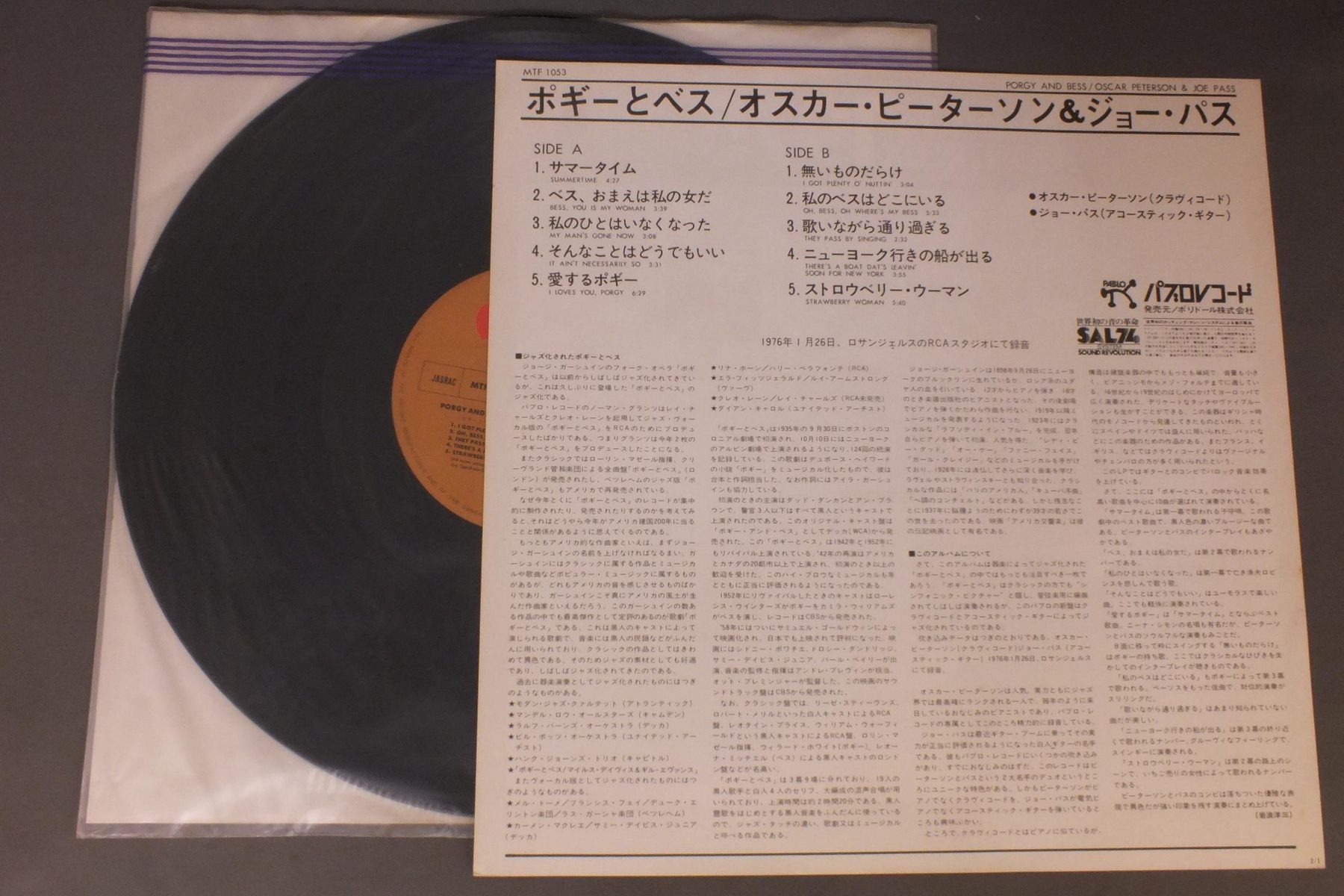 OSCAR PETERSON AND JOE PASSオスカー・ピーターソン&ジョー・パス/PORGY & BESSポギーとベス MTF1053 製造国:日本盤 / Media:LP外観:VG+盤の状態:EX 価格(税込):¥880(売約済) 送料 7inch:定形外郵便 360円~LP:定形外郵便 660円~送料は、注文の最終画面で確認頂けます。 > > OSCAR PETERSON AND JOE PASS/PORGY & BESS 外観 (VG+)特記事項:背や上下ヘリスレ有り。底抜け有り。外観VG+の共通説明:ダメージやや有り。シミ、ヨゴレ、スレなど多少~やや多め。 盤の状態 (EX)特記事項:薄いスリキズ・スレ軽くある感じ。軽微なものの様子です。盤EXの共通説明:盤面のスリキズが薄いものが少し~軽度 音に出そうなものは無いように見える(軽微なソフトティック音は除く)。 Tweet それぞれの画像をクリックすると、大きい写真が見られます こちらの商品もお勧めです 770円 CHARLIE PARKERチャーリー・パーカー / CHARLIE PARKER ON SAVOY VOL6チャーリー・パーカー・オン・サヴォイVOL6 1,320円 GATO BARBIERIガトー・バルビエリ / EL PAMPEROエル・パンペーロ 1,210円 DUKE ELLINGTON WITH JIMMY JONESデューク・エリントン & ジミー・ジョーンズ / DUKE ELLINGTON`S MY PEOPLEマイ・ピープル 990円 TAL FARLOWタル・ファーロウ / SWINGINNG GUITARスウィンギング・ギター 1,210円 RED NICHOLS & HIS FIVE PENNIESレッド・ニコルスとファイブ・ペニーズ / RED NICHOLS STORYレッド・ニコルス物語 660円 LALO SCHIFRINラロ・シフリン / BLACK WIDOWブラック・ウィンドウ 990円 CHARLIE PARKERチャーリー・パーカー / CHARLIE PARKER ON SAVOY VOL4チャーリー・パーカー・オン・サヴォイVOL4 440円 ROGER KELLAWAYロジャー・ケラウェイ / CENTER OF THE CIRCLE核