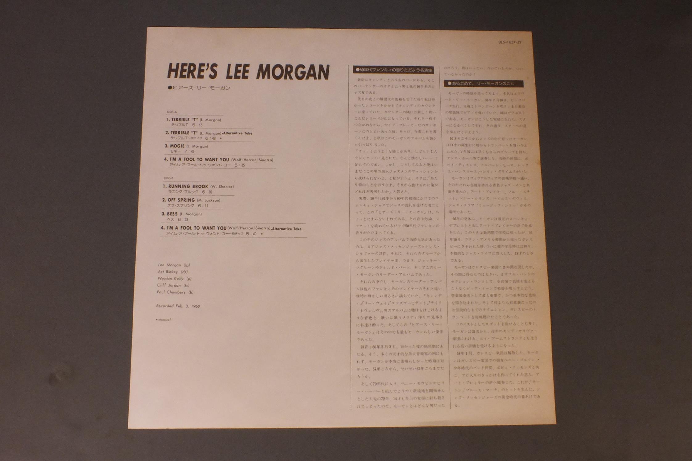 LEE MORGANリー・モーガン/HERE`S LEE MORGANヒアーズ・リー・モーガン ULS1657JY 製造国:日本盤 / Media:LP外観:EX盤の状態:EX+ 価格(税込):¥1,320(売約済) 送料 7inch:定形外郵便 360円~LP:定形外郵便 660円~送料は、注文の最終画面で確認頂けます。 > > LEE MORGAN/HERE`S LEE MORGAN 外観 (EX)特記事項:特記なし。外観EXの共通説明:ダメージが限定的。中古品としては保存状態がよい方。シミ、ヨゴレ、スレ 少し~軽度。 盤の状態 (EX+)特記事項:薄いスリキズ・スレ少し。一見してきれいな状態です。盤EX+の共通説明:盤面の極薄いスリキズ、スレ少し程度 音に出そうなものは無いように見える(極軽微なソフトティック音は除く)。 Tweet それぞれの画像をクリックすると、大きい写真が見られます こちらの商品もお勧めです 880円 MODERN JAZZ QUARTETモダン・ジャズ・クワルテット / BASED ON BACH & THE BLUESバッハとブルースを基に 660円 MUGGSY SPANIER & HIS RAGTIMERSマグシー・スパニアと彼のラグタイマーズ / CHICAGO JAZZシカゴ・ジャズ 990円 GARY BURTONゲイリー・バートン / ALONE AT LASTアローン・アット・ラスト 990円 ISAO SASAKIイサオ・ササキ / AUTUMN SERENADEオータム・セレナーデ 770円 CHICK COREA etcチック・コリア 他 / ECM SPECIALECMスペシャル 1,210円 WOODY HERMANウディ・ハーマン / SECOND HERDセカンド・ハード 1,210円 ART FARMER AND THE ORCHESTRAアート・ファーマー楽団 / LISTEN TO ART FARMER AND THE ORCHESTRA 60s ISSUEアート・ファーマーの芸術 ペラジャケ 990円 JIMMIE LUNCEFORDジミー・ランスフォード / LUNSEFORD SPECIALランスフォード・スペシャル
