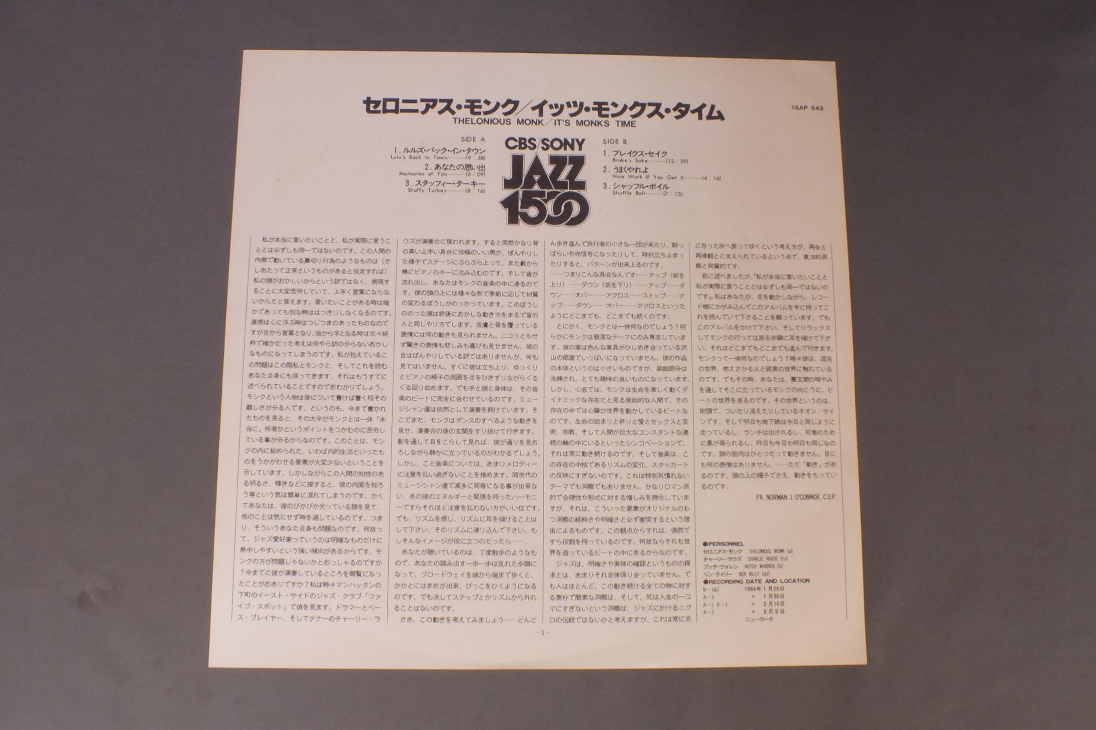 THELONIOUS MONKセロニアス・モンク/IT`S MONK`S TIMEイッツ・モンクス・タイム 15AP543 製造国:日本盤 / Media:LP外観:EX-盤の状態:EX+ 価格(税込):¥1,100(売約済) 送料 7inch:定形外郵便 360円~LP:定形外郵便 660円~送料は、注文の最終画面で確認頂けます。 > > THELONIOUS MONK/IT`S MONK`S TIME 外観 (EX-)特記事項:上ヘリにスレ。裏ジャケにスレよごれやシミ。外観EX-の共通説明:ダメージ軽度~多少。 中古品としては普通の状態。シミ、ヨゴレ、スレなど軽く~多少。 盤の状態 (EX+)特記事項:薄いスリキズ・スレ少し。一見してきれいな状態です。盤EX+の共通説明:盤面の極薄いスリキズ、スレ少し程度 音に出そうなものは無いように見える(極軽微なソフトティック音は除く)。 Tweet それぞれの画像をクリックすると、大きい写真が見られます こちらの商品もお勧めです 1,650円 NORIO MAEDA前田憲男 / SOUND IN VICTRONSOUND IN VICTRON 770円 TONY SCOTT QUINTETトニー・スコット・クワルテット / TONY SCOTT QUINTET 1,320円 JOHN COLTRANE & WILBURN HARDENジョン・コルトレーン&ウィルバー・ハーディン / MAINSTREAM 1958メインストリーム1958 660円 LALO SCHIFRINラロ・シフリン / BLACK WIDOWブラック・ウィンドウ 770円 SADAO WATANABE渡辺貞夫 / MY DEAR LIFEマイ・ディア・ライフ 990円 OSCAR PETERSON TRIOオスカー・ピーターソン・トリオ / IN TUNEイン・チューン 990円 MODERN JAZZ QUARTETモダン・ジャズ・カルテット / TOGETHER AGAINトゥゲザー・アゲイン 770円 RON CARTERロン・カーター / ANYTHING GOESエニシング・ゴーズ