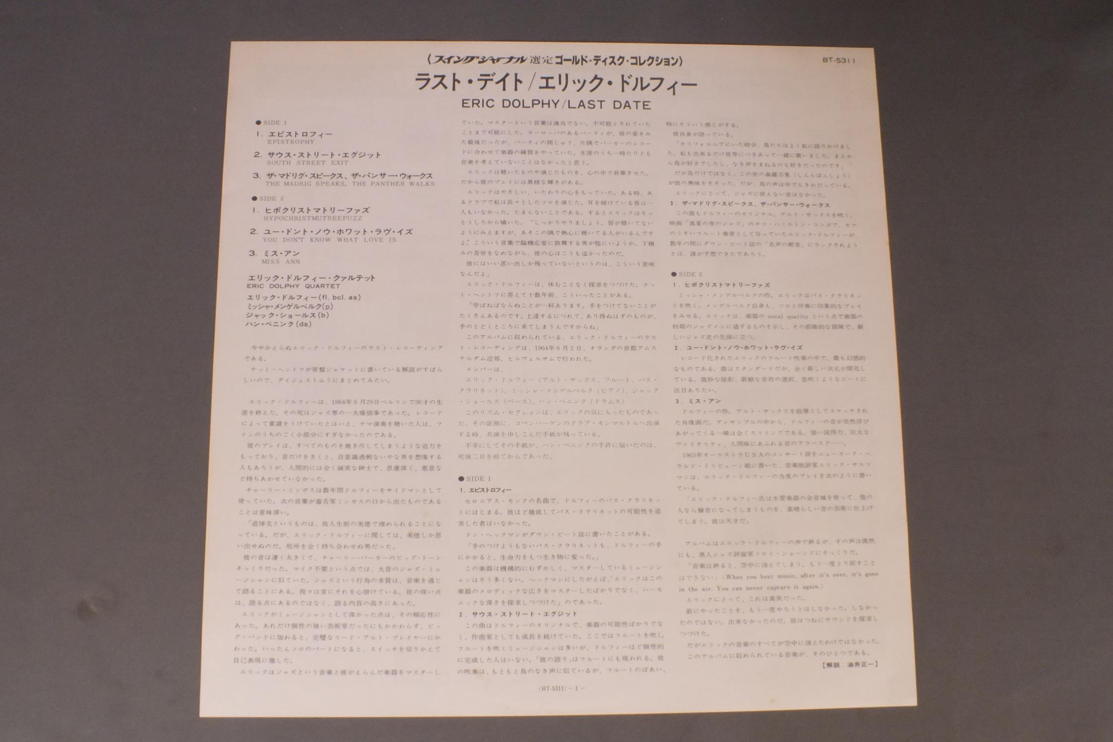 ERIC DOLPHYエリック・ドルフィー/LAST DATEラスト・デイト BT5311 製造国:日本盤 / Media:LP外観:EX-盤の状態:EX+ 価格(税込):¥2,290(売約済) 送料 7inch:定形外郵便 360円~LP:定形外郵便 660円~送料は、注文の最終画面で確認頂けます。 > > ERIC DOLPHY/LAST DATE 外観 (EX-)特記事項:表裏ジャケ共にシミ軽有り。外観EX-の共通説明:ダメージ軽度~多少。 中古品としては普通の状態。シミ、ヨゴレ、スレなど軽く~多少。 盤の状態 (EX+)特記事項:薄いスリキズ・スレ少し。一見してきれいな状態です。盤EX+の共通説明:盤面の極薄いスリキズ、スレ少し程度 音に出そうなものは無いように見える(極軽微なソフトティック音は除く)。 Tweet それぞれの画像をクリックすると、大きい写真が見られます こちらの商品もお勧めです 1,320円 MODERN JAZZ QUARTETMJQ / BASED ON BACH & THE BLUESバッハとブルースを基に 1,320円 EDDIE COSTA TRIOエディ・コスタ・トリオ / HOUSE OF BLUE LIGHTSハウス・オブ・ブルー・ライツ 990円 RICHIE COLEリッチー・コール / ALIVE !アライヴ ! 990円 SHOJI SUZUKI & HIS RHYTHM ACES鈴木章治とリズム・エース / SUZUKAKE NO MICHI新・鈴懸の径 1,210円 BENNY GOODMAN TRIOベニーグッドマントリオ / PLAYS FOR FLETCHER HENDERSON FUNDプレイズ・フォー・ザ・フィレッチャー・ヘンダーソン 1,210円 RED NICHOLS & HIS FIVE PENNIESレッド・ニコルスとファイブ・ペニーズ / RED NICHOLS STORYレッド・ニコルス物語 660円 JACQUES LOUSSIERジャック・ルーシエ・トリオ / PLAY BACH VOL.4プレイ・バッハ 第4集 1,320円 JACKIE McLEAN QUINTETジャッキー・マクリーン・クインテット / JACKIE McLEAN QUINTETJACIE McLEAN QUINTET
