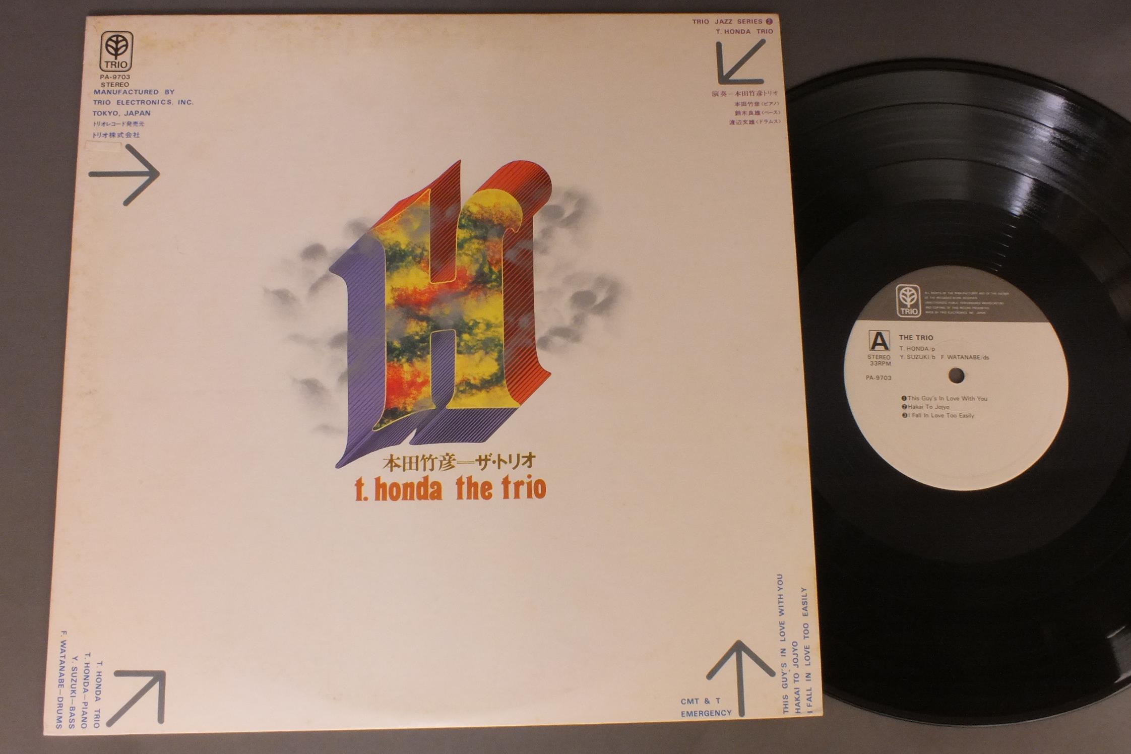 T.HONDA THE TRIO本田竹彦トリオ/T.HONDA THE TRIO本田竹彦=ザ・トリオ PA9703 製造国:日本盤 / Media:LP外観:EX-盤の状態:EX+ 価格(税込):¥2,200(売約済) 送料 7inch:定形外郵便 360円~LP:定形外郵便 660円~送料は、注文の最終画面で確認頂けます。 > > T.HONDA THE TRIO/T.HONDA THE TRIO 外観 (EX-)特記事項:表裏ジャケ共にシミ有り外観EX-の共通説明:ダメージ軽度~多少。 中古品としては普通の状態。シミ、ヨゴレ、スレなど軽く~多少。 盤の状態 (EX+)特記事項:極薄いスリキズ・スレ少し。一見してきれいな状態です。盤EX+の共通説明:盤面の極薄いスリキズ、スレ少し程度 音に出そうなものは無いように見える(極軽微なソフトティック音は除く)。 Tweet それぞれの画像をクリックすると、大きい写真が見られます こちらの商品もお勧めです 880円 HARRIS SIMON GROUPハリス・サイモン・グループ / NEW YORK CONNECTIONニューヨーク・コネクション 770円 TOSHIYUKI ICHIMURA市村俊幸 / MY LIFE MY PIANO 1,320円 JAMES LAST BANDジェームス・ラスト・バンド / SEDUCTIONセダクション 1,210円 BUD FREEMAN`S SUMMA CUM LAUDE ORCH.バド・フリーマンズ・スマ・カム・ロード・オーケストラ / CHICAGO AUSTIN HIGH SCHOOL JAZZ IN HI-FIシカゴ・オースチン・ハイスクール・ジャズ 1,320円 SHIRO MICHI道志郎 / WONDERFUL WORLD OF ELECTONEエレクトーンの驚異 770円 MATT DENNIS & RED NORVOマット・デニス & レッド・ノーヴォ / SOME OF MY FAVORITESサム・オブ・マイ・フェイバリッツ 1,320円 HAMPTON HAWESハンプトン・ホース / HAMPTON HAWES VOL1ザ・トリオ VOL1 770円 EDDIE JEFFERSONエディ・ジェファーソン / LETTER FROM HOMEレター・フロム・ホーム