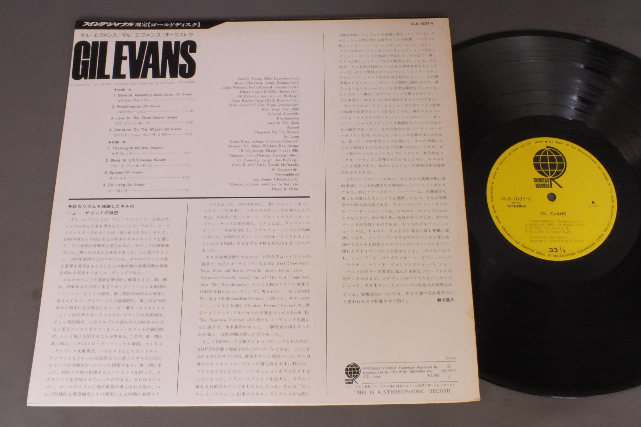 GIL EVANSギル・エヴァンス/GIL EVANSギル・エヴァンス ULS1637Y 製造国:日本盤 / Media:LP外観:EX盤の状態:EX+ 価格(税込):¥880(売約済) 送料 7inch:定形外郵便 360円~LP:定形外郵便 660円~送料は、注文の最終画面で確認頂けます。 > > GIL EVANS/GIL EVANS 外観 (EX)特記事項:特記なし。外観EXの共通説明:ダメージが限定的。中古品としては保存状態がよい方。シミ、ヨゴレ、スレ 少し~軽度。 盤の状態 (EX+)特記事項:極薄いスリキズ・スレ少し。一見してきれいな状態です。盤EX+の共通説明:盤面の極薄いスリキズ、スレ少し程度 音に出そうなものは無いように見える(極軽微なソフトティック音は除く)。 Tweet それぞれの画像をクリックすると、大きい写真が見られます こちらの商品もお勧めです 990円 MILT JACKSON/RAY BROWN JAMミルト・ジャクソン&レイ・ブラウン / MONTREUX`77ミルト・ジャクソン&レイ・ブラウン・ジャム・アット・モントゥルー`77 1,210円 HERBIE MANNハービー・マン / GLORY OF LOVEグローリー・オブ・ラヴ 1,320円 RICHIE COLEリッチー・コール / ALIVE !アライヴ ! 770円 TEDDY CHARLES TENTETテディ・チャールズ・テンテット / TEDDY CHARLES TENTETテディ・チャールズ・テンテット 1,320円 SUPER JAZZ TRIOスーパー・ジャズ・トリオ / THE STANDARDザ・スタンダード 990円 RICHIE COLEリッチー・コール / ALIVE !アライヴ ! 1,320円 SONNY CLARK TRIOソニー・クラーク・トリオ / SAME TITEL 3,300円 EDDIE CONDON ALL STARSエディ・コンドン・オール・スターズ / EDDIE CONDON ALL STARS 1945 5LP BOX SETエディ・コンドン・オール・スターズ1945 5枚組