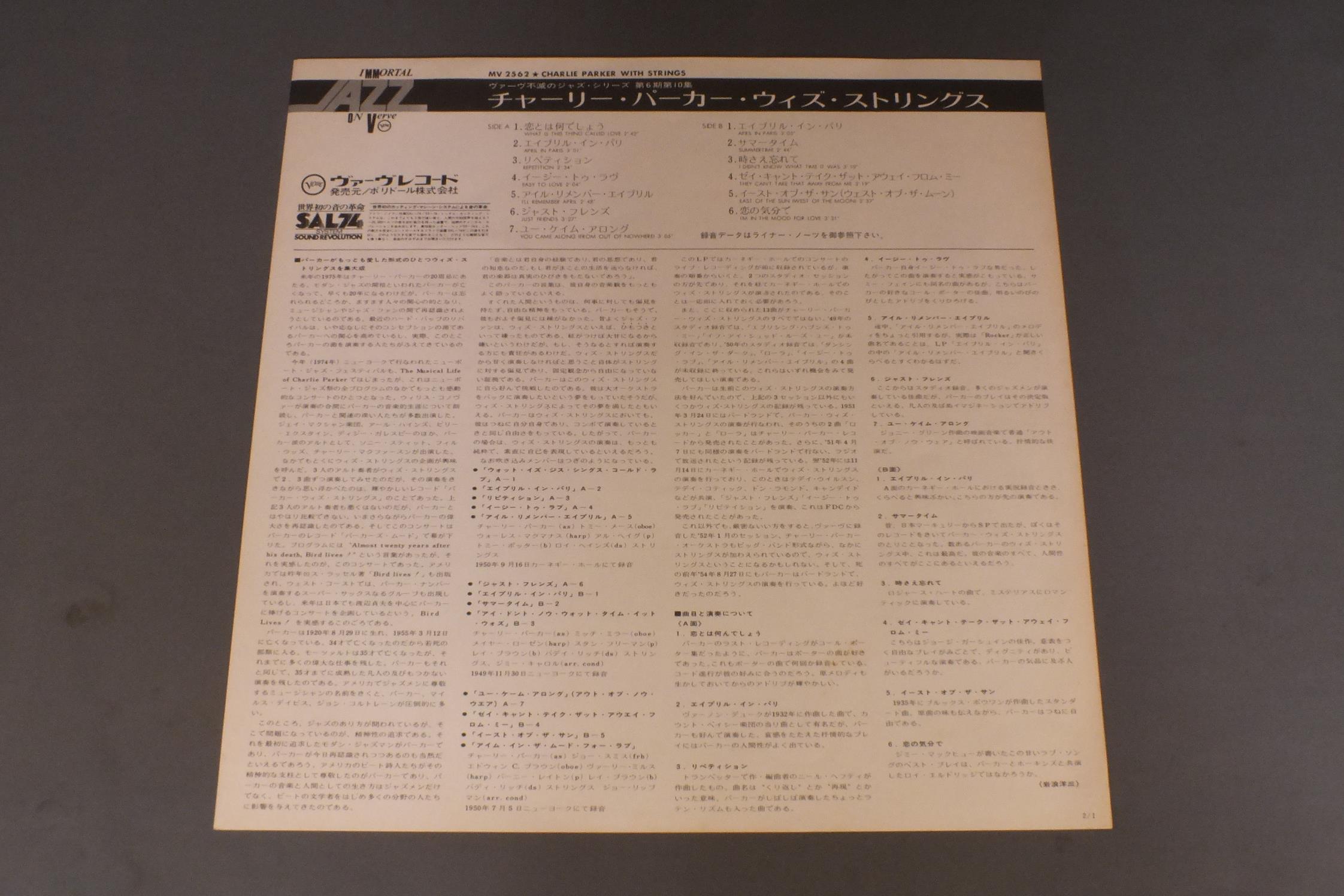 CHARLIE PARKERチャーリー・パーカー/CHARLIE PARKER WITH STRINGSチャーリー・パーカー・ウィズ・ストリングス MV2562 製造国:日本盤 / Media:LP外観:EX-盤の状態:EX 価格(税込):¥990(売約済) 送料 7inch:定形外郵便 360円~LP:定形外郵便 660円~送料は、注文の最終画面で確認頂けます。 > > CHARLIE PARKER/CHARLIE PARKER WITH STRINGS 外観 (EX-)特記事項:角やヘリにスレ有り。シミ有り。外観EX-の共通説明:ダメージ軽度~多少。 中古品としては普通の状態。シミ、ヨゴレ、スレなど軽く~多少。 盤の状態 (EX)特記事項:薄いスリキズ・スレ軽くある感じ。殆どが軽微なものの様子です。盤EXの共通説明:盤面のスリキズが薄いものが少し~軽度 音に出そうなものは無いように見える(軽微なソフトティック音は除く)。 Tweet それぞれの画像をクリックすると、大きい写真が見られます こちらの商品もお勧めです 770円 CHARLIE PARKERチャーリー・パーカー / CHARLIE PARKER ON SAVOY VOL7チャーリー・パーカー・オン・サヴォイVOL7 1,210円 WILLIE SMITH - JESS STACY - JOE SULLIVANジェス・ステイシー - ウィリイ・スミス - ジョー・サリバン / CHAIRMEN OF THE BOARD VOL2ピアノ・ジャズの競演 第2集 990円 RICHIE COLEリッチー・コール / ALIVE !アライヴ ! 1,320円 GATO BARBIERIガトー・バルビエリ / EL PAMPEROエル・パンペーロ 770円 ART TATUM AND HIS BANDアート・テイタム / FEATURING BIG JOETURNER JOE THOMAS EDMODHALL MARSHALL ROYALオール・スター・セッション 1,650円 ALBERT AYLERアルバート・アイラー / VOLUME 1ラスト・レコーディング VOL1 1,650円 MASABUMI KIKUCHI + GIL EVANS菊池雅章 / SAME TITLEWITH ギル・エヴァンス 880円 GROVER WASHINGTON JR.グローヴァー・ワシントンJR. / COME MORNINGカム・モーニング
