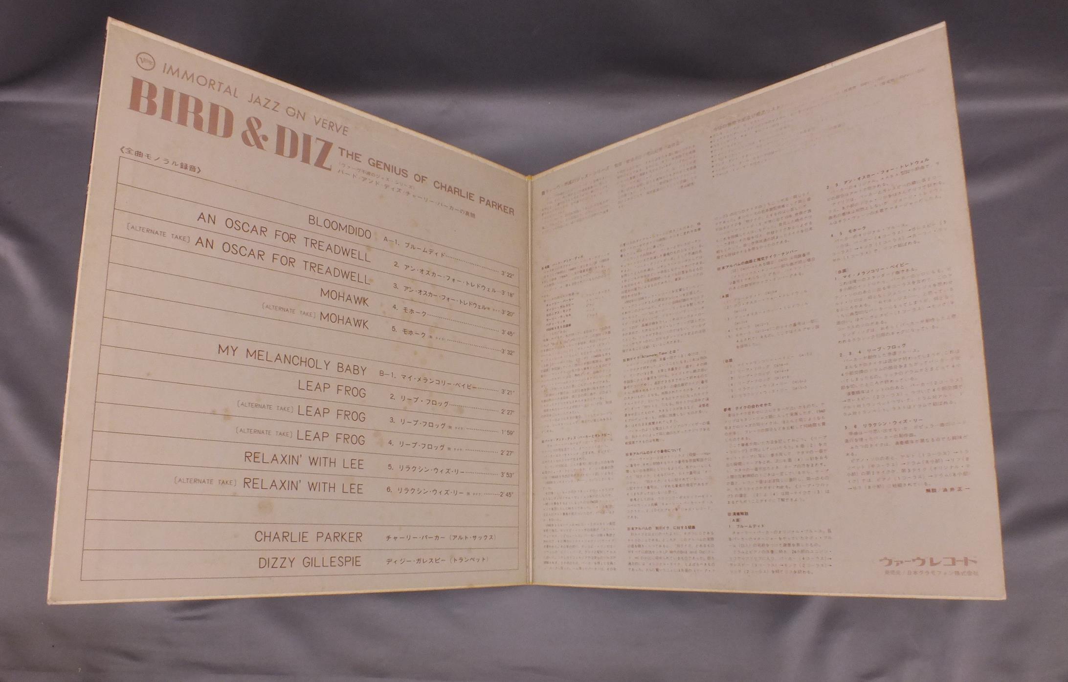 CHARLIE PARKERチャーリー・パーカー/BIRD AND DIZ THE GENIUS OF CHARLIE PARKERバード・アンド・ディズ/チャーリー・パーカーの真髄 SMV1104 製造国:日本盤 / Media:LP外観:VG+盤の状態:EX- 価格(税込):¥990(売約済) 送料 7inch:定形外郵便 360円~LP:定形外郵便 660円~送料は、注文の最終画面で確認頂けます。 レコード検索 > CLASSIC ORCH. > CHARLIE PARKER/BIRD AND DIZ THE GENIUS OF CHARLIE PARKER 外観 (VG+)特記事項:背にシミ日焼け。スレや薄いよごれ有り。見開きにシミ。外観VG+の共通説明:ダメージやや有り。シミ、ヨゴレ、スレなど多少~やや多め。 盤の状態 (EX-)特記事項:薄いスリキズ・細かい表面スレ多少ある感じ。殆どが軽微なものの様子です。盤EX-の共通説明:盤面のスリキズが多少有り。音に出そうなものは殆ど無いように見える~さほど気にならないぐらいの軽いプチ数カ所程度。 Tweet それぞれの画像をクリックすると、大きい写真が見られます こちらの商品もお勧めです 770円 THAD JONES & MEL LEWISサド・ジョーンズ & メル・ルイス / LIVE IN TOKYOライブ・イン・東京 770円 VARIOUS ARTISTSエドモンド・ホール他 / 52nd STREET SESSIONS52番街セッションズ 1,210円 WYNTON KELLYウィントン・ケリー / KELLY BLUEケリー・ブルー 1,320円 SONNY CLARK TRIOソニー・クラーク・トリオ / SAME TITEL 770円 KAI WINDING & J.J.JOHNSONケイ・ウィンディング5重奏団 + J.J.ジョンソン / AFTERNOON AT BIRDLANDバードランドのJ & K 3,300円 EDDIE CONDON ALL STARSエディ・コンドン・オール・スターズ / EDDIE CONDON ALL STARS 1945 5LP BOX SETエディ・コンドン・オール・スターズ1945 5枚組 770円 COZY COLE - RED NORVO etcコジー・コール - レッド・ノーヴォ他 / ALL STAR SESSIONSオール・スター・セッション 770円 NEW ORLEANS RASCALSニューオリンズ・ラスカルズ / 20th ANNIVERSARY CONCERT20th アニバーサリー・コンサート