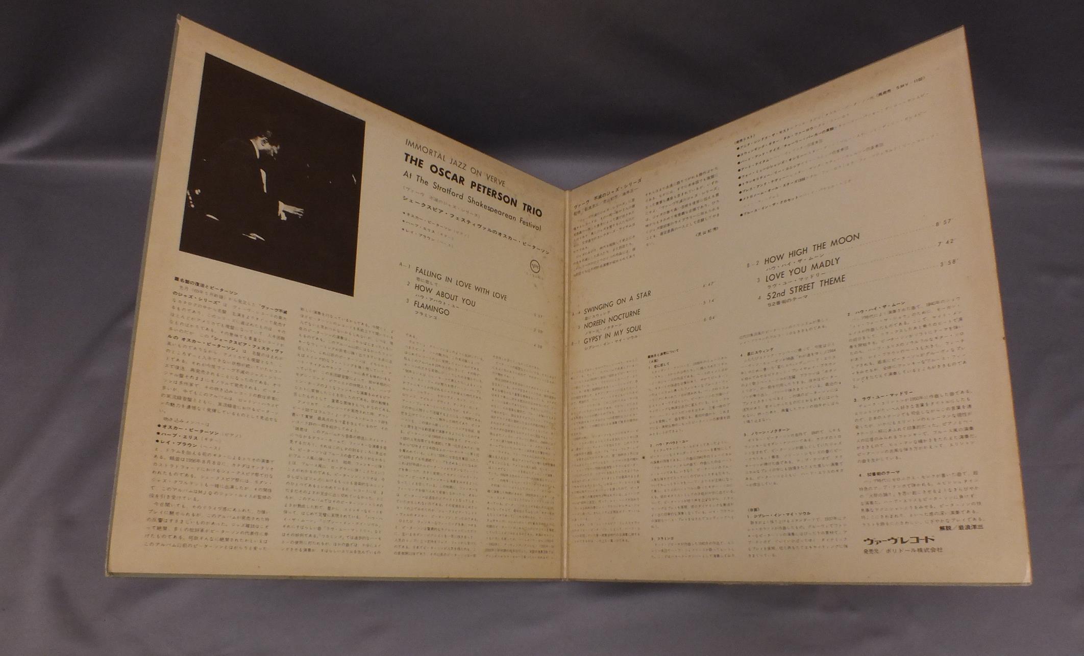 OSCAR PETERSON TRIOオスカー・ピーターソン/OSCAR PETERSON TRIO AT THE STRATFORD SHAKESPEAREAN FESTIVALシェークスピア・フェスティヴァルのオスカー・ピーターソン MV1103 製造国:日本盤 / Media:LP外観:VG+盤の状態:EX 価格(税込):¥880(売約済) 送料 7inch:定形外郵便 360円~LP:定形外郵便 660円~送料は、注文の最終画面で確認頂けます。 > > OSCAR PETERSON TRIO/OSCAR PETERSON TRIO AT THE STRATFORD SHAKESPEAREAN FESTIVAL 外観 (VG+)特記事項:見開きにシミ有り外観VG+の共通説明:ダメージやや有り。シミ、ヨゴレ、スレなど多少~やや多め。 盤の状態 (EX)特記事項:薄いスリキズ・スレ軽くある感じ。殆どが軽微なものの様子です。盤EXの共通説明:盤面のスリキズが薄いものが少し~軽度 音に出そうなものは無いように見える(軽微なソフトティック音は除く)。 Tweet それぞれの画像をクリックすると、大きい写真が見られます こちらの商品もお勧めです 770円 MODERN JAZZ QUARTETMJQ / LAST CONCERTラスト・コンサート 770円 BRUCE FORMANブルース・フォアマン / FIVER JOURNEYリヴァー・ジャーニー 1,320円 KENJI OHMURA - KATSUMI WATANABE etc大村憲司 - 渡辺香津美他 / ARANJUEZアランフェス協奏曲 990円 HERBIE MANNハービー・マン / GLORY OF LOVEグローリー・オブ・ラヴ 990円 OSCAR PETERSON TRIOオスカー・ピーターソン・トリオ / IN TUNEイン・チューン 990円 FRANCES FAYEフランセス・フェイ / CAUGHT IN THE ACTコート・イン・ジ・アクト 1,210円 BENNY GOODMAN TRIOベニーグッドマントリオ / PLAYS FOR FLETCHER HENDERSON FUNDプレイズ・フォー・ザ・フィレッチャー・ヘンダーソン 770円 MATT DENNIS & RED NORVOマット・デニス & レッド・ノーヴォ / SOME OF MY FAVORITESサム・オブ・マイ・フェイバリッツ