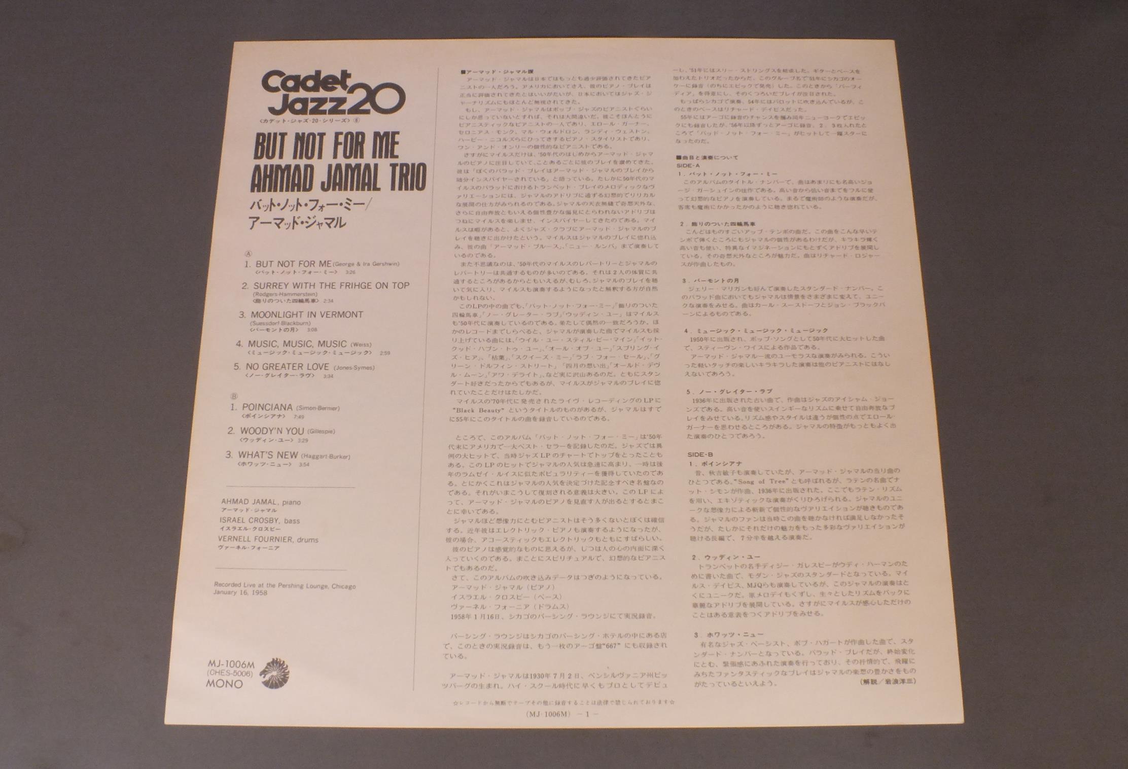 AHMAD JAMAL TRIOアーマッド・ジャマル/BUT NOT FOR MEバット・ノット・フォー・ミー MJ1006M 製造国:日本盤 / Media:LP外観:EX盤の状態:EX+ 価格(税込):¥990(売約済) 送料 7inch:定形外郵便 360円~LP:定形外郵便 660円~送料は、注文の最終画面で確認頂けます。 > > AHMAD JAMAL TRIO/BUT NOT FOR ME 外観 (EX)特記事項:ヘリスレ有り外観EXの共通説明:ダメージが限定的。中古品としては保存状態がよい方。シミ、ヨゴレ、スレ 少し~軽度。 盤の状態 (EX+)特記事項:薄いスリキズ・スレ少し。一見してきれいな状態です。盤EX+の共通説明:盤面の極薄いスリキズ、スレ少し程度 音に出そうなものは無いように見える(極軽微なソフトティック音は除く)。 Tweet それぞれの画像をクリックすると、大きい写真が見られます こちらの商品もお勧めです 770円 SINGERS UNLIMITEDシンガーズ・アンリミテッド / CAPELLAア・カペラ 990円 SIDNEY DEPARIS etc / COMMODORE SHOW CASEコモドア・ショーケース 1,210円 RAY BROWN & MILT JACKSONレイ・ブラウンとミルト・ジャクソン / BROWN & JACKSON 1,210円 PHIL WOODS & GENE QUILL QUINTETフィル・アンド・クイル5重奏団 / PHIL & QUILL WITH PRESTIGEフィル・アンド・クイル 1,650円 MODERN JAZZ QUARTETモダン・ジャズ・カルテット / CONCORDEコンコルド・デラックス 770円 SADAO WATANABE渡辺貞夫 / MY DEAR LIFEマイ・ディア・ライフ 1,210円 ERROLL GARNERエロール・ガーナー / CONCERT BY THE SEACONCERT BY THE SEA 1,320円 GATO BARBIERIガトー・バルビエリ / EL PAMPEROエル・パンペーロ