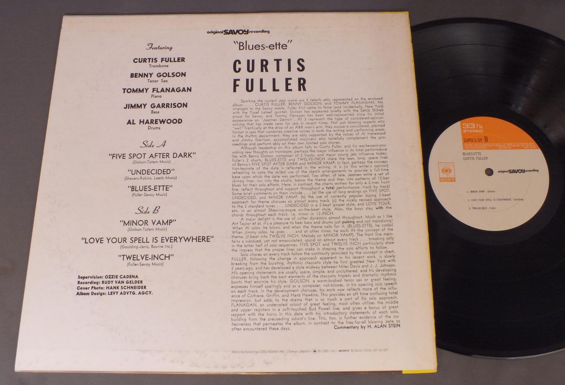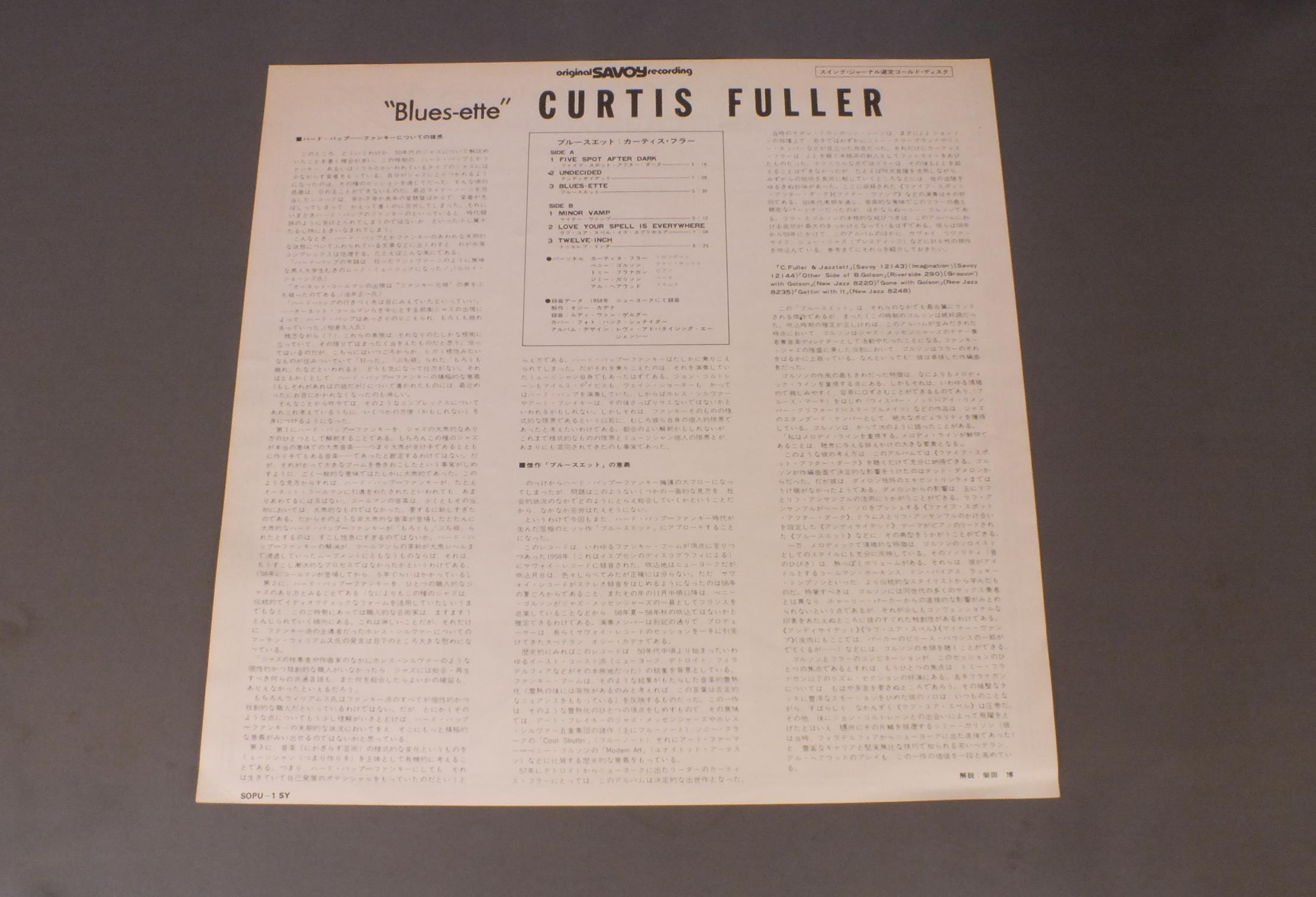 CURTIS FULLERカーティス・フラー/BLUES - ETTEブルースエット SOPU1SY 製造国:日本盤 / Media:LP外観:EX-盤の状態:EX+ 価格(税込):¥1,991(売約済) 送料 7inch:定形外郵便 360円~LP:定形外郵便 660円~送料は、注文の最終画面で確認頂けます。 > > CURTIS FULLER/BLUES - ETTE 外観 (EX-)特記事項:ヘリスレ有り。ジャケ表面にシミ。外観EX-の共通説明:ダメージ軽度~多少。 中古品としては普通の状態。シミ、ヨゴレ、スレなど軽く~多少。 盤の状態 (EX+)特記事項:極薄いスリキズ・スレ少し。一見してきれいな状態です。盤EX+の共通説明:盤面の極薄いスリキズ、スレ少し程度 音に出そうなものは無いように見える(極軽微なソフトティック音は除く)。 Tweet それぞれの画像をクリックすると、大きい写真が見られます こちらの商品もお勧めです 660円 JACQUES LOUSSIERジャック・ルーシエ・トリオ / PLAY BACH VOL.4プレイ・バッハ 第4集 770円 BUDDY RICHバディ・リッチ / DIFFERENT DRUMMERディファレント・ドラマー 1,980円 MIROSLAV VITOUSミロスラフ・ヴィトウス / INFINITE SEARCH限りなき探究 1,650円 ALBERT AYLERアルバート・アイラー / VOLUME 1ラスト・レコーディング VOL1 1,210円 OSCAR PETERSONオスカー・ピーターソン / BLUES ETUDEジャズ・ピアノの真髄 660円 CAL TJADERカル・ジェイダー / SHINING SEAシャイニング・シー 1,210円 BUD POWELL TRIOバド・パウエル・トリオ / ROOST SESSION BEST 6-VOL.1バド・パウエルの芸術 2,200円 TADAO HAYASHI林忠男 / LYRAリラ
