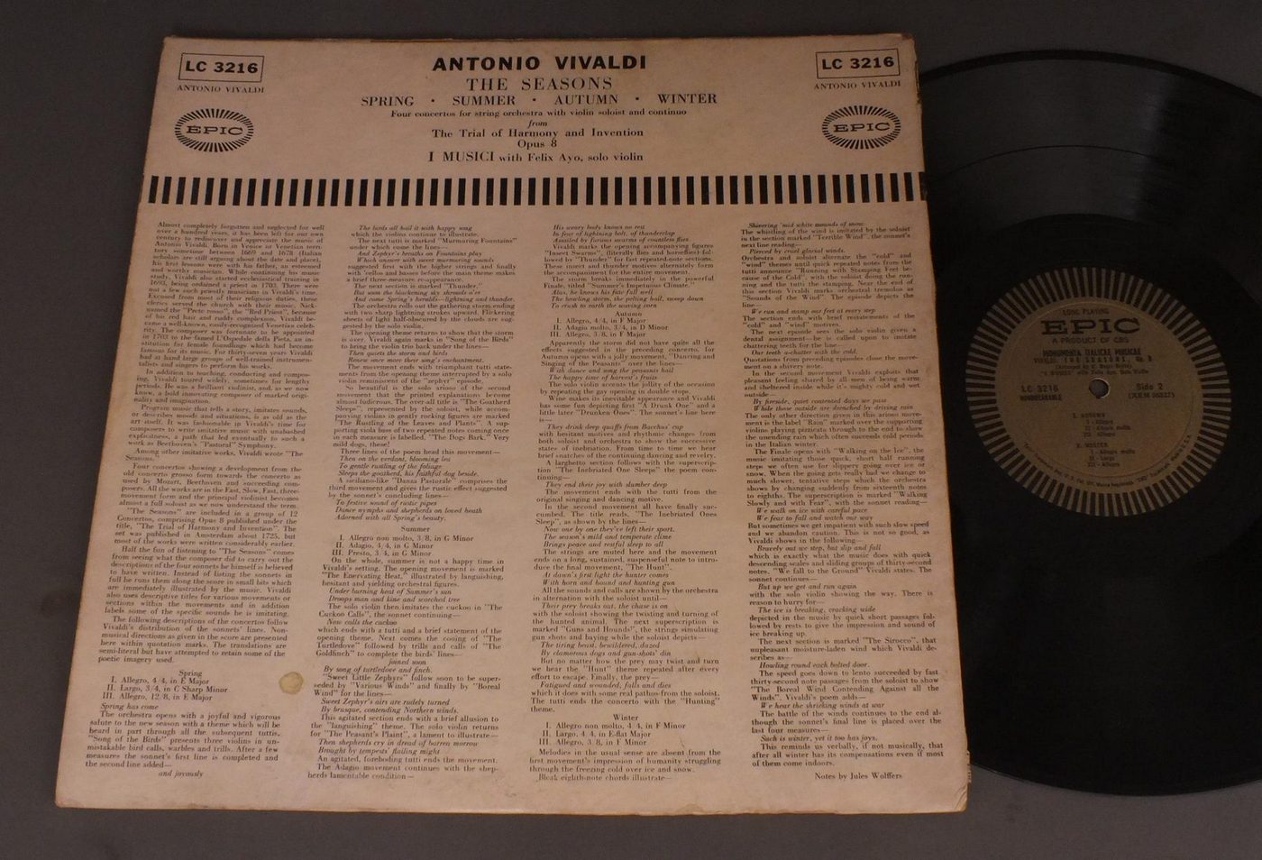 I MUSICI WITH AYO/VIVALDI - SEASONS. LC3216 製造国:米国盤 / Media:LP外観:VG-盤の状態:EX- 価格(税込):¥330(売約済) 送料 7inch:定形外郵便 360円~LP:定形外郵便 660円~送料は、注文の最終画面で確認頂けます。 > > I MUSICI WITH AYO/VIVALDI - SEASONS. 外観 (VG-)特記事項:背や上ヘリに割れ大。ジャケ表面によごれ。外観VG-の共通説明:一見してきれいでは無いが、まだ形は整っている。 盤の状態 (EX-)特記事項:薄いスリキズ・細かい表面スレ軽くある感じです。プチ出そうな所は少し。軽微なものが中心の様子です。盤EX-の共通説明:盤面のスリキズが多少有り。音に出そうなものは殆ど無いように見える~さほど気にならないぐらいの軽いプチ数カ所程度。 Tweet それぞれの画像をクリックすると、大きい写真が見られます こちらの商品もお勧めです 1,760円 MICHEL PIGUET-COLIN TILNEY / C.P.E.BACH-SONATEN FUR OBOE UND CEMBALO 2,640円 LASALLE-QUARTETT / BEETHOVEN STEICHQUARTETT 990円 RAFAEL DRUIAN-JOHN SIMMS / IVES-SONATAS FOR VIOLIN&PIANO 990円 FINE ARTS QUARTET / BEETHOVEN QUARTET 1,540円 MUNCHINGER - STUTTGART CHAMBER ORCH. / MOZART - LES PETITS RIENS etc 1,430円 HEINZ HOLLIGER-PETER MAAG / VIRTUOSE OBOENKONZERTE 2,860円 GUENTHER WEISSENBORN / TELEMANN-DER GEDULDIGE SOKRATES 990円 CLASSIC SQ / MOZART-THREE FLUTE QUARTETS