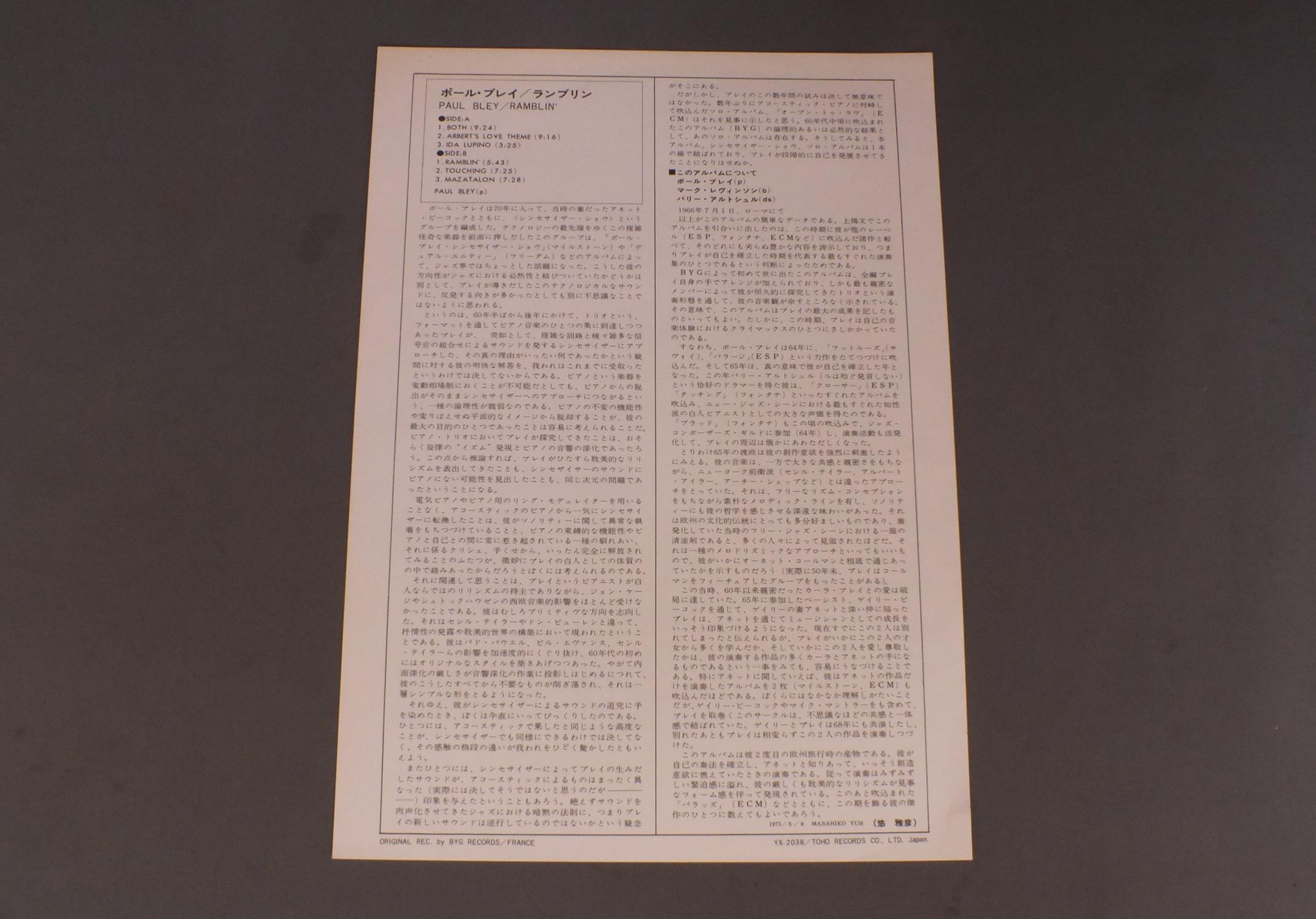 PAUL BLEYポール・ブレイ/RAMBLIN`ランブリン YX2038 製造国:日本盤 / Media:LP外観:EX盤の状態:EX+ 価格(税込):¥2,327(売約済) 送料 7inch:定形外郵便 360円~LP:定形外郵便 660円~送料は、注文の最終画面で確認頂けます。 > > PAUL BLEY/RAMBLIN` 外観 (EX)特記事項:表ジャケ上ヘリ付近に日焼け感有り。外観EXの共通説明:ダメージが限定的。中古品としては保存状態がよい方。シミ、ヨゴレ、スレ 少し~軽度。 盤の状態 (EX+)特記事項:薄いスリキズ・スレ少し。一見してきれいな状態です。盤EX+の共通説明:盤面の極薄いスリキズ、スレ少し程度 音に出そうなものは無いように見える(極軽微なソフトティック音は除く)。 Tweet それぞれの画像をクリックすると、大きい写真が見られます こちらの商品もお勧めです 1,210円 MODERN JAZZ QUARTET + NEW YORK CHAMBER SYMPHONYMJQ + ニューヨーク・チェンバー・シンフォニー / THREE WINDOWSスリー・ウインドウズ 1,650円 NORIO MAEDA前田憲男 / SOUND IN VICTRONSOUND IN VICTRON 1,320円 RICHIE COLEリッチー・コール / ALIVE !アライヴ ! 660円 QUINCY JONES & BANDクインシー・ジョーンズ / I DIG DANCERSアイ・ディグ・ダンサーズ 1,650円 MASARU IMADA今田勝 / DAY IN THE PARADISEコーラルの涙 1,210円 BUD FREEMAN`S SUMMA CUM LAUDE ORCH.バド・フリーマンズ・スマ・カム・ロード・オーケストラ / CHICAGO AUSTIN HIGH SCHOOL JAZZ IN HI-FIシカゴ・オースチン・ハイスクール・ジャズ 3,300円 EDDIE CONDON ALL STARSエディ・コンドン・オール・スターズ / EDDIE CONDON ALL STARS 1945 5LP BOX SETエディ・コンドン・オール・スターズ1945 5枚組 990円 CHARLIE PARKERチャーリー・パーカー / CHARLIE PARKER ON SAVOY VOL6チャーリー・パーカー・オン・サヴォイVOL6