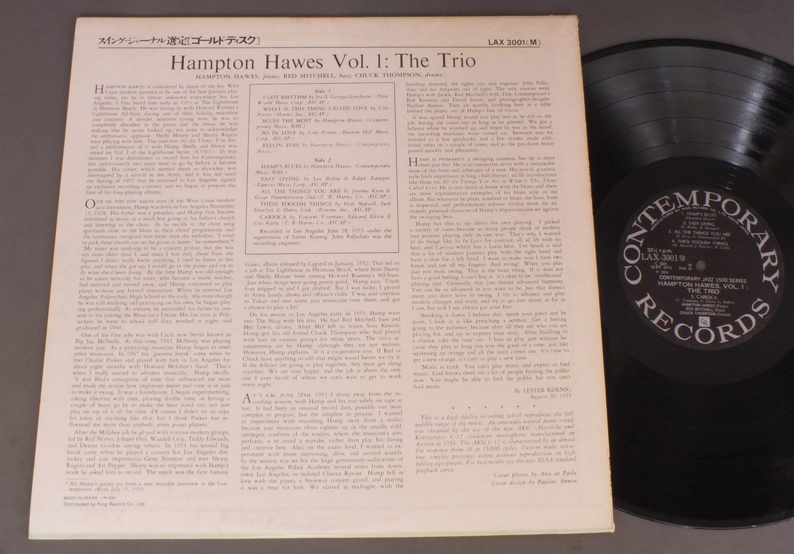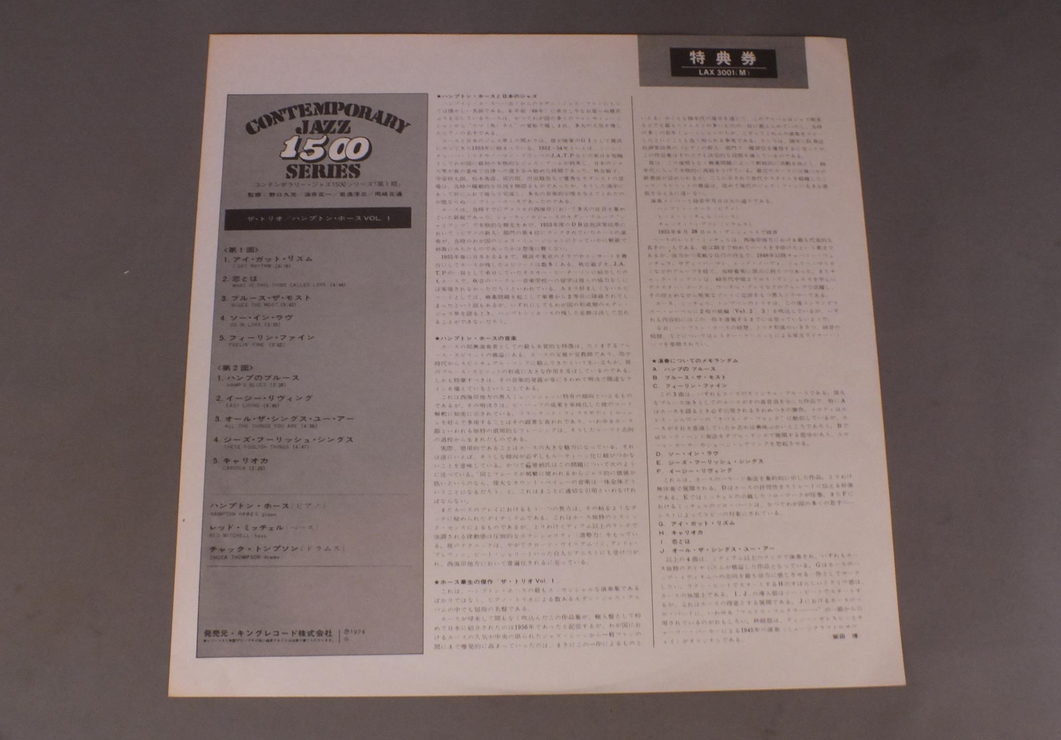 HAMPTON HAWESハンプトン・ホーズ/HAMPTON HAWES. VOL1 : THE TRIOハンプトン・ホーズVOL1 - ザ・トリオ LAX3001 製造国:日本盤 / Media:LP外観:EX盤の状態:EX 価格(税込):¥880(売約済) 送料 7inch:定形外郵便 360円~LP:定形外郵便 660円~送料は、注文の最終画面で確認頂けます。 > > HAMPTON HAWES/HAMPTON HAWES. VOL1 : THE TRIO 外観 (EX)特記事項:ジャケ表面左上に、シールの剥がし跡。外観EXの共通説明:ダメージが限定的。中古品としては保存状態がよい方。シミ、ヨゴレ、スレ 少し~軽度。 盤の状態 (EX)特記事項:薄いスリキズ・スレ軽くある感じ。軽微なものの様子です。盤EXの共通説明:盤面のスリキズが薄いものが少し~軽度 音に出そうなものは無いように見える(軽微なソフトティック音は除く)。 Tweet それぞれの画像をクリックすると、大きい写真が見られます こちらの商品もお勧めです 770円 GEORGE LEWISジョージ・ルイス / IN TOKYO1963年8月都響厚生年金会館ライブ 660円 JACQUES LOUSSIERジャック・ルーシエ・トリオ / PLAY BACH VOL.4プレイ・バッハ 第4集 440円 HERB ALPERT & TIJUANA BRASS / BRASS ARE COMIN` 1,320円 DOLLAR BRANDダラー・ブランド / AFRICAN PIANOアフリカン・ピアノ 990円 HERBIE MANNハービー・マン / GLORY OF LOVEグローリー・オブ・ラヴ 1,650円 KEITH JARRETTキース・ジャレット / FACING YOUフェイシング・ユー 1,210円 OSCAR PETERSONオスカー・ピーターソン / BLUES ETUDEジャズ・ピアノの真髄 1,210円 JIMMY SMITHジミー・スミス / PORTUGUESE SOULポルトガル・ソウル