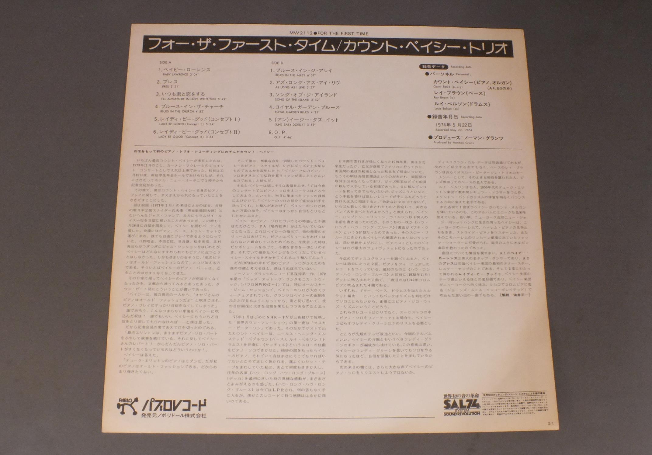 COUNT BASIE & RAY BROWN & LOUIS BELLSONカウント・ベイシー・トリオ/FOR THE FIRST TIMEフォー・ザ・ファースト・タイム NW2112 製造国:日本盤 / Media:LP外観:EX盤の状態:EX- 価格(税込):¥990(売約済) 送料 7inch:定形外郵便 360円~LP:定形外郵便 660円~送料は、注文の最終画面で確認頂けます。 > > COUNT BASIE & RAY BROWN & LOUIS BELLSON/FOR THE FIRST TIME 外観 (EX)特記事項:シミ有り。外観EXの共通説明:ダメージが限定的。中古品としては保存状態がよい方。シミ、ヨゴレ、スレ 少し~軽度。 盤の状態 (EX-)特記事項:薄いスリキズ・細かい表面スレ軽くある感じ。全体的には殆どが軽微なものの様子です。盤EX-の共通説明:盤面のスリキズが多少有り。音に出そうなものは殆ど無いように見える~さほど気にならないぐらいの軽いプチ数カ所程度。 Tweet それぞれの画像をクリックすると、大きい写真が見られます こちらの商品もお勧めです 1,320円 CHARIE BYRD - HERB ELLIS - BARNY KESSELチャーリー・バード - ハーブ・エリス - バーニー・ケッセル / GREAT GUITEARS 2グレート・ギター 2 990円 BILL HOLMANビル・ホルマン / BIG BAND IN A JAZZ ORBITビッグ・バンド・イン・ア・ジャズ・オービット 770円 CHARLIE PARKERチャーリー・パーカー / CHARLIE PARKER ON SAVOY VOL7チャーリー・パーカー・オン・サヴォイVOL7 1,980円 MIROSLAV VITOUSミロスラフ・ヴィトウス / INFINITE SEARCH限りなき探究 770円 TEDDY WILSONテディ・ウイルソン / NOBLE ART OF TEDDY WILSONノーブル・アート・オブ・テディ・ウイルソン 770円 TERUMASA HINO日野皓正 / DOUBLE RAINBOWダブル・レインボー 1,320円 PAUL WINTER SEXTETポール・ウィンター・セクステット / JAZZ MEETS THE FOLK SONG 60s ISUUEフォーク・モダン・ジャズ ペラジャケ 880円 EUGENE CICEROオイゲン・キケロ / 3 GREAT ARTISTSスリー・グレイト・アーティスト
