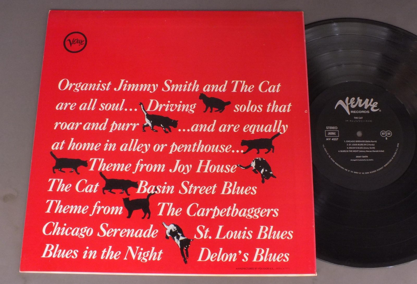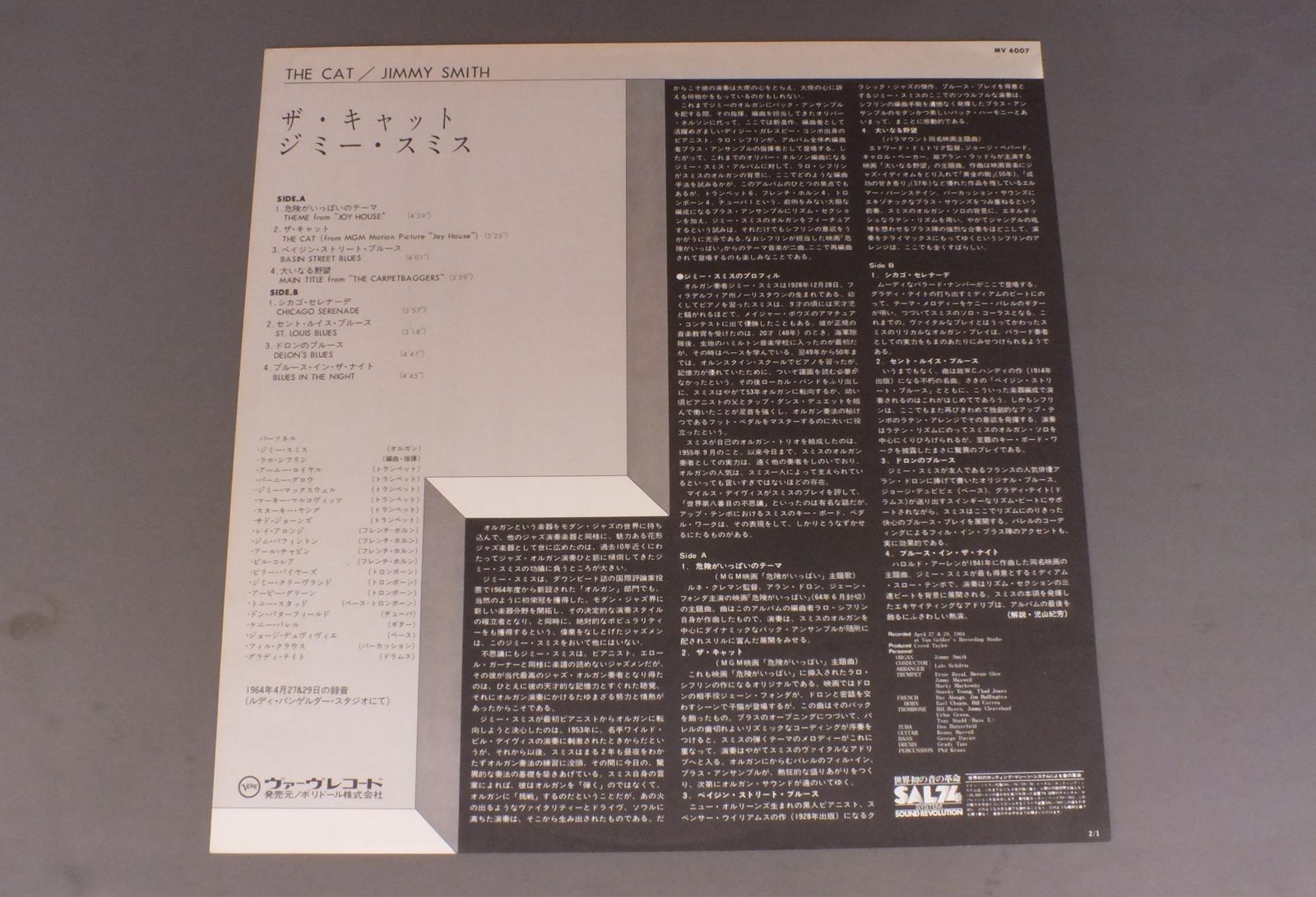 JIMMY SMITHジミー・スミス/CATキャット MV4007 製造国:日本盤 / Media:LP外観:EX盤の状態:EX+ 価格(税込):¥2,097(売約済) 送料 7inch:定形外郵便 360円~LP:定形外郵便 660円~送料は、注文の最終画面で確認頂けます。 > > JIMMY SMITH/CAT 外観 (EX)特記事項:ヘリスレ有り。外観EXの共通説明:ダメージが限定的。中古品としては保存状態がよい方。シミ、ヨゴレ、スレ 少し~軽度。 盤の状態 (EX+)特記事項:極薄いスリキズ・スレ少し。一見してきれいな状態です。盤EX+の共通説明:盤面の極薄いスリキズ、スレ少し程度 音に出そうなものは無いように見える(極軽微なソフトティック音は除く)。 Tweet それぞれの画像をクリックすると、大きい写真が見られます こちらの商品もお勧めです 990円 RICHIE COLEリッチー・コール / ALIVE !アライヴ ! 1,320円 JACKIE McLEAN QUINTETジャッキー・マクリーン・クインテット / JACKIE McLEAN QUINTETJACIE McLEAN QUINTET 880円 HARRIS SIMON GROUPハリス・サイモン・グループ / NEW YORK CONNECTIONニューヨーク・コネクション 1,210円 ERIC DOLPHYエリック・ドルフィー / AT THE FIVE SPOTアット・ザ・5・スポットVOL2 770円 ANDREAS VOLLENWEIDERアンドレアス・フォーレンヴァイダー / WHITE WINDSホワイト・ウィンズ 770円 RONNELL BRIGHTロンネル・ブライト / BRIGHT FLIGHTブライト・フライ 1,320円 SADAO WATANABE & CHARLIE MARIANO渡辺貞夫&チャーリー・マリアーノ / IBERIAN WALTZイベリアン・ワルツ 770円 BUDDY GRECOバディ・グレコ / BIG BAND&BALLADSビッグ・バンド・アンド・バラード