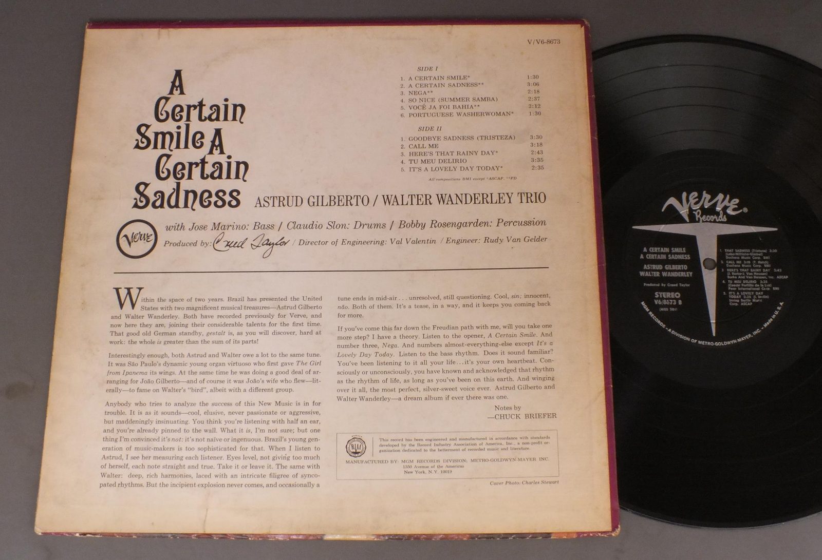 ASTRUD GILBERTO - WALTER WANDERLEY/CERTAIN SMILE A CERTAIN SADNESS V6 8673 製造国:米国盤 / Media:LP外観:VG+盤の状態:EX- 価格(税込):¥1,650(売約済) 送料 7inch:定形外郵便 360円~LP:定形外郵便 660円~送料は、注文の最終画面で確認頂けます。 > > ASTRUD GILBERTO - WALTER WANDERLEY/CERTAIN SMILE A CERTAIN SADNESS 外観 (VG+)特記事項:ヘリスレ有り。裏ジャケにシミ。外観VG+の共通説明:ダメージやや有り。シミ、ヨゴレ、スレなど多少~やや多め。 盤の状態 (EX-)特記事項:薄いスリキズ・細かい表面スレ軽くある感じ。全体的には殆どが軽微なものの様子です。盤EX-の共通説明:盤面のスリキズが多少有り。音に出そうなものは殆ど無いように見える~さほど気にならないぐらいの軽いプチ数カ所程度。 Tweet それぞれの画像をクリックすると、大きい写真が見られます こちらの商品もお勧めです 550円 JEANETTE MacDONALD & NELSON EDDY / SAME TITLE 1,320円 BING CROSBY / BING CROSBY 770円 BOB CROSBY / THE HITS OF BOB CROSBY`S BOBCAST 770円 LARRY CARR / SINGS VERSE & CHORUS 550円 BING CROSBY / EARLY BING CROSBY PLUS THE BING CROSBY SHOW 990円 RICHARD PERRY / SWING 550円 MEL TORME / `ROUND MIDNIGHT 3,850円 LUANN SIMMS / AT SEPARATE TABLES (AUTOGRAPHED)AT SEPARATE TABLES サイン付