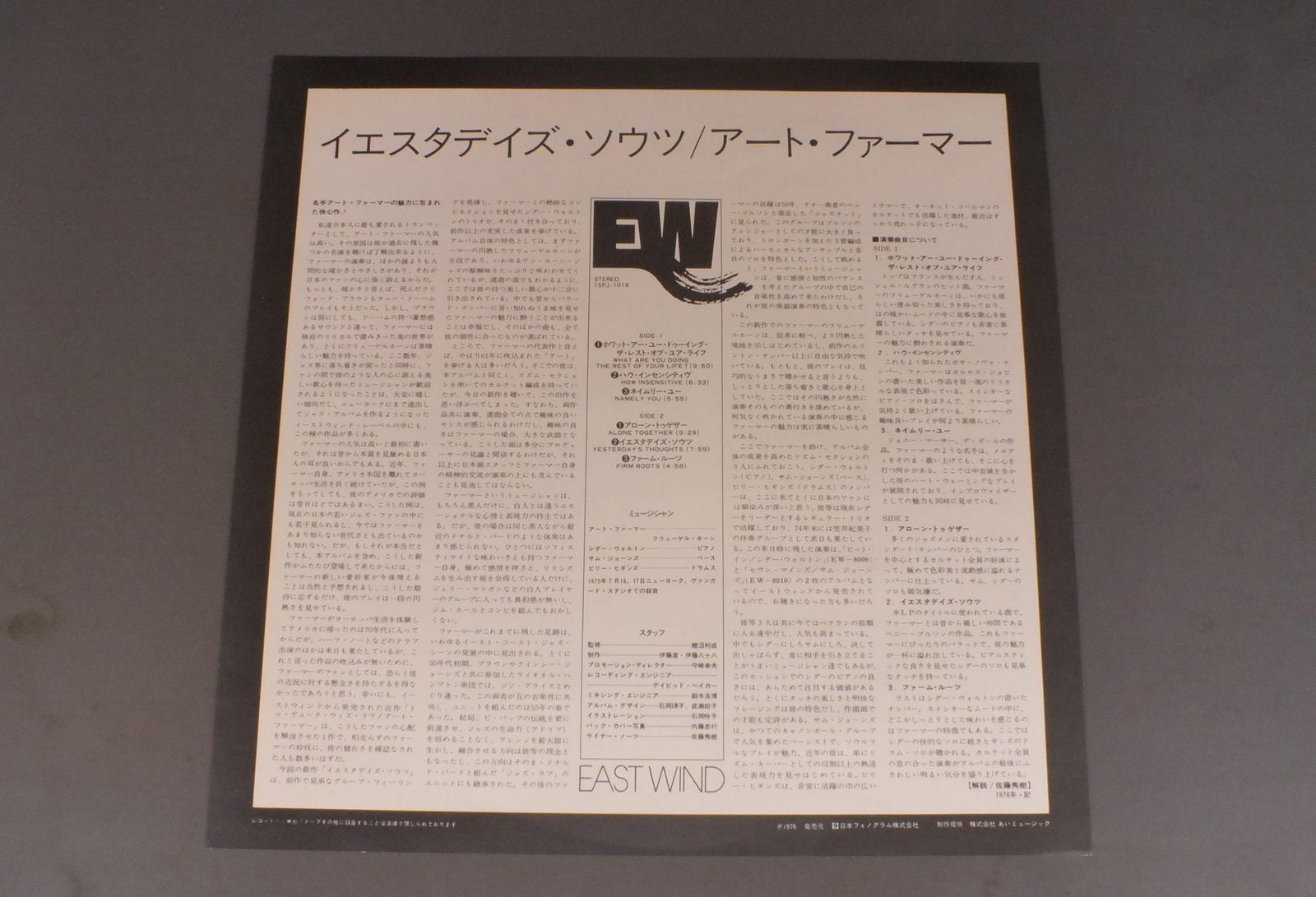 ART FARMERアート・ファーマー/YESTERDAY`S THOUGHTSイエスタデイズ・ソウツ 15PJ1018 製造国:日本盤 / Media:LP外観:EX盤の状態:EX+ 価格(税込):¥2,234(売約済) 送料 7inch:定形外郵便 360円~LP:定形外郵便 660円~送料は、注文の最終画面で確認頂けます。 > > ART FARMER/YESTERDAY`S THOUGHTS 外観 (EX)特記事項:シミ有り外観EXの共通説明:ダメージが限定的。中古品としては保存状態がよい方。シミ、ヨゴレ、スレ 少し~軽度。 盤の状態 (EX+)特記事項:極薄いスリキズ・スレ少し。一見してきれいな状態です。盤EX+の共通説明:盤面の極薄いスリキズ、スレ少し程度 音に出そうなものは無いように見える(極軽微なソフトティック音は除く)。 Tweet それぞれの画像をクリックすると、大きい写真が見られます こちらの商品もお勧めです 1,210円 JACQUES LOUSSIERジャック・ルーシエ / GOLDEN PLAYS BACH DOUBLE DELUXEゴールデン・プレイ・バッハ - ダブル・デラックス 1,210円 HERBIE MANNハービー・マン / MEMPHIS UNDERGROUNDメンフィス・アンダーグラウンド 1,210円 ESQUIRE ALL STARS etc / FLYIN` ON A V-DISC (V-DISC ALL STAR JAZZ SESSIONS VOL2)フライン・オン・ア・Vディスク (Vディスク・オールスターズ第2集) 770円 TONY SCOTT QUINTETトニー・スコット・クワルテット / TONY SCOTT QUINTET 1,210円 FLETCHER HENDERSON & HIS ORCHESTRAフレッチャー・ヘンダーソン / FIRST IMPRESSIONS VOL1 (1924-1931)ファースト・インプレッションズ VOL1 (1924-1931) 770円 SADAO WATANABE渡辺貞夫 / CALIFORNIA SHOWERカリフォルニア シャワー 1,210円 SONY CLARK TRIOソニー・クラーク・トリオ / SAME TITLEソニー・クラーク・トリオ 660円 EDDIE HEYWOOD / TOUCH OF EDDIE HEYWOOD