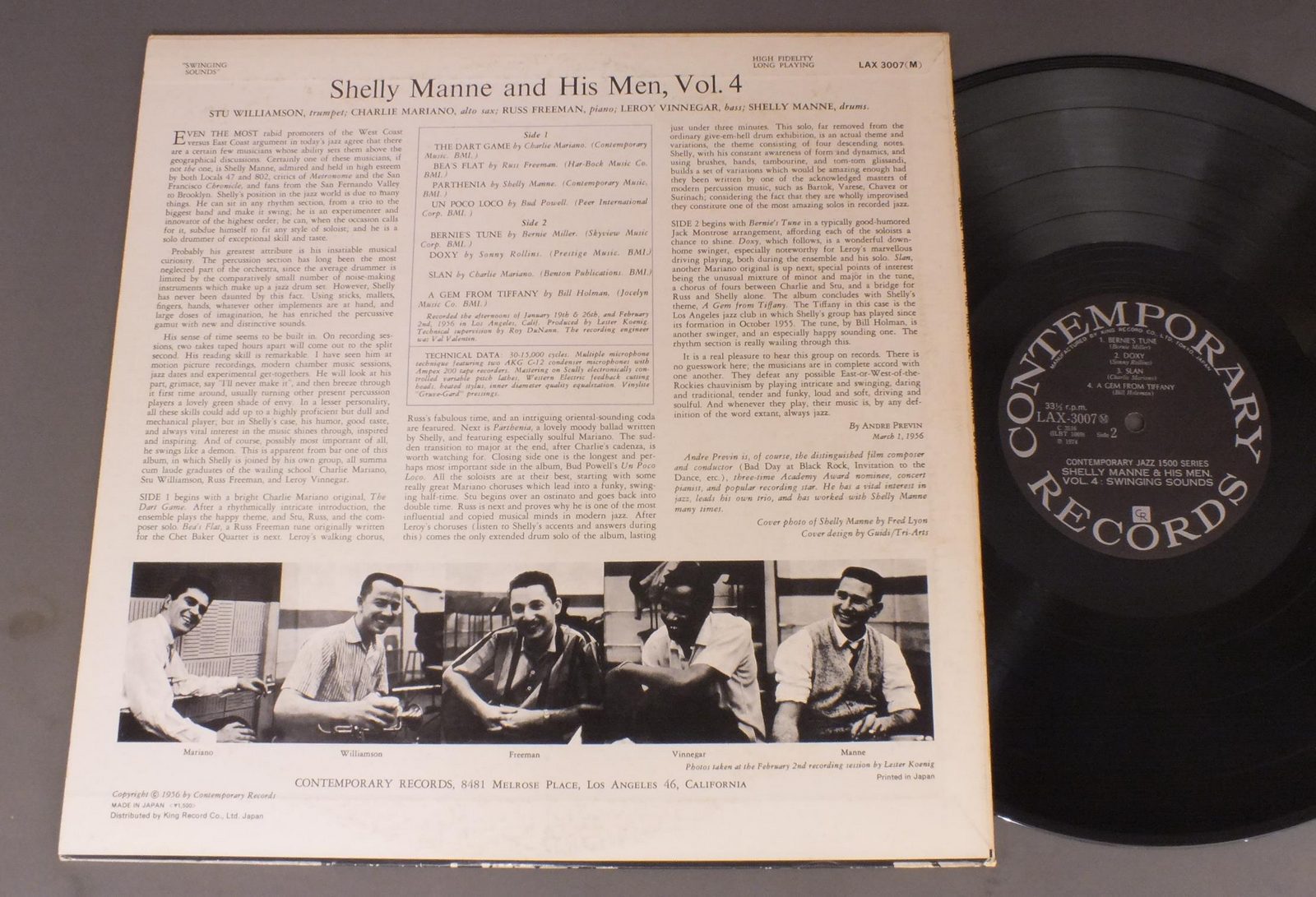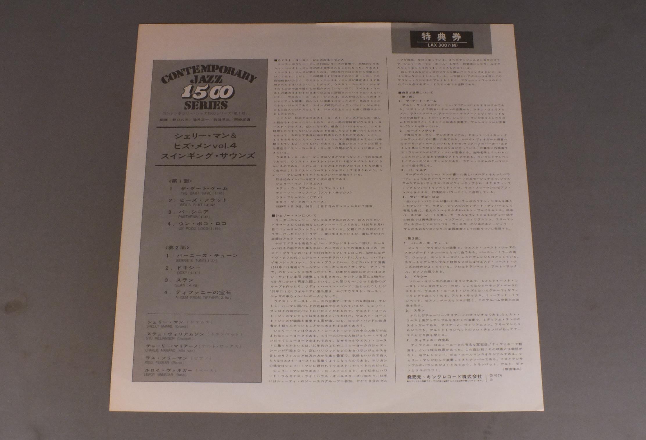 SHELLY MANNE & HIS MEN VOL4シェリー・マン&ヒズ・メン/SWINGING SOUNDSスインギング・サウンズ LAX3007 製造国:日本盤 / Media:LP外観:EX-盤の状態:EX- 価格(税込):¥990(売約済) 送料 7inch:定形外郵便 360円~LP:定形外郵便 660円~送料は、注文の最終画面で確認頂けます。 > > SHELLY MANNE & HIS MEN VOL4/SWINGING SOUNDS 外観 (EX-)特記事項:背スレやレコードリングスレ有り。シミ有り。外観EX-の共通説明:ダメージ軽度~多少。 中古品としては普通の状態。シミ、ヨゴレ、スレなど軽く~多少。 盤の状態 (EX-)特記事項:薄いスリキズ・細かい表面スレ軽くある感じです。プチ出そうな所は少し。軽微なものが中心の様子です。盤EX-の共通説明:盤面のスリキズが多少有り。音に出そうなものは殆ど無いように見える~さほど気にならないぐらいの軽いプチ数カ所程度。 Tweet それぞれの画像をクリックすると、大きい写真が見られます こちらの商品もお勧めです 990円 FRANCES FAYEフランセス・フェイ / CAUGHT IN THE ACTコート・イン・ジ・アクト 660円 JACQUES LOUSSIERジャック・ルーシェ / PLAY BACHプレイ・バッハ 990円 JOHN LEWISジョン・ルイス / EUROPEAN WINDOWSヨーロッパの窓 1,210円 ERROLL GARNERエロール・ガーナー / SERENADE TO LAURAセレナード・トゥ・ローラ 1,210円 THAD JONES & MEL LEWISサド・ジョーンズ&メル・ルイス・オーケストラ / POTPOURRIポプーリ 770円 ART TATUM AND HIS BANDアート・テイタム / FEATURING BIG JOETURNER JOE THOMAS EDMODHALL MARSHALL ROYALオール・スター・セッション 1,650円 DOLLAR BRANDダラー・ブランド / AFRICAN PIANOアフリカン・ピアノ 770円 RAY BAYANT TRIOレイ・ブライアント・トリオ / CON ALMAコン・アルマ
