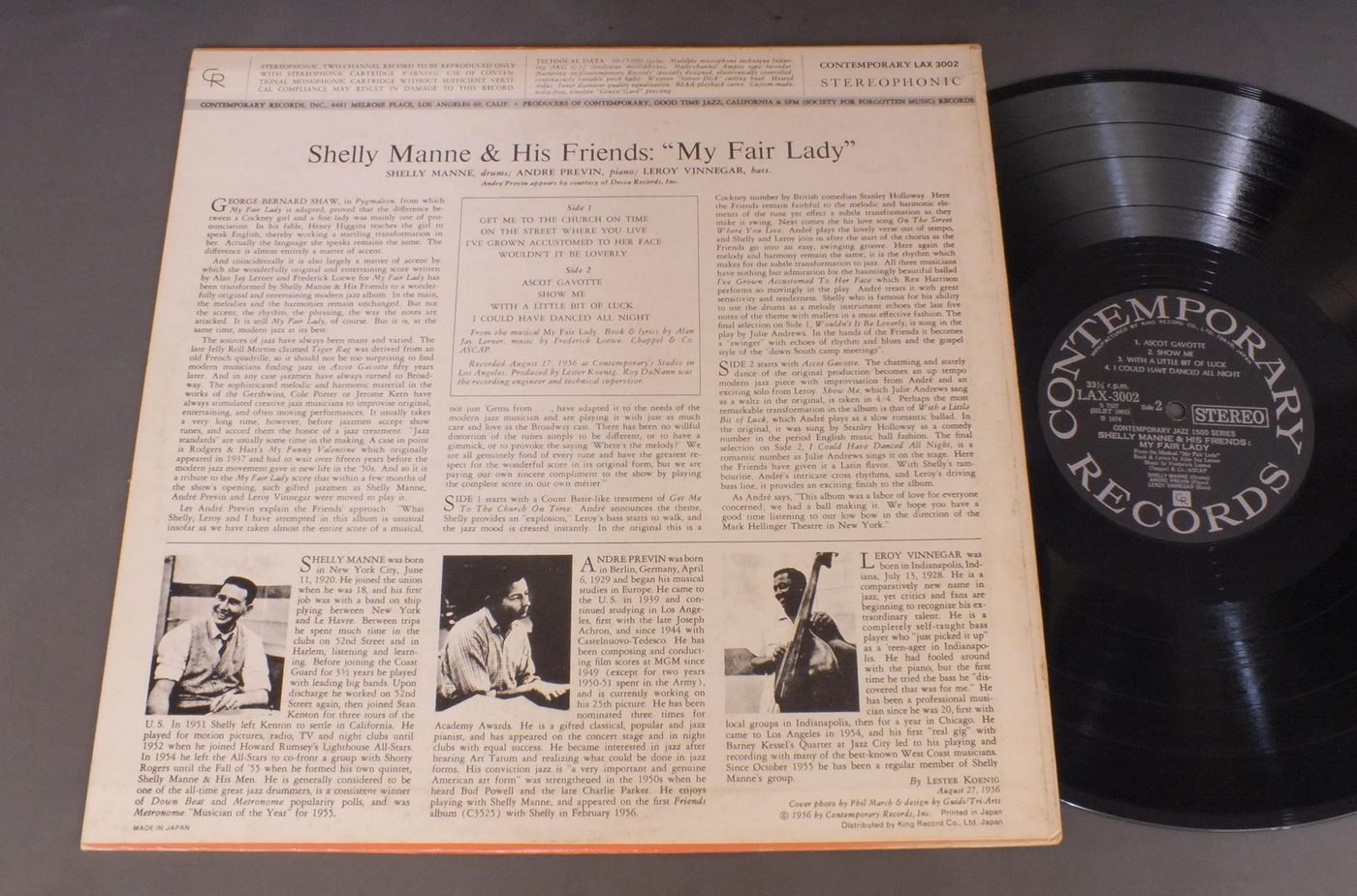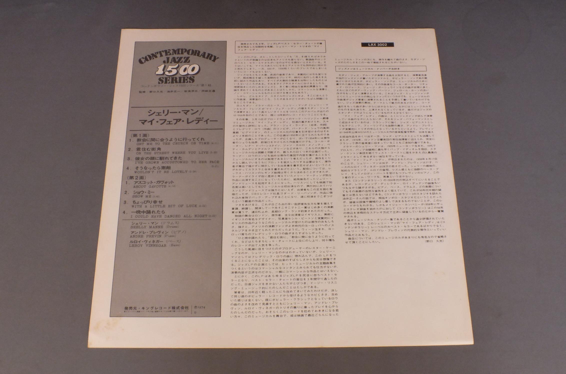 SHELLY MANNEシェリー・マン/MY FAIR LADYマイ・フェア・レディ LAX3002 製造国:日本盤 / Media:LP外観:EX-盤の状態:VG+ 価格(税込):¥880(売約済) 送料 7inch:定形外郵便 360円~LP:定形外郵便 660円~送料は、注文の最終画面で確認頂けます。 > > SHELLY MANNE/MY FAIR LADY 外観 (EX-)特記事項:裏ジャケにシミ外観EX-の共通説明:ダメージ軽度~多少。 中古品としては普通の状態。シミ、ヨゴレ、スレなど軽く~多少。 盤の状態 (VG+)特記事項:薄いスリキズ・細かいスレ軽度。プチ出そうな小キズ、線キズは数カ所で、全体的には軽微なものが殆どです。少し聴いてみましたが、音自体はしっかりクリアーに鳴っているようでした。盤VG+の共通説明:盤面にスリキズが多少~やや有り、音に出そうなものも多少ある。 Tweet それぞれの画像をクリックすると、大きい写真が見られます こちらの商品もお勧めです 1,210円 EARL HINESアール・ハインズ / SPONT ANEOUS EXPLORATIONSアール・ハインズ・ソロ・ピアノ 1,210円 ART FARMER AND THE ORCHESTRAアート・ファーマー楽団 / LISTEN TO ART FARMER AND THE ORCHESTRA 60s ISSUEアート・ファーマーの芸術 ペラジャケ 1,320円 KAZUMI WATANABE-STEVE GADD etc渡辺香津美-スティーヴ・ガッド 他 / TEO MACERO PRESENTS IMPRESSIONS OF VIRUSテオ・マセロ・プレゼンツ 復活の日の印象 1,210円 BUD POWELL TRIOバド・パウエル・トリオ / ROOST SESSION BEST 6-VOL.1バド・パウエルの芸術 770円 ART TATUM&HIS BANDアート・テイタム楽団 / ART TATUM & HIS SWINGSTERSアート・テイタム・オール・スター・セッション 770円 CHICK COREA etcチック・コリア 他 / ECM SPECIALECMスペシャル 770円 LOUIS ARMSTRONG & THE ALL-STARSルイ・アームストロングとオール・スターズ / SATCHMO ALL-STARS IN 1950サッチモ・オール・スターズ・イン 1950 1,320円 LOUIS ARMSTRONG & HIS ALL-STARSルイ・アームストロング・オールスターズ / PLAYS W.C.HANDYプレイズ・W.C.ハンディ