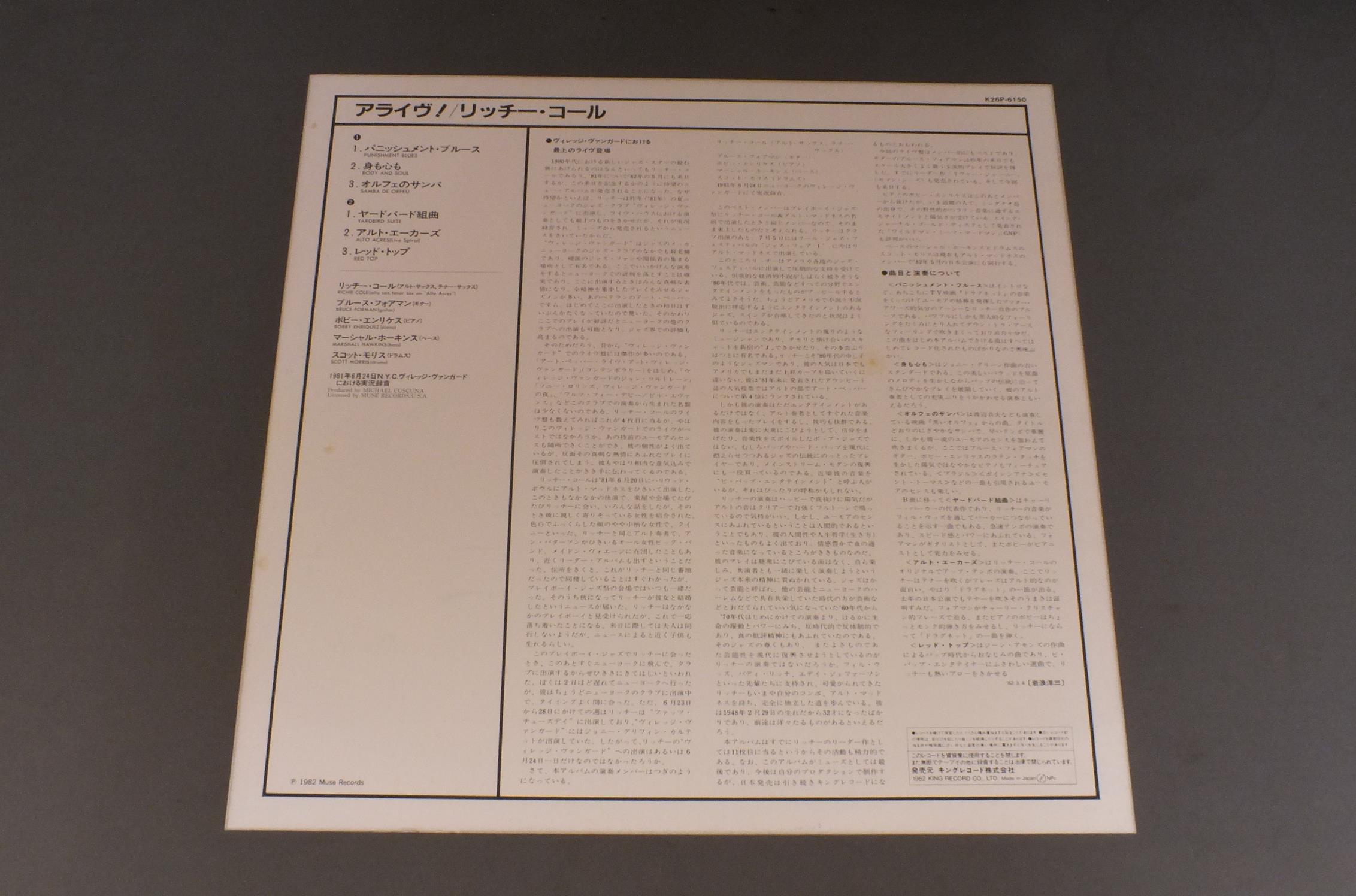 RICHIE COLEリッチー・コール/RICHIE COLE….ALIVE !アライヴ ! リッチー・コール K26P6150 製造国:日本盤 / Media:LP外観:EX盤の状態:EX+帯:EX+ 価格(税込):¥1,320(売約済) 送料 7inch:定形外郵便 360円~LP:定形外郵便 660円~送料は、注文の最終画面で確認頂けます。 > > RICHIE COLE/RICHIE COLE….ALIVE ! 外観 (EX)特記事項:特記なし。外観EXの共通説明:ダメージが限定的。中古品としては保存状態がよい方。シミ、ヨゴレ、スレ 少し~軽度。 盤の状態 (EX+)特記事項:極薄いスリキズ・スレ少し。一見してきれいな状態です。盤EX+の共通説明:盤面の極薄いスリキズ、スレ少し程度 音に出そうなものは無いように見える(極軽微なソフトティック音は除く)。 帯の状態 (EX+):特記なし。 Tweet それぞれの画像をクリックすると、大きい写真が見られます こちらの商品もお勧めです 1,210円 DEREK SMITHディレク・スミス / BLUESETTEブルースェット 990円 HERBIE MANNハービー・マン / GLORY OF LOVEグローリー・オブ・ラヴ 1,320円 SHIRO MICHI道志郎 / WONDERFUL WORLD OF ELECTONEエレクトーンの驚異 1,320円 JACKIE McLEAN QUINTETジャッキー・マクリーン・クインテット / JACKIE McLEAN QUINTETJACIE McLEAN QUINTET 1,210円 BUD FREEMAN`S SUMMA CUM LAUDE ORCH.バド・フリーマンズ・スマ・カム・ロード・オーケストラ / CHICAGO AUSTIN HIGH SCHOOL JAZZ IN HI-FIシカゴ・オースチン・ハイスクール・ジャズ 990円 FORCEフォース / SECOND FORCEセカンド・フォース 660円 MUGGSY SPANIER & HIS RAGTIMERSマグシー・スパニアと彼のラグタイマーズ / CHICAGO JAZZシカゴ・ジャズ 990円 YOSHIAKI MASUO増尾好秋 / SAILING WONDERセイリング・ワンダー