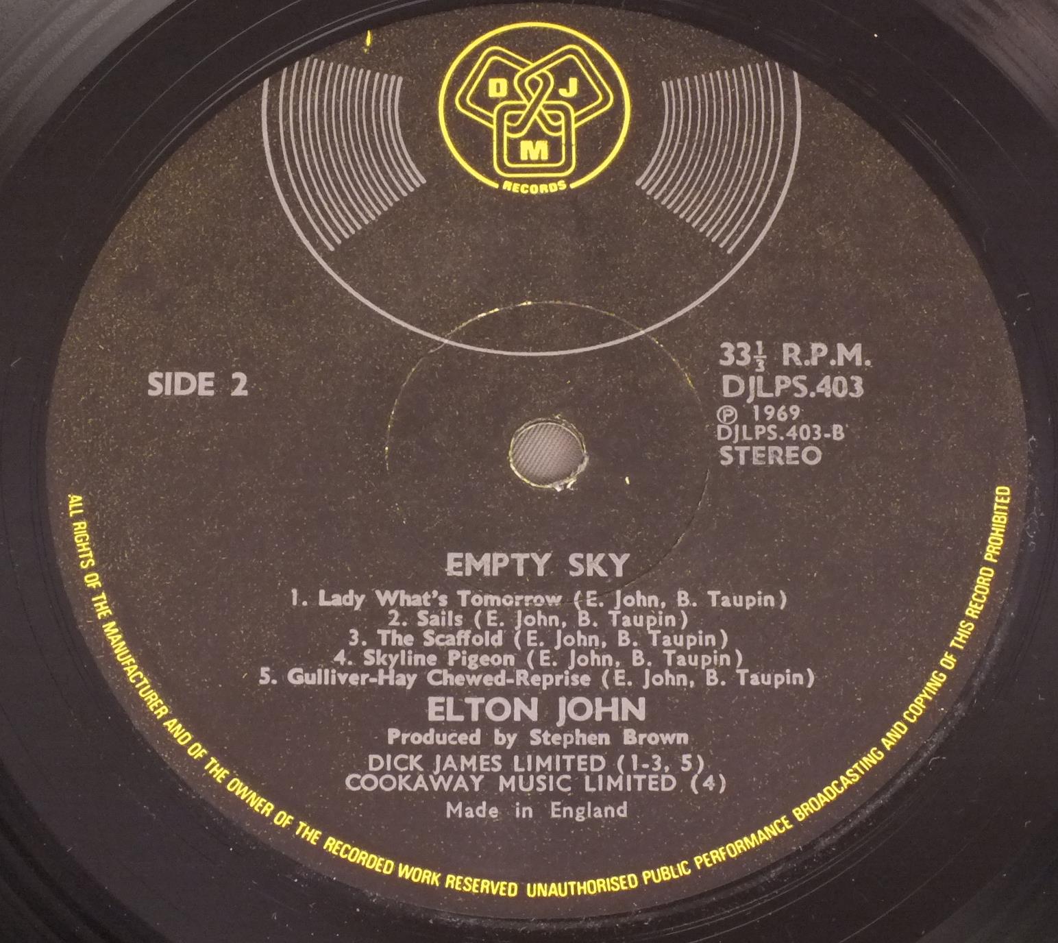 ELTON JOHN/EMPTY SKY DJLPS40 製造国:英国盤 / Media:LPMatrix:A2 B3外観:EX-盤の状態:EX 価格(税込):¥4,950(売約済) 送料 7inch:定形外郵便 360円~LP:定形外郵便 660円~送料は、注文の最終画面で確認頂けます。 > > ELTON JOHN/EMPTY SKY 外観 (EX-)特記事項:表ジャケの右上隅にステッカーの剥がし跡と左下の剥がれが残念ですが、表裏ジャケは全体的にヨレ感の無い大変しっかりした状態。よごれもあまり無い感じです。見開きに薄いシミが少し。外観EX-の共通説明:ダメージ軽度~多少。 中古品としては普通の状態。シミ、ヨゴレ、スレなど軽く~多少。 盤の状態 (EX)特記事項:薄いスリキズ・スレ軽く有る感じ。殆どが軽微なものの様子で、きれいな印象。曲間など、静かなところを中心に聴いて見ましたが、チリノイズ少ないきれいな再生具合でした。盤EXの共通説明:盤面のスリキズが薄いものが少し~軽度 音に出そうなものは無いように見える(軽微なソフトティック音は除く)。 Tweet それぞれの画像をクリックすると、大きい写真が見られます こちらの商品もお勧めです 7,150円 PAUL JONES / MY WAY MONO 4,950円 RORY GALLAGHER / STORY SO FAR 3,850円 VAN MORRISON / PERIOD OF TRANSITION 3,300円 HARRY NILSSON / LITTLE TOUCH OF SCHMILSSON 5,500円 JIM WEBB / SINGS JIM WEBB 3,850円 CAT STEVENCE / CATCH BUL AT FOUR 6,600円 RORY GALLAGHER / BLUE PRINT初回LBL 3,850円 TIM BACKLEY / LOOK AT THE FOOL