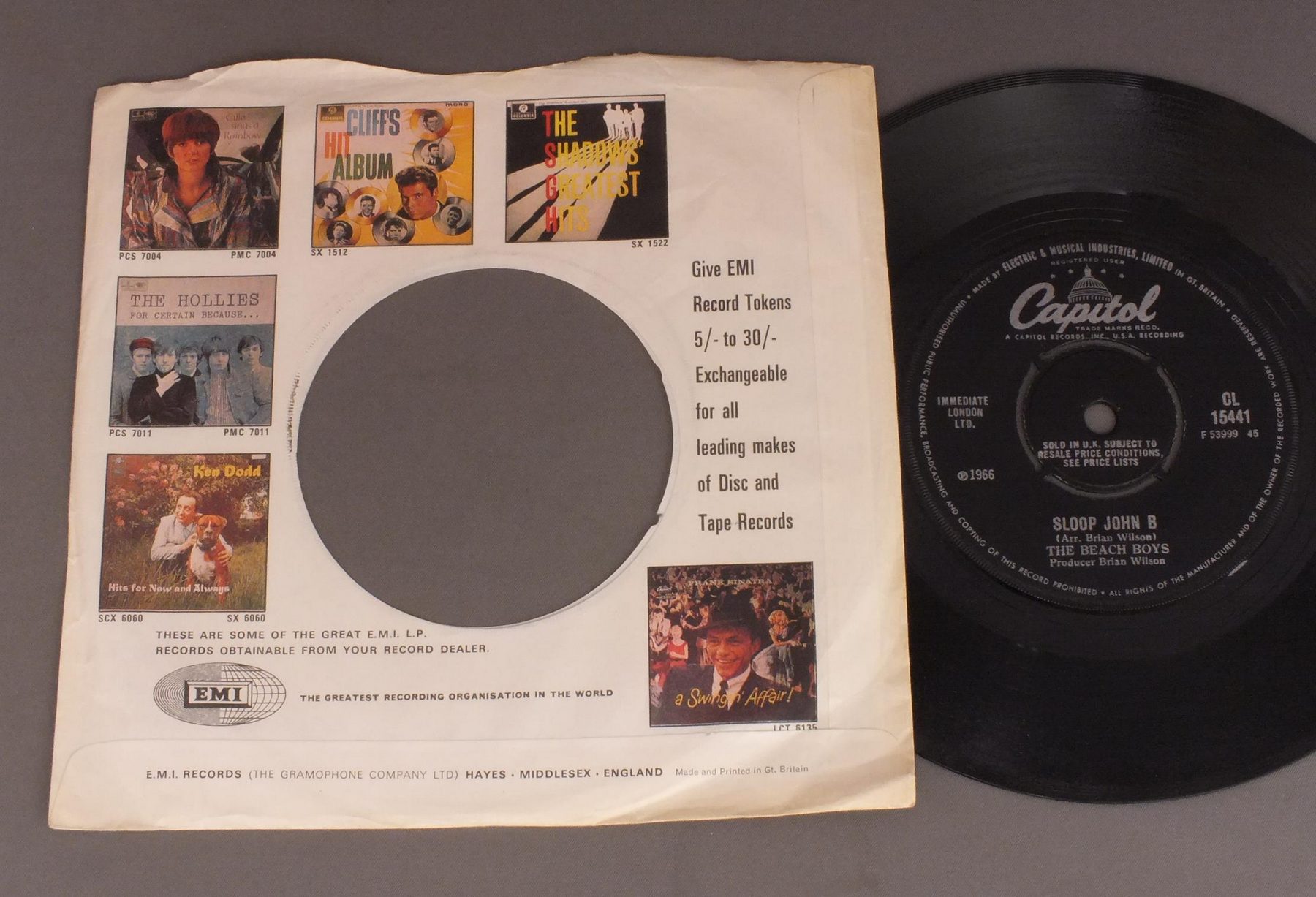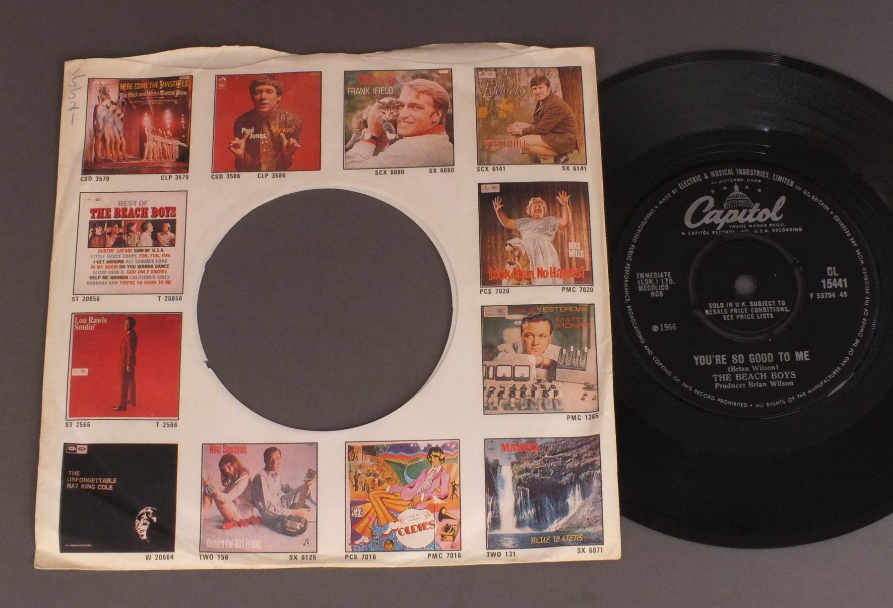 BEACH BOYS/SLOOP JOHN B CL15441 製造国:英国盤 / Media:7inchMatrix: -1 -1外観:EX盤の状態:EX 価格(税込):¥2,200(売約済) 送料 7inch:定形外郵便 360円~LP:定形外郵便 660円~送料は、注文の最終画面で確認頂けます。 > > BEACH BOYS/SLOOP JOHN B 外観 (EX)特記事項:EMIレーベルの広告スリーブ付き。ヨレやよごれ等は少ないです。外観EXの共通説明:ダメージが限定的。中古品としては保存状態がよい方。シミ、ヨゴレ、スレ 少し~軽度。 盤の状態 (EX)特記事項:薄いスリキズ・スレ軽くある感じ。ほとんどが軽微なものの様子です。曲間など、静かなところを中心にMONO針で聴いて見ましたが、チリプチ軽度で音もしっかり鳴っていました。盤EXの共通説明:盤面のスリキズが薄いものが少し~軽度 音に出そうなものは無いように見える(軽微なソフトティック音は除く)。 Tweet それぞれの画像をクリックすると、大きい写真が見られます こちらの商品もお勧めです