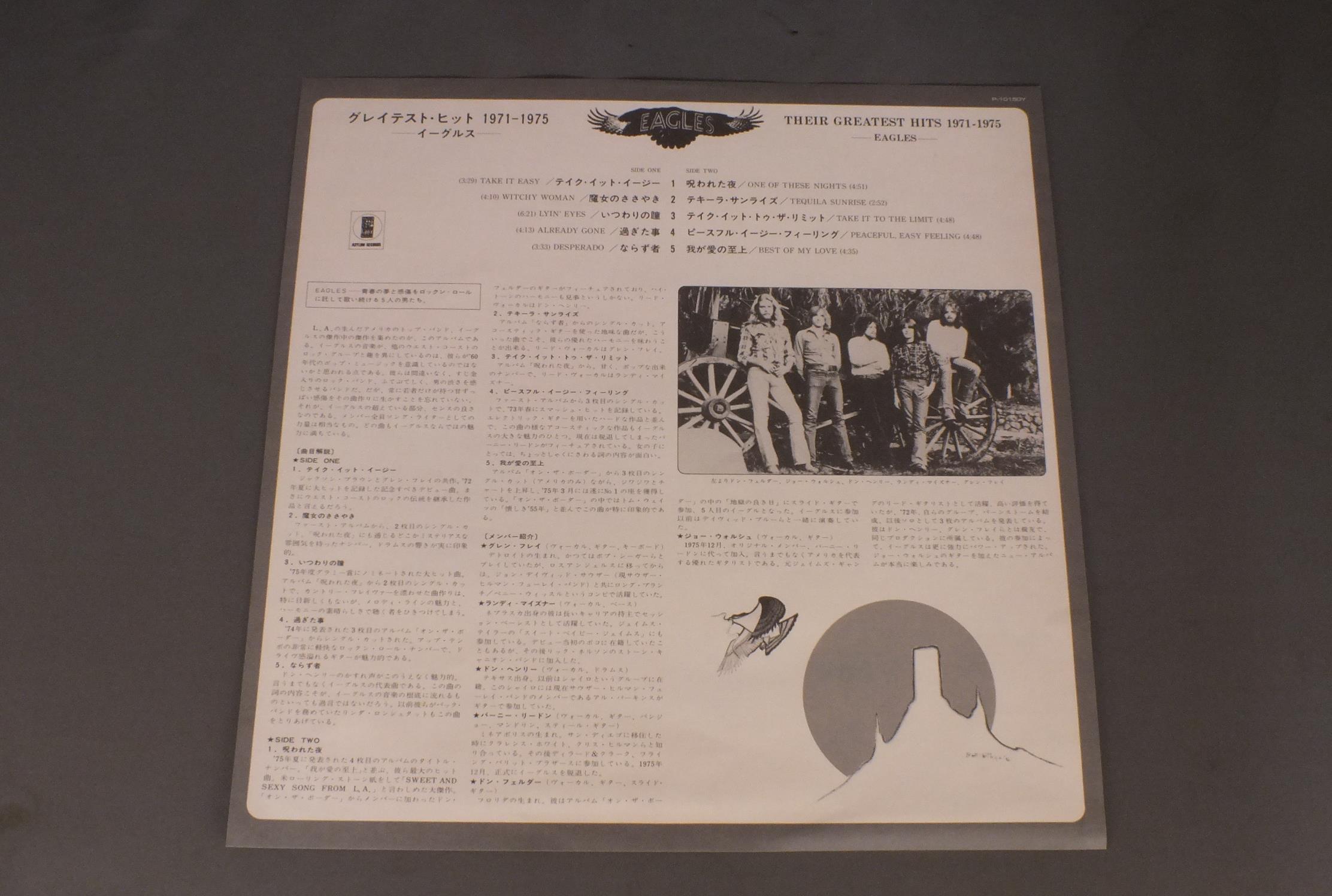 EAGLESイーグルズ/THEIR GREATEST HITS 1971-1975グレイテスト・ヒット1971-1975 P10150Y 製造国:日本盤 / Media:LP外観:EX+盤の状態:EX帯:EX 価格(税込):¥2,574(売約済) 送料 7inch:定形外郵便 360円~LP:定形外郵便 660円~送料は、注文の最終画面で確認頂けます。 > > EAGLES/THEIR GREATEST HITS 1971-1975 外観 (EX+)特記事項:特記なし。外観EX+の共通説明:中古としては美品、一見してきれいでダメージが軽微。シミ、ヨゴレ、スレ有っても僅か~少し。 盤の状態 (EX)特記事項:薄いスリキズ・スレ軽くある感じ。軽微なものの様子です。盤EXの共通説明:盤面のスリキズが薄いものが少し~軽度 音に出そうなものは無いように見える(軽微なソフトティック音は除く)。 帯の状態 (EX):特記なし。 Tweet それぞれの画像をクリックすると、大きい写真が見られます こちらの商品もお勧めです 770円 5TH DIMENSIONフィフス・ディメンション / THE BESTベスト 770円 SANTANAサンタナ / FESTIVALフェスティバル 1,320円 FIREFALLファイアフォール / LUNA SEA遥かなるルナ・シー 1,980円 CARSカーズ / SHAKE IT UPシェイク・イット・アップ 1,320円 SANTANAサンタナ / MOON FLAWERムーン・フラワー 1,210円 MOUNTAINマウンテン / FLOWERS OF EVILマウンテン・ライヴ 悪の華(フィルモアに咲いた悪の華) 1,210円 STYXスティクス / PARADISE THEATREパラダイス・シアター 990円 SANTANAサンタナ / AMIGOSアミーゴ !(同胞)