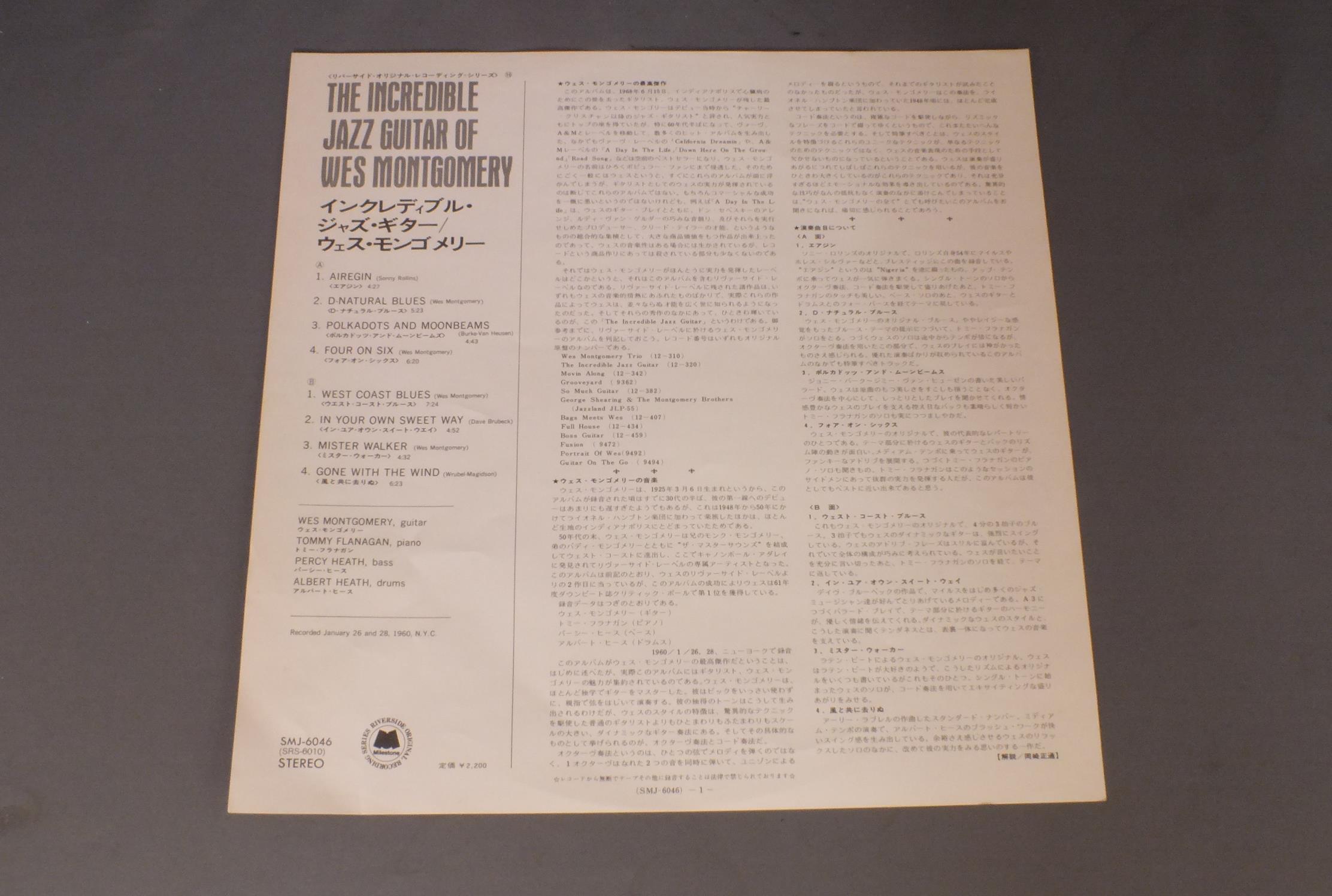 WES MONTGOMERYウェス・モンゴメリー/INCREDIBLE JAZZ GUITAR OF WES MONTGOMERYインクレディブル・ジャズ・ギター SMJ6046 製造国:日本盤 / Media:LP外観:EX-盤の状態:EX+ 価格(税込):¥990(売約済) 送料 7inch:定形外郵便 360円~LP:定形外郵便 660円~送料は、注文の最終画面で確認頂けます。 > > WES MONTGOMERY/INCREDIBLE JAZZ GUITAR OF WES MONTGOMERY 外観 (EX-)特記事項:ヘリスレやリングスレ有り。外観EX-の共通説明:ダメージ軽度~多少。 中古品としては普通の状態。シミ、ヨゴレ、スレなど軽く~多少。 盤の状態 (EX+)特記事項:極薄いスリキズ・スレ少し。一見してきれいな状態です。盤EX+の共通説明:盤面の極薄いスリキズ、スレ少し程度 音に出そうなものは無いように見える(極軽微なソフトティック音は除く)。 Tweet それぞれの画像をクリックすると、大きい写真が見られます こちらの商品もお勧めです 1,210円 OUT OF THE BLUEアウト・オブ・ザ・ブルー / OUT OF THE BLUEアウト・オブ・ザ・ブルー 770円 TEDDY WILSONテディ・ウィルソン / THE TEDDY WILLSON 662円 FRANCOIS GLORIEUXグロリュー / PLAYS THE BEATLESビートルズを弾く 1,320円 CHARIE BYRD - HERB ELLIS - BARNY KESSELチャーリー・バード - ハーブ・エリス - バーニー・ケッセル / GREAT GUITEARS 2グレート・ギター 2 660円 QUINCY JONES & BANDクインシー・ジョーンズ / I DIG DANCERSアイ・ディグ・ダンサーズ 1,320円 JOHN HALLジョン・ホール / JOHN HALLジョン・ホールの世界 1,320円 SUNSET ALL STARSサンセット・オール・スターズ / JAMMIN` AT SUNSET VOL.2ジャミン・アット・サンセット 第2集 770円 GEORGE LEWISジョージ・ルイス / AT CLUB HANGOVER VOL1アット・クラブ・ハングオーヴァー VOL1