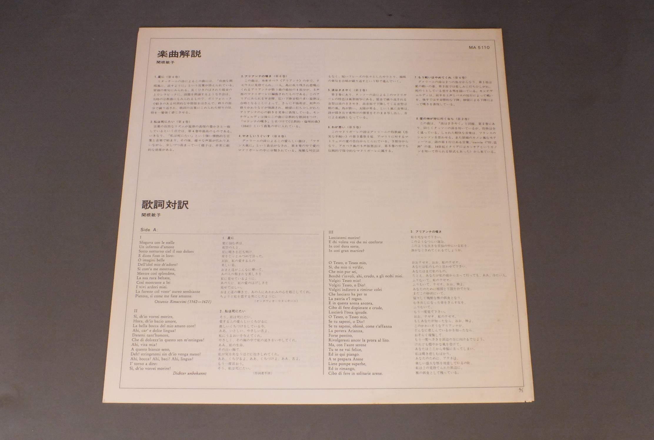 JURGEN JURGENSユルゲン・ユルゲンス/MONTEVERDI - LAMENTO D`ARIANNAモンテヴェルディ - マドリガーレ集 アリアンナの嘆き MA5110 製造国:日本盤 / Media:LP外観:EX-盤の状態:EX+帯:EX 価格(税込):¥1,100(売約済) 送料 7inch:定形外郵便 360円~LP:定形外郵便 660円~送料は、注文の最終画面で確認頂けます。 > > JURGEN JURGENS/MONTEVERDI - LAMENTO D`ARIANNA 外観 (EX-)特記事項:裏ジャケにシミ有り。外観EX-の共通説明:ダメージ軽度~多少。 中古品としては普通の状態。シミ、ヨゴレ、スレなど軽く~多少。 盤の状態 (EX+)特記事項:極薄いスリキズ・スレ少し。一見してきれいな状態です。盤EX+の共通説明:盤面の極薄いスリキズ、スレ少し程度 音に出そうなものは無いように見える(極軽微なソフトティック音は除く)。 帯の状態 (EX):特記なし。 Tweet それぞれの画像をクリックすると、大きい写真が見られます こちらの商品もお勧めです 1,210円 TITO SCHIPAティト・スキーパ / MY FAVORITE SONGS-TITO-SCHIPAスキーパ愛唱歌集 990円 SARA BENITEZサラ・ベニィティス / REINA DE GUARANIA CANTA A PARAGUAYグァラニアの歌姫 サラ・ベニィティス パラグアイ民謡の神髄を歌う 990円 RICHTERリヒター / HANDEL MESSIAH CHORUSES & ARIASヘンデル オラトリオ`メサイア`抜粋 1,760円 KIYOSHI IGARASHI五十嵐喜芳 / FAMOUS OPERANTIC ARIAS五十嵐喜芳のすべて`5` 女心の歌-オペラ・アリア集 1,320円 WINCHERMANNヴィンシャマン / BACH KANTATE BWV210 ARIEバッハ カンタータ第210番-アリア 990円 FRITZ WERNERヴェルナー - フォルツハイム室内管弦楽団 / HEAENDEL - LE MESSIEハレルヤ・コーラス合唱名曲集 990円 FISCHER-DIESKAU - KARL ENGELフィッシャー・ディースカウ - カルル・エンゲル / SCHUBERT - LIEDER RECITALシューベルト・リード・リサイタル 990円 Y NAKATA中田喜直 / SEA OF COMPOSITION海の構図