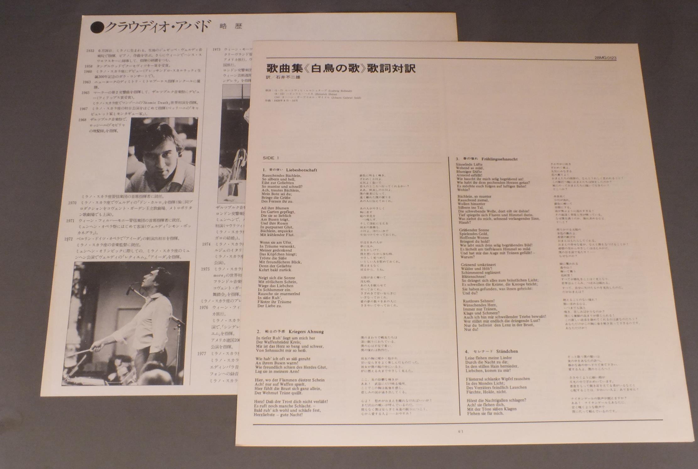 H.PREY - L.HOKANSONH.プライ - L.ホカンソン/SCHUBERT - SCHWANENGESANG D957シューベルト - 歌曲集 白鳥の歌 全曲 28MG0123 製造国:日本盤 / Media:LP外観:EX-盤の状態:EX帯:EX- 価格(税込):¥1,100(売約済) 送料 7inch:定形外郵便 360円~LP:定形外郵便 660円~送料は、注文の最終画面で確認頂けます。 > > H.PREY - L.HOKANSON/SCHUBERT - SCHWANENGESANG D957 外観 (EX-)特記事項:裏ジャケにシミ外観EX-の共通説明:ダメージ軽度~多少。 中古品としては普通の状態。シミ、ヨゴレ、スレなど軽く~多少。 盤の状態 (EX)特記事項:薄いスリキズ・スレ軽くある感じ。軽微なものの様子です。盤EXの共通説明:盤面のスリキズが薄いものが少し~軽度 音に出そうなものは無いように見える(軽微なソフトティック音は除く)。 帯の状態 (EX-):裏側にシミ Tweet それぞれの画像をクリックすると、大きい写真が見られます こちらの商品もお勧めです 990円 HAEFLINGER-DAHLERヘフリンガー-デーラー / SCHUBERT SCHONE MULLERINシューベルト 歌曲集`美しき水車小屋の娘` 1,210円 SEIJI OZAWA-BOSTON SYMPHONYフレデリカ・フォン・シュターデ-小沢征爾-ボストン交響楽団 / FREDERICA VON STADE SINGS RAVELラヴェル歌曲集 990円 MICHEL CORBOZ etcミシェル・コルボ 他 / GOUDIMEL-PSAUMESグーディメル-ミサ曲とユグノーの詩篇歌 1,320円 FRITZ WUNDERLICHフリッツ・ヴンダーリッヒ / FRITS WUNDERLICH SINGT LIEDER ヴンダーリッヒ・リート・リサイタル 1,320円 CATHY BERBERIANキャッシー・バーベリアン / AT THE EDINGBURGH FESTIVALエディンバラ音楽祭のキャッシー・バーベリアン 990円 SAFFORD CAPE - PRO MUSICA ANTIQUA BRUXELLESケープ - プロ・ムジカ・アンティクワ / GUILLAUME DE MACHAUT - MESSE DE NOSTRE DAMEマショー - 聖母のミサ曲他 990円 OSAMU SIMIZU清水脩 / PRAY TO A MOUNTAIN合唱組曲「山に祈る」 990円 HANS HOTTER-GERALD MOOREハンスホッター-ジェラルド・ムーア / HANS HOTTER SINGS SCHWANENGESANG-SCHUBERT歌曲集 白鳥の歌 シューベルト 曲
