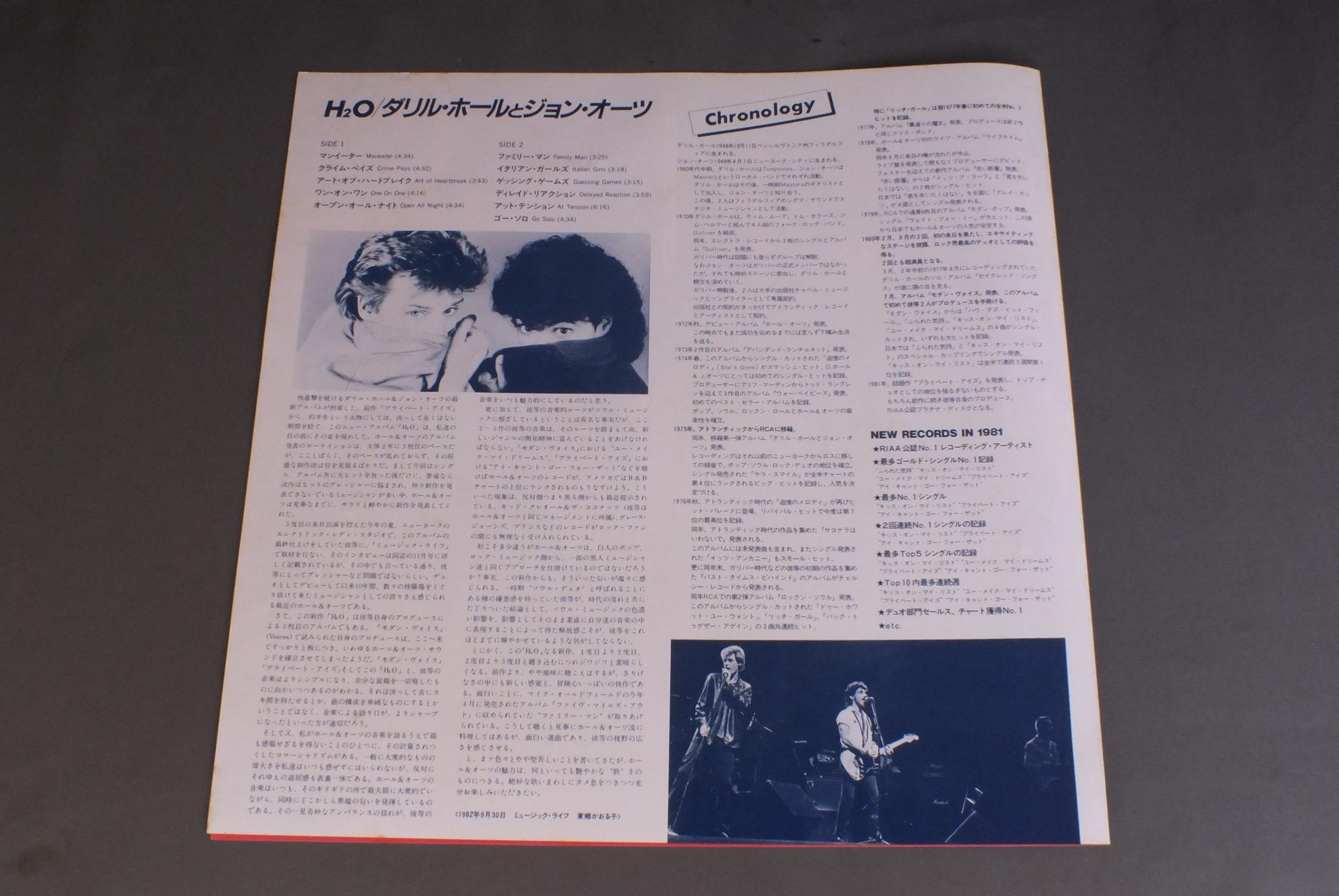 DARYL HALL & JOHN OATESダリル・ホールとジョン・オーツ/H2O RPL8158 製造国:日本盤 / Media:LP外観:EX+盤の状態:EX+帯:EX+ 価格(税込):¥660(売約済) 送料 7inch:定形外郵便 360円~LP:定形外郵便 660円~送料は、注文の最終画面で確認頂けます。 > > DARYL HALL & JOHN OATES/H2O 外観 (EX+)特記事項:特記なし。外観EX+の共通説明:中古としては美品、一見してきれいでダメージが軽微。シミ、ヨゴレ、スレ有っても僅か~少し。 盤の状態 (EX+)特記事項:極薄いスリキズ・スレ少し。一見してきれいな状態です。盤EX+の共通説明:盤面の極薄いスリキズ、スレ少し程度 音に出そうなものは無いように見える(極軽微なソフトティック音は除く)。 帯の状態 (EX+):特記なし。 Tweet それぞれの画像をクリックすると、大きい写真が見られます こちらの商品もお勧めです 990円 STYXスティクス / PARADISE THEATERパラダイス・シアター 1,210円 STYXスティクス / PARADISE THEATREパラダイス・シアター 880円 DOOBIE BROTHERSドゥービー・ブラザーズ / ONE STEP CLOSERワン・ステップ・クローサー 550円 CHICAGOシカゴ / GREAT CHICAGO栄光のシカゴ 770円 JEFFERSON AIRPLANEジェファーソン・エアプレーン / BLESS ITS POINTED LITTLE HEADフィルモアのジェファーソン・エアプレーン 440円 BOB SEGER & THE SILVER BULLET BANDボブ・シーガー&ザ・シルバー・ブレット・バンド / DISTANCEディスタンス 1,320円 CHASEチェイス / CHASE QUADRAPHONIC追跡 4チャンネル盤 1,210円 SILVER CONDORシルバー・コンドル / SILVER CONDOR夜明けのテイク・オフ
