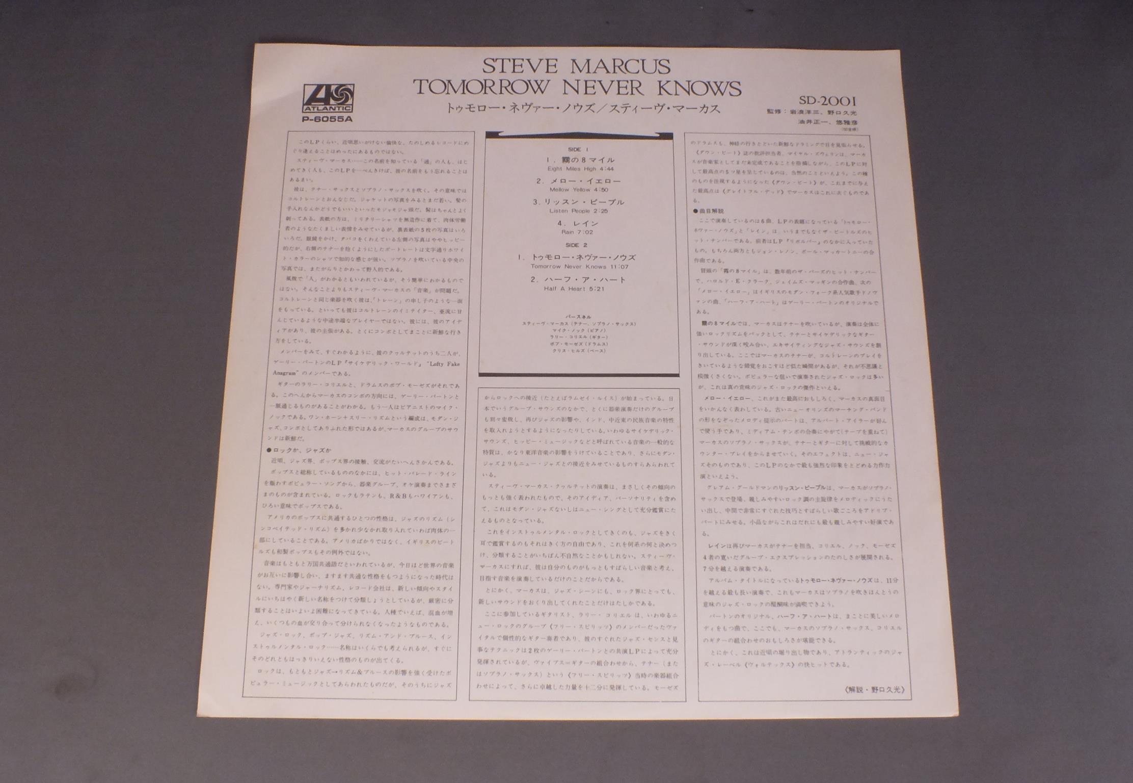 STEVE MARCUSスティーヴ・マーカス/TOMORROW NEVER KNOWSトゥモロー・ネヴァー・ノウズ P6055A 製造国:日本盤 / Media:LP外観:EX-盤の状態:EX+ 価格(税込):¥2,021(売約済) 送料 7inch:定形外郵便 360円~LP:定形外郵便 660円~送料は、注文の最終画面で確認頂けます。 > > STEVE MARCUS/TOMORROW NEVER KNOWS 外観 (EX-)特記事項:ヘリスレ有り。背や裏ジャケにシミ。外観EX-の共通説明:ダメージ軽度~多少。 中古品としては普通の状態。シミ、ヨゴレ、スレなど軽く~多少。 盤の状態 (EX+)特記事項:極薄いスリキズ・スレ少し。一見してきれいな状態です。盤EX+の共通説明:盤面の極薄いスリキズ、スレ少し程度 音に出そうなものは無いように見える(極軽微なソフトティック音は除く)。 Tweet それぞれの画像をクリックすると、大きい写真が見られます こちらの商品もお勧めです 1,320円 BOB CROSBY`S BOB CATSボブ・クロスビーのボブ・キャッツ / BOB CROSBY`S BOB CATSボブ・クロスビーのボブ・キャッツ 990円 RICHIE COLEリッチー・コール / ALIVE !アライヴ ! 770円 ART TATUM AND HIS BANDアート・テイタム / FEATURING BIG JOETURNER JOE THOMAS EDMODHALL MARSHALL ROYALオール・スター・セッション 990円 OSCAR PETERSON TRIOオスカー・ピーターソン・トリオ / IN TUNEイン・チューン 1,320円 McCOY TYNERマッコイ・タイナー / ECHOES OF A FRIENDエコーズ・オブ・ア・フレンド 1,210円 OSCAR PETERSONオスカー・ピーターソン / BLUES ETUDEジャズ・ピアノの真髄 770円 JACQUES LOUSSIER TRIO - ROYAL PHIL. ORCH.ジャック・ルーシェ・トリオ - ロイヤル・フィルハーモニー管弦楽団 / BACH - BRANDENBURG NO5バッハ - ブランデンブルグ協奏曲第5番 1,210円 MAYNARD FURGUSONメイナード・ファーガソン / WORLD OF MAYNARD FURGUSONM・F・ホーン・1