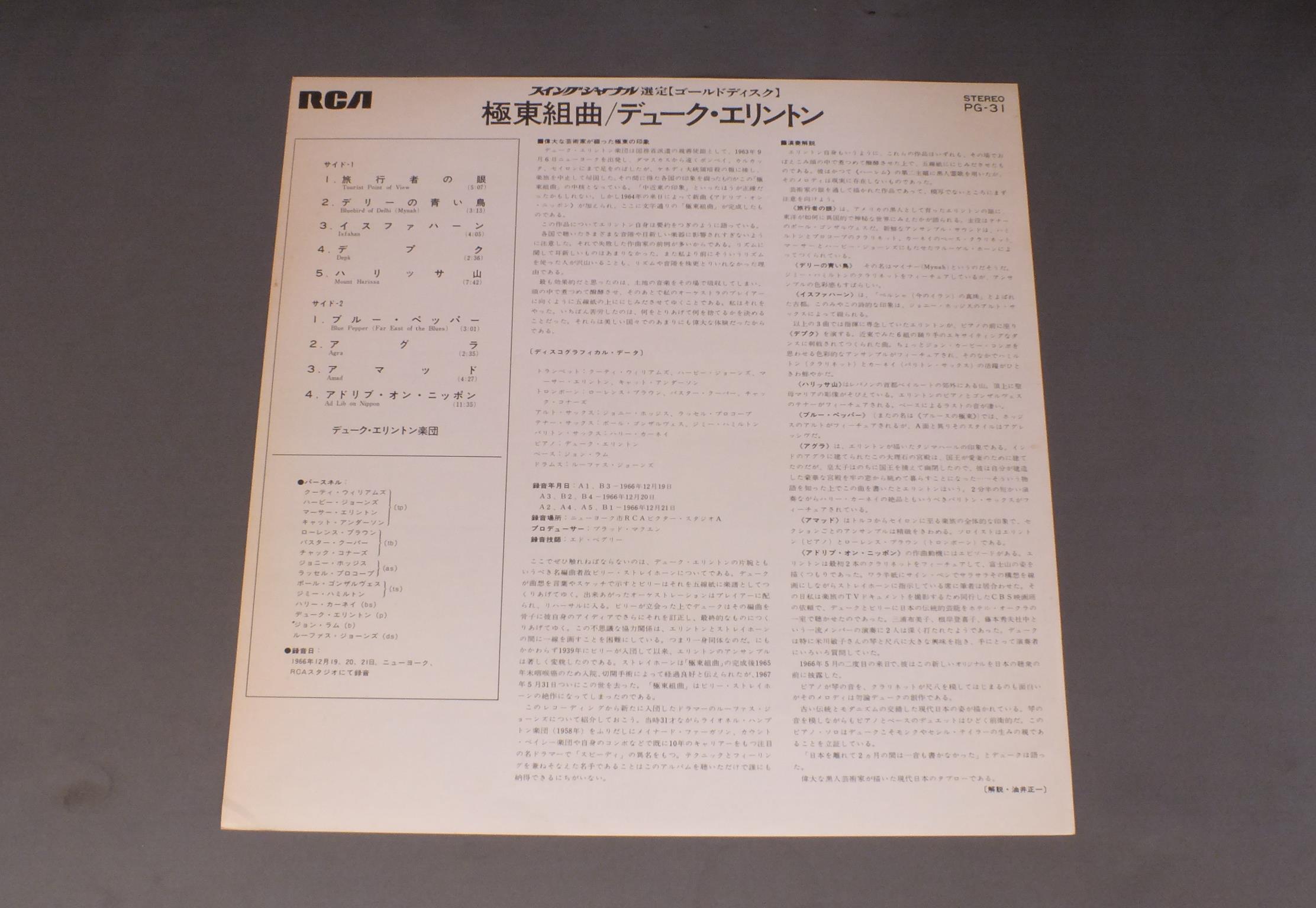 DUKE ELLINGTONデューク・エリントン/FAR EAST SUITE極東組曲 PG31 製造国:日本盤 / Media:LP外観:EX-盤の状態:EX+ 価格(税込):¥1,840(売約済) 送料 7inch:定形外郵便 360円~LP:定形外郵便 660円~送料は、注文の最終画面で確認頂けます。 > > DUKE ELLINGTON/FAR EAST SUITE 外観 (EX-)特記事項:背やヘリスレ有り。裏ジャケにシミ。外観EX-の共通説明:ダメージ軽度~多少。 中古品としては普通の状態。シミ、ヨゴレ、スレなど軽く~多少。 盤の状態 (EX+)特記事項:極薄いスリキズ・スレ少し。一見してきれいな状態です。盤EX+の共通説明:盤面の極薄いスリキズ、スレ少し程度 音に出そうなものは無いように見える(極軽微なソフトティック音は除く)。 Tweet それぞれの画像をクリックすると、大きい写真が見られます こちらの商品もお勧めです 550円 LIONEL HAMPTON / 1944 & 46 1,320円 DUKE ELLINGTONデューク・エリントン楽団 / DUKE ELLINGTON SEATTLE CONCERTデューク・エリントン・シアトル・コンサート 880円 TOMMY DORSEYトミ−・ド−シ− / DANCE & ROMANCE僕はセンチに−トミ−・ド−シ−・デラックス 770円 GLENN MILLERグレン・ミラー / OPERATION GLENN MILLERグレン・ミラー作戦 660円 TEDDY WILSON / THREE LITTLE WORDS 880円 BOBBY & MUGGSYボビー・アンド・マグシー / HORN A PLENTY 1,210円 TOMMY DORSEY etc / GREAT SWEET BANDS OF THE `40`S黄金時代のスイート・バンド名演集 1,210円 DUKE ELLINGTON & HIS ORCHESTRAデューク・エリントン楽団 / AT THE CARNEGIE HALL 1943