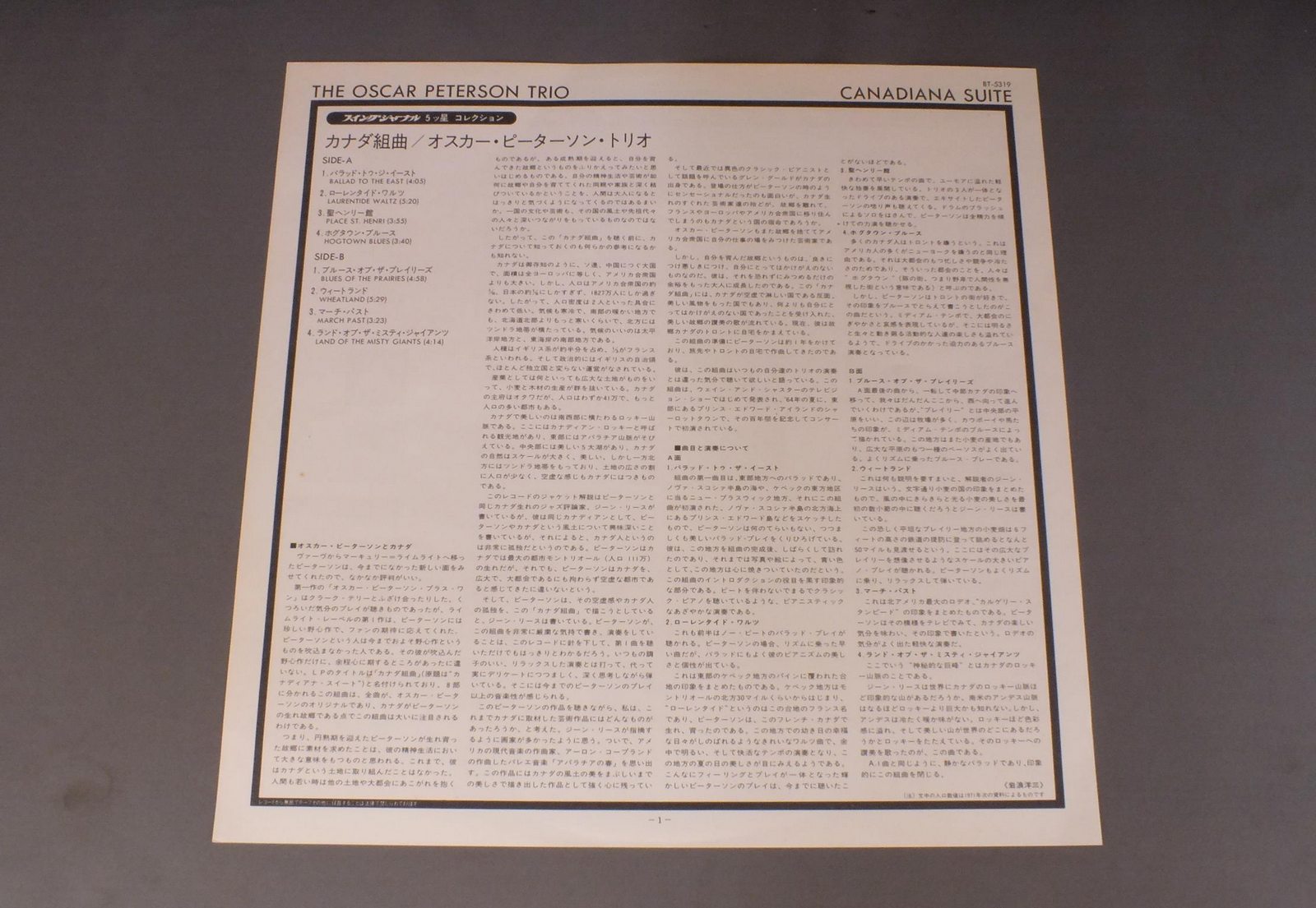 OSCAR PETERSON TRIOオスカー・ピーターソン・トリオ/CANADIANA SUITEカナダ組曲 BT5319 製造国:日本盤 / Media:LP外観:EX盤の状態:EX+ 価格(税込):¥990(売約済) 送料 7inch:定形外郵便 360円~LP:定形外郵便 660円~送料は、注文の最終画面で確認頂けます。 > > OSCAR PETERSON TRIO/CANADIANA SUITE 外観 (EX)特記事項:シミ有り外観EXの共通説明:ダメージが限定的。中古品としては保存状態がよい方。シミ、ヨゴレ、スレ 少し~軽度。 盤の状態 (EX+)特記事項:極薄いスリキズ・スレ少し。一見してきれいな状態です。盤EX+の共通説明:盤面の極薄いスリキズ、スレ少し程度 音に出そうなものは無いように見える(極軽微なソフトティック音は除く)。 Tweet それぞれの画像をクリックすると、大きい写真が見られます こちらの商品もお勧めです 1,210円 ESQUIRE ALL STARS etc / FLYIN` ON A V-DISC (V-DISC ALL STAR JAZZ SESSIONS VOL2)フライン・オン・ア・Vディスク (Vディスク・オールスターズ第2集) 1,210円 DUKE ELLINGTON WITH JIMMY JONESデューク・エリントン & ジミー・ジョーンズ / DUKE ELLINGTON`S MY PEOPLEマイ・ピープル 1,210円 LENNY WHITEレニー・ホワイト / STREAMLINEストリームライン 990円 JAY HOGGARDジェイ・ホガード / LOVE SURVIVESラヴ・サーヴァイブズ 1,320円 GATO BARBIERIガトー・バルビエリ / EL PAMPEROエル・パンペーロ 1,980円 YASUTAKA TSUTSUI + YOSUKE YAMASHITA etc筒井康隆 + 山下洋輔他 / INNER SPACE OF YASUTAKA TSUTSUI筒井康隆全集プレゼント INNER SPACE OF YASUTAKA TSUTSUI 990円 YOSHIAKI MASUO増尾好秋 / SAILING WONDERセイリング・ワンダー 1,320円 PAUL WINTER SEXTETポール・ウィンター・セクステット / JAZZ MEETS THE FOLK SONG 60s ISUUEフォーク・モダン・ジャズ ペラジャケ