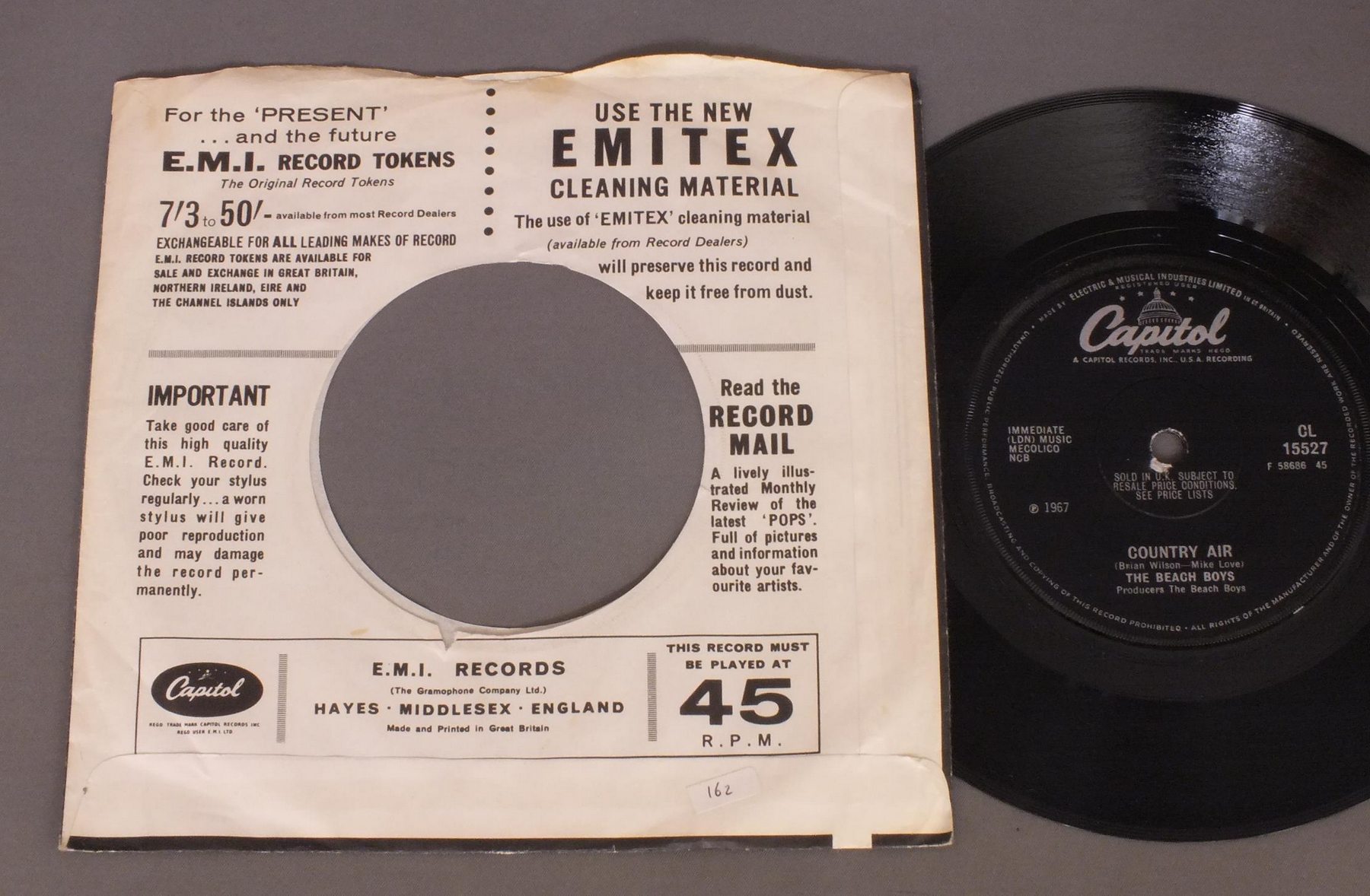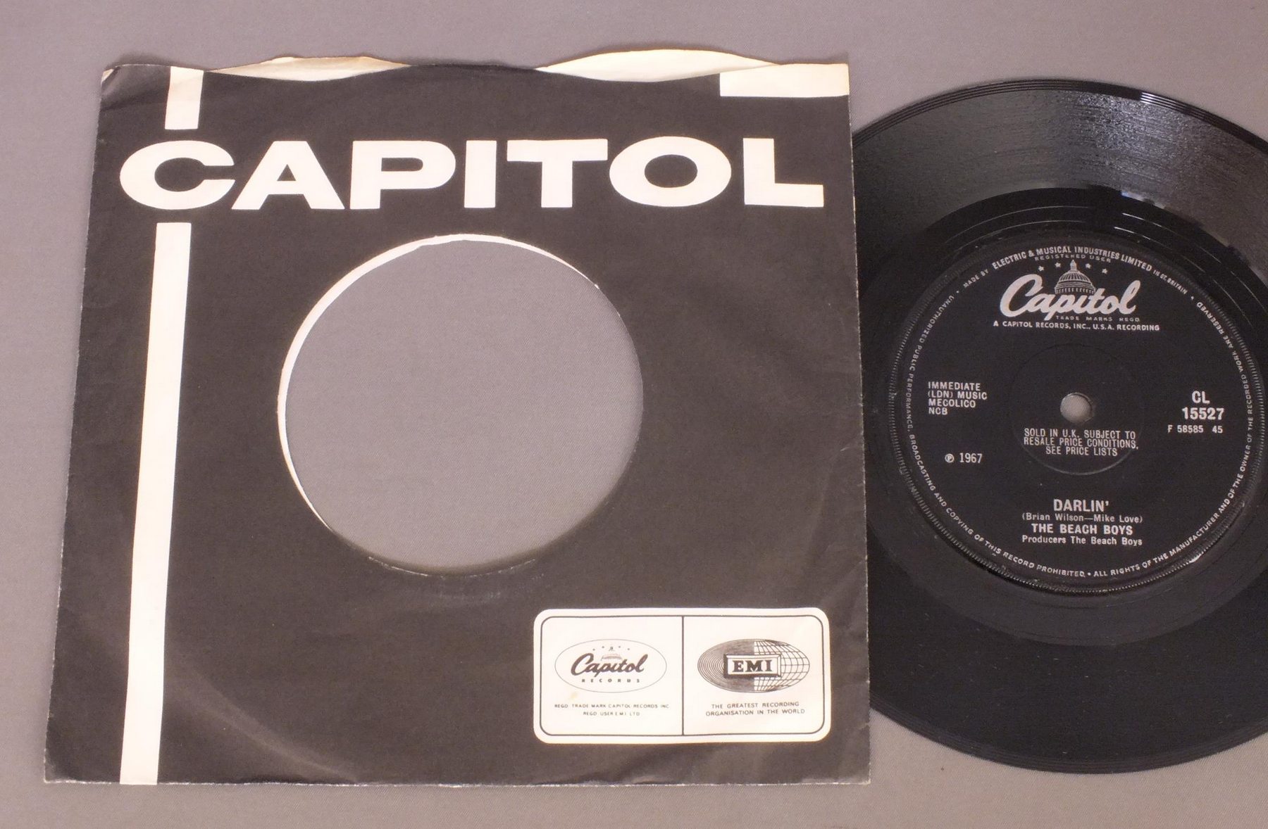 BEACH BOYS/DARLIN` CL15527 製造国:英国盤 / Media:7inchMatrix: -3 | -1外観:EX盤の状態:EX 価格(税込):¥2,200(売約済) 送料 7inch:定形外郵便 360円~LP:定形外郵便 660円~送料は、注文の最終画面で確認頂けます。 レコード検索 > ALL Genre > BEACH BOYS/DARLIN` 外観 (EX)特記事項:CAPITOL社のカンパニースリーブ付き。ヨレは多少有りますが、全体的にしっかりした感じでよごれ等も少ないです。抜けも無いです。外観EXの共通説明:ダメージが限定的。中古品としては保存状態がよい方。シミ、ヨゴレ、スレ 少し~軽度。 盤の状態 (EX)特記事項:薄いスリキズ・スレ軽くある感じ。ほとんどが軽微なものの様子です。曲間など、静かなところを中心に聴いて見ましたが、チリプチ軽度で音もしっかり鳴っていました。盤EXの共通説明:盤面のスリキズが薄いものが少し~軽度 音に出そうなものは無いように見える(軽微なソフトティック音は除く)。 Tweet それぞれの画像をクリックすると、大きい写真が見られます こちらの商品もお勧めです