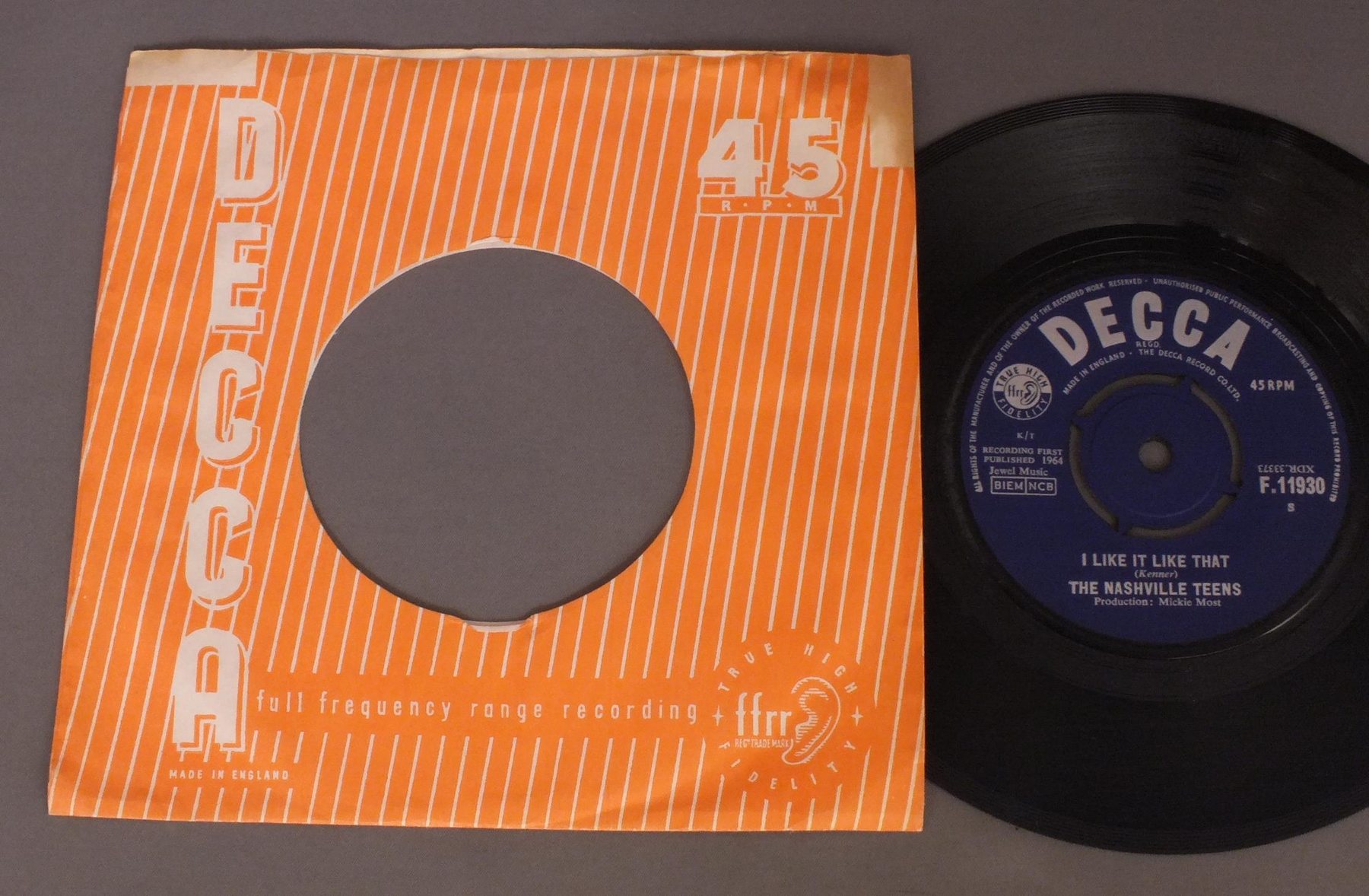 NASHVILLE TEENS/TOBACCO ROAD F11930 製造国:英国盤 / Media:7inchMatrix:T1-2T T1-1C外観:EX盤の状態:EX 価格(税込):¥3,300(売約済) 送料 7inch:定形外郵便 360円~LP:定形外郵便 660円~送料は、注文の最終画面で確認頂けます。 > > NASHVILLE TEENS/TOBACCO ROAD 外観 (EX)特記事項:DECCA社のカンパニースリーブ付き。上角にシミが有りますが、ヨレ感のあまり無い知っかるした状態D。外観EXの共通説明:ダメージが限定的。中古品としては保存状態がよい方。シミ、ヨゴレ、スレ 少し~軽度。 盤の状態 (EX)特記事項:薄いスリキズ・スレ軽く有る感じ。殆どが軽微なものの様子で、きれいな印象。曲間など、静かなところを中心に聴いて見ましたが、チリノイズ少ないきれいな再生具合でした。盤EXの共通説明:盤面のスリキズが薄いものが少し~軽度 音に出そうなものは無いように見える(軽微なソフトティック音は除く)。 Tweet それぞれの画像をクリックすると、大きい写真が見られます こちらの商品もお勧めです 4,950円 MINDBENDERS / MINDBENDERS 7,700円 AMEN CORNER / ROUND AMEN CORNER 11,000円 FOUR PENNIES / TWO SIDES OF THE FOUR PENNIES 7,700円 BILLY J KRAMER / LISTEN 8,800円 GEORGIE FAME / HALL OF FAME 16,500円 SPENCER DAVIS GROUP / TRAFFIC / HERE WE GO ROUND THE MULBERRY BUSH 9,350円 TROGGS / FROM NOWHERE 10,450円 WAYNE FONTANA AND THE MINDBENDERS / 1st ALBUM