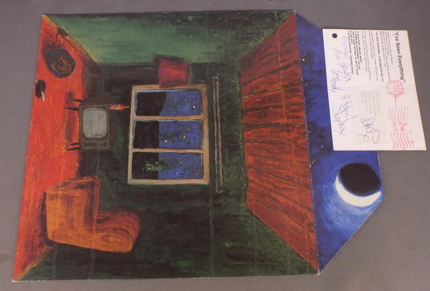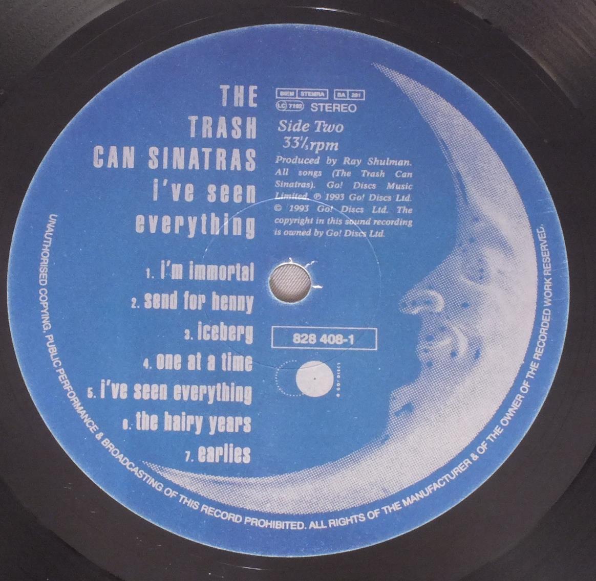 TRASH CAN SINATRAS/I`VE SEEN EVERYTHING 828 408-1 製造国:英国盤 / Media:LPMatrix:枝番は特にない様子。外観:EX盤の状態:EX 価格(税込):¥13,200(売約済) 送料 7inch:定形外郵便 360円~LP:定形外郵便 660円~送料は、注文の最終画面で確認頂けます。 > > TRASH CAN SINATRAS/I`VE SEEN EVERYTHING 外観 (EX)特記事項:背やヘリにスレ多少有りますが、ジャケ表面には全体的にスレやスリキズ、よごれ等あまり無い感じのきれいな状態。封筒タイプのオリジナルインナーはヨレや抜けの無い状態。内側まで絵が続く凝ったデザイン。知人に宛てたサイン付のポストカードが付いています。外観EXの共通説明:ダメージが限定的。中古品としては保存状態がよい方。シミ、ヨゴレ、スレ 少し~軽度。 盤の状態 (EX)特記事項:薄いスリキズ・スレ軽く有る感じ。殆どが軽微なものの様子で、きれいな印象。曲間など、静かなところを中心に聴いて見ましたが、チリノイズ少ないきれいな再生具合でした。盤EXの共通説明:盤面のスリキズが薄いものが少し~軽度 音に出そうなものは無いように見える(軽微なソフトティック音は除く)。 その他:彼らのアルバムでは最もレアなタイトル。 Tweet それぞれの画像をクリックすると、大きい写真が見られます こちらの商品もお勧めです 2,640円 KING OF LUXEMBOURG / ROYAL BASTARD 3,300円 CHESTERFIELD / CROCODILE TEARS 3,850円 PREFAB SPROUT / SWOON 3,300円 KING OF LUXEMBOURG / SIR 3,520円 GROOVE FARM / PLUG 3,300円 SAD CAFE / FACADES 青盤 3,080円 RAZORCUTS / PATTERNS ON THE WATER 3,080円 53rd & 3rd LBL ARTISTS / GOOD FEELING