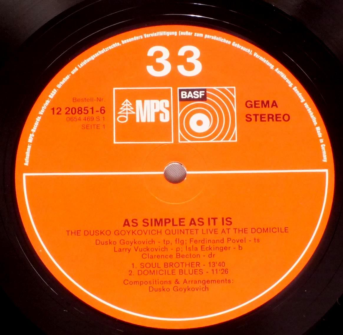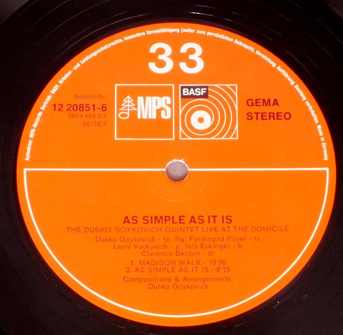 DUSKO GOYKOVICHDUSKO GOYKOVICH/AS SIMPLE AS IT IS 12 20851-6 製造国:独盤 / Media:LP外観:EX-盤の状態:EX+ 価格(税込):¥7,700(売約済) 送料 7inch:定形外郵便 360円~LP:定形外郵便 660円~送料は、注文の最終画面で確認頂けます。 > > DUSKO GOYKOVICH/AS SIMPLE AS IT IS 外観 (EX-)特記事項:上ヘリにテープ補修。底角にスレ多少有り。表裏ジャケ共に厚手のコーティング仕様。全体的にコーティングのヨレシワはあまり無く、スレやスリキズ等も薄い感じ。外観EX-の共通説明:ダメージ軽度~多少。 中古品としては普通の状態。シミ、ヨゴレ、スレなど軽く~多少。 盤の状態 (EX+)特記事項:極薄いスリキズ・スレ少しだけ。一見してきれいな状態です。曲間など、静かなところを中心に聴いてみましたが、チリノイズ少ないきれいな再生具合でした。盤EX+の共通説明:盤面の極薄いスリキズ、スレ少し程度 音に出そうなものは無いように見える(極軽微なソフトティック音は除く)。 Tweet それぞれの画像をクリックすると、大きい写真が見られます こちらの商品もお勧めです 3,850円 BOB TOMPSON / ON THE ROCKS 2,420円 JAZZ ALL STARS / MIDNIGHT AT EDDIE CONDON`Sサイン付 4,400円 BUD FREEMAN`S ALL STAR ORCHESTRA / MIDNIGHT AT EDDIE CONDON`S 2,420円 WILD BILL DAVISON / ALL STARSサイン付 2,420円 WILD BILL DAVISON / WITH FREDDY RANDALL & HIS BANDサイン付 3,300円 CREOLE JAZZ BAND / KID ORY`S 2,640円 WILD BILL DAVISON / RUNNING WILDサイン付 3,300円 KIRBY STONE FOUR / KIRBY STONE TOUCH