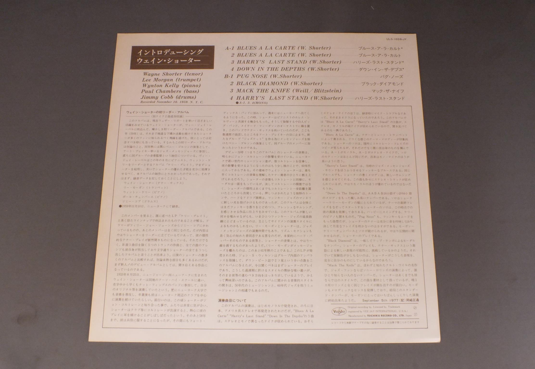 WAYNE SHORTERウェイン・ショーター/INTRODUCINGイントロデューシング ULS1659JY 製造国:日本盤 / Media:LP外観:EX盤の状態:EX+ 価格(税込):¥1,100(売約済) 送料 7inch:定形外郵便 360円~LP:定形外郵便 660円~送料は、注文の最終画面で確認頂けます。 > > WAYNE SHORTER/INTRODUCING 外観 (EX)特記事項:表ジャケ背上付近にステッカー跡。外観EXの共通説明:ダメージが限定的。中古品としては保存状態がよい方。シミ、ヨゴレ、スレ 少し~軽度。 盤の状態 (EX+)特記事項:極薄いスリキズ・スレ少し。一見してきれいな状態です。盤EX+の共通説明:盤面の極薄いスリキズ、スレ少し程度 音に出そうなものは無いように見える(極軽微なソフトティック音は除く)。 Tweet それぞれの画像をクリックすると、大きい写真が見られます こちらの商品もお勧めです 1,320円 JOHN GRAASジョン・グラース / COUP DE GRAASクー・デ・グラース 990円 GARY BURTONゲイリー・バートン / ALONE AT LASTアローン・アット・ラスト 1,210円 ART FARMER AND THE ORCHESTRAアート・ファーマー楽団 / LISTEN TO ART FARMER AND THE ORCHESTRA 60s ISSUEアート・ファーマーの芸術 ペラジャケ 1,210円 BUCK CLAYTON SEPTETバック・クレイトン / BUCKIN` THE BLUESバッキン・ザ・ブルース 1,210円 DEREK SMITHディレク・スミス / NEW SOILニュー・ソワール 660円 SADAO WATANABE渡辺貞夫 / CALIFORNIA SHOWERカリフォルニア・シャワー 1,320円 EDDIE COSTA TRIOエディ・コスタ・トリオ / HOUSE OF BLUE LIGHTSハウス・オブ・ブルー・ライツ 880円 HARRIS SIMON GROUPハリス・サイモン・グループ / NEW YORK CONNECTIONニューヨーク・コネクション